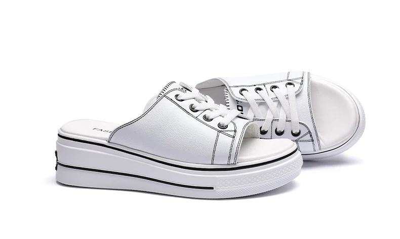 Smile Circle Summer flip flop Women Flat platform slippers outdoor Genuine Leather Ladies Wedge shoes