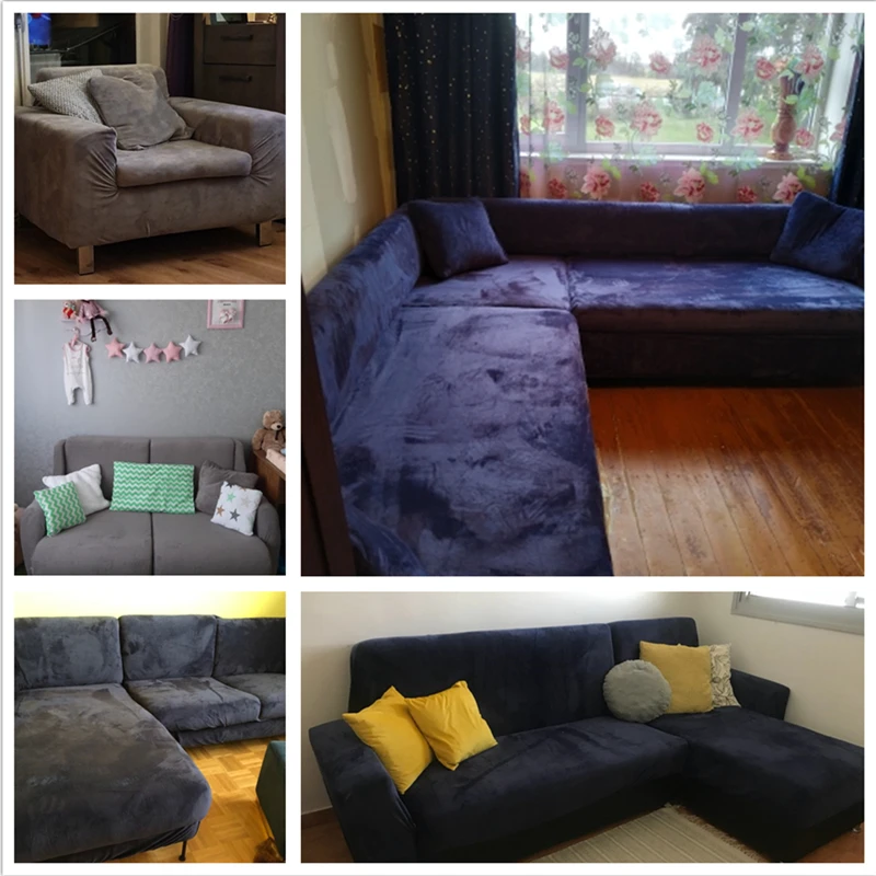 Solid Color Plush Thicken Elastic Sofa Cover Universal Sectional Slipcover 1/2/3/4 seater Stretch Couch Cover for Living Room
