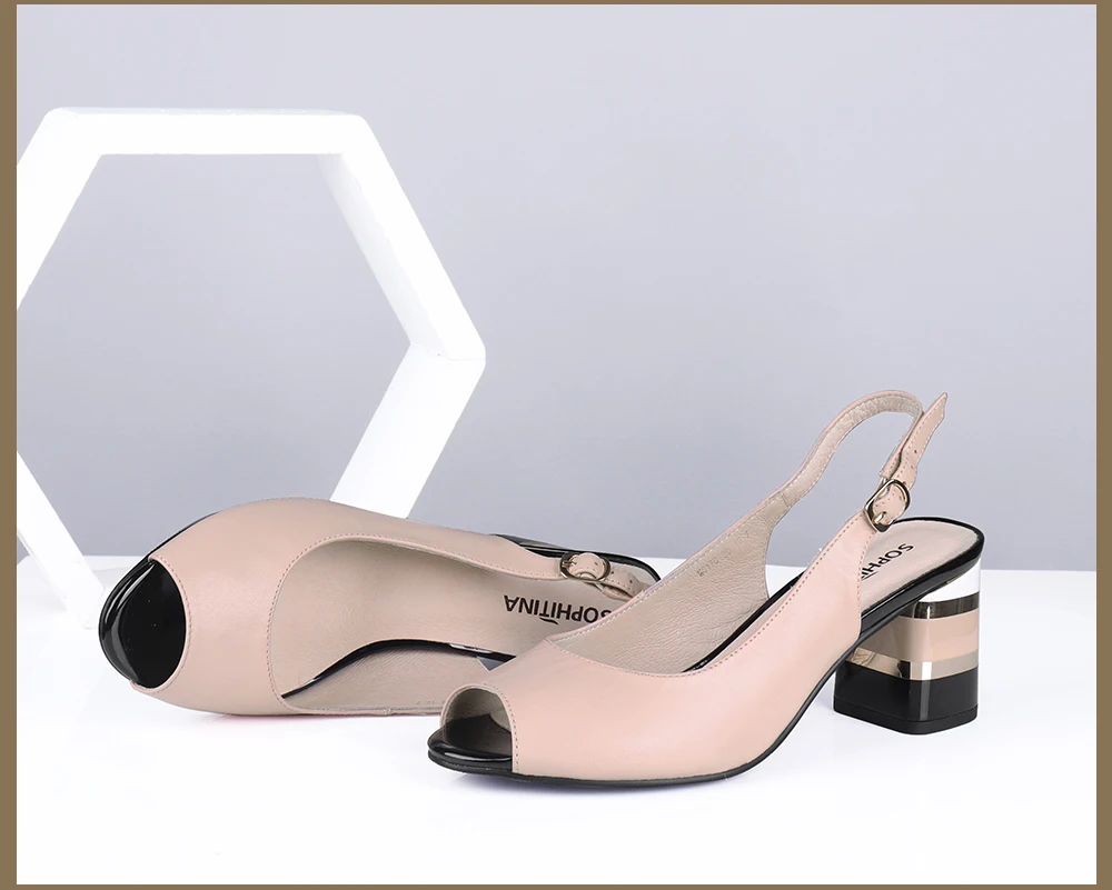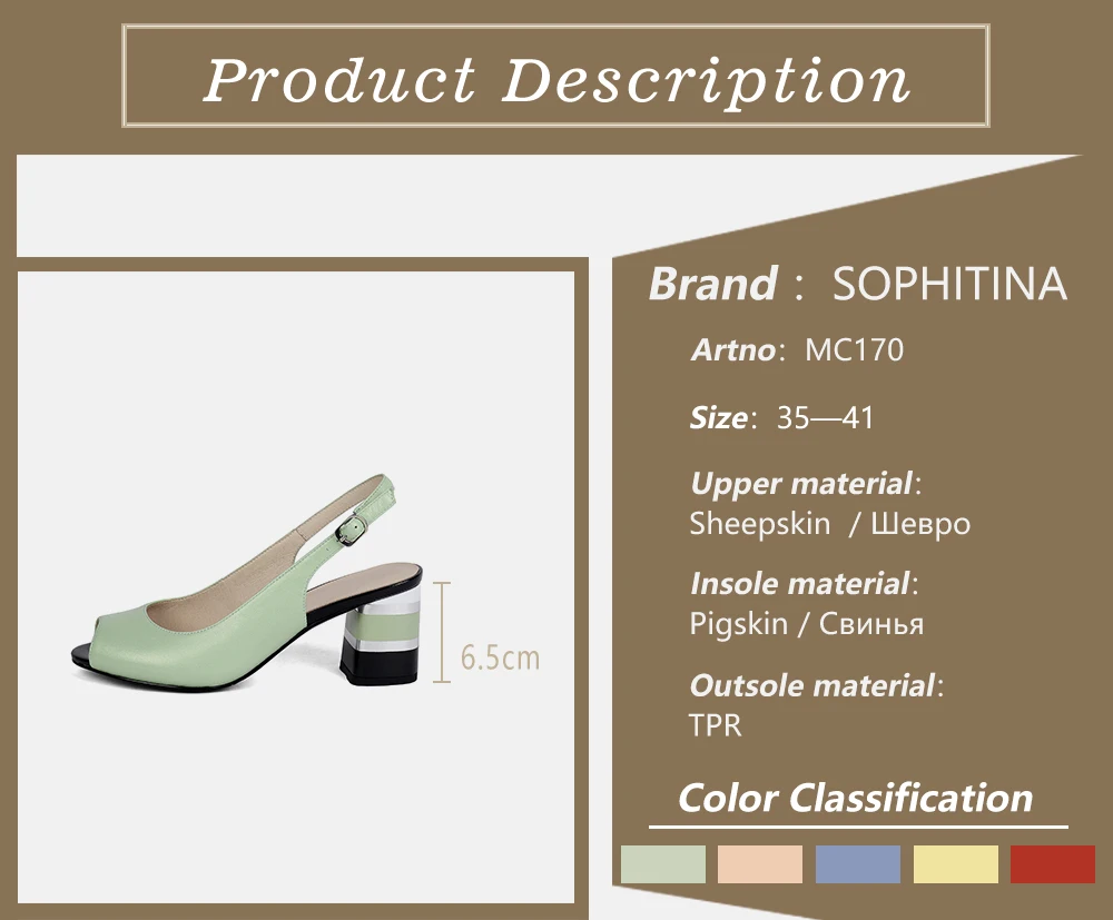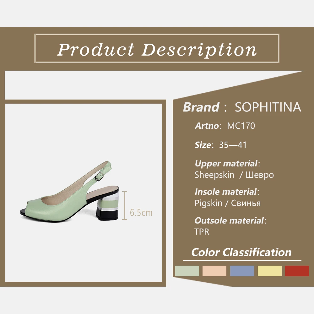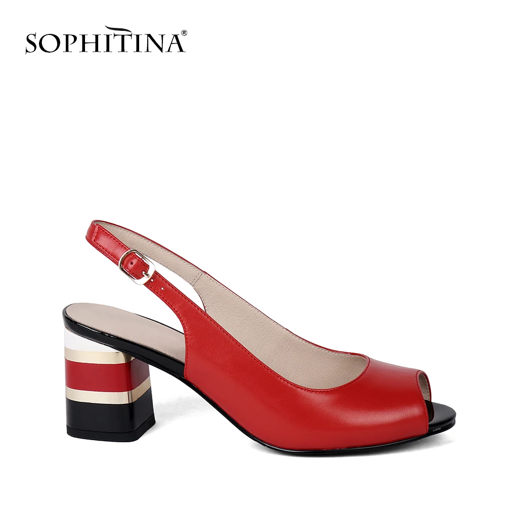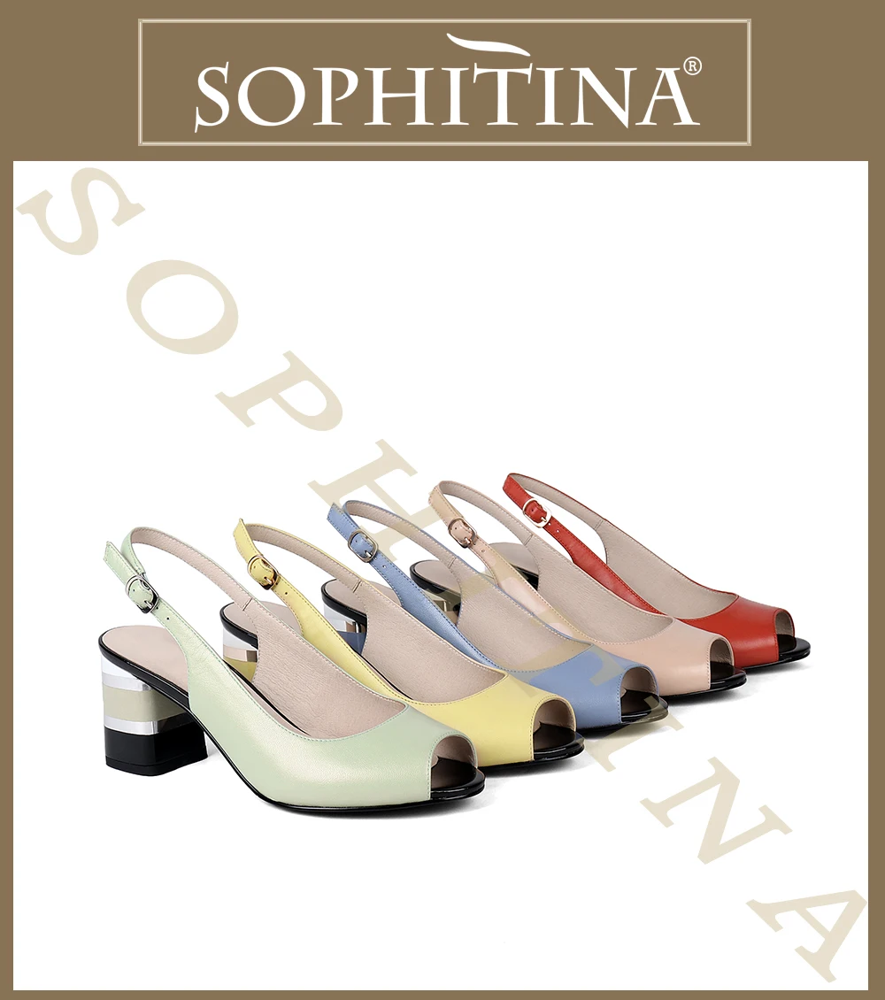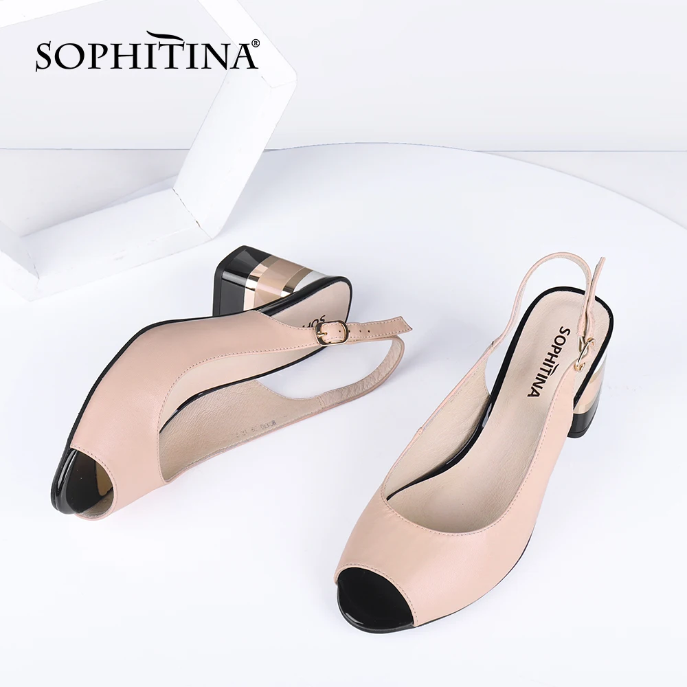 SOPHITINA Comfortable Sandals Fashion Ankle-Wrap High Quality Sheepskin Shoes Square Heels Peep Toe Design Woman Sandals MC170