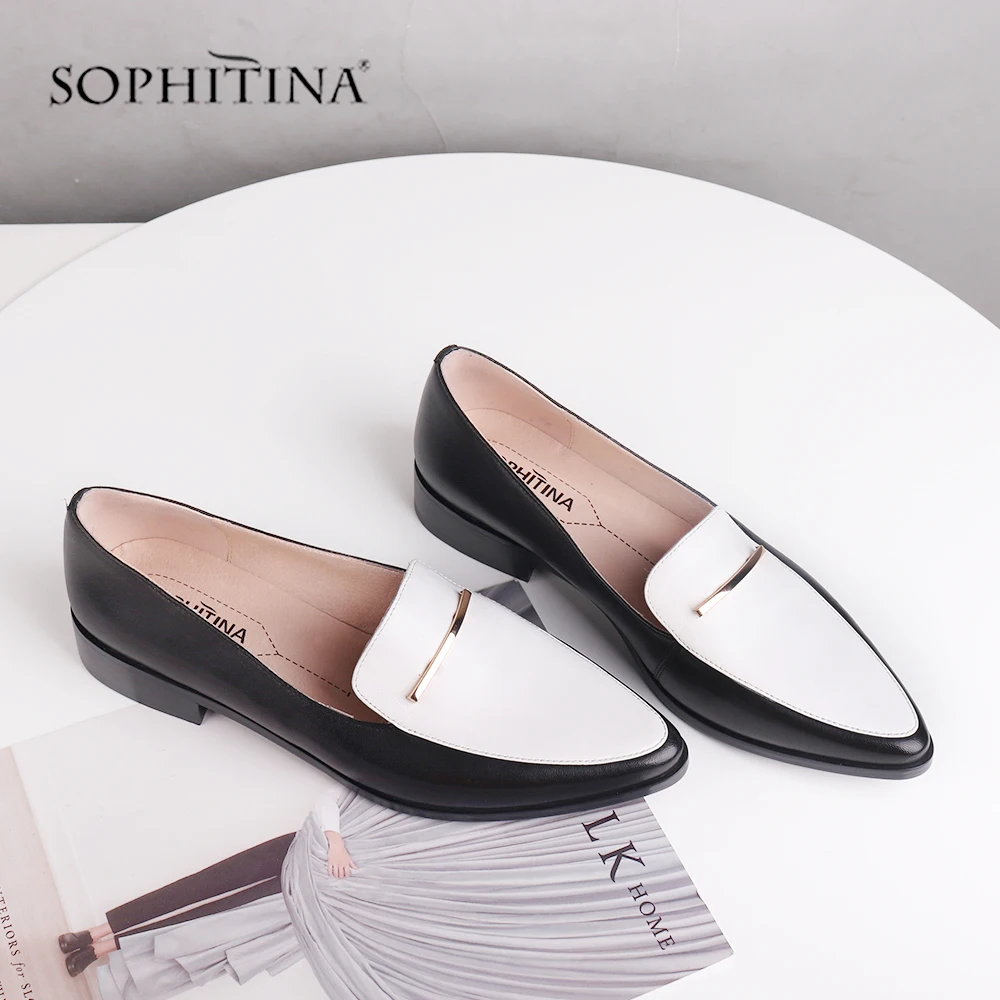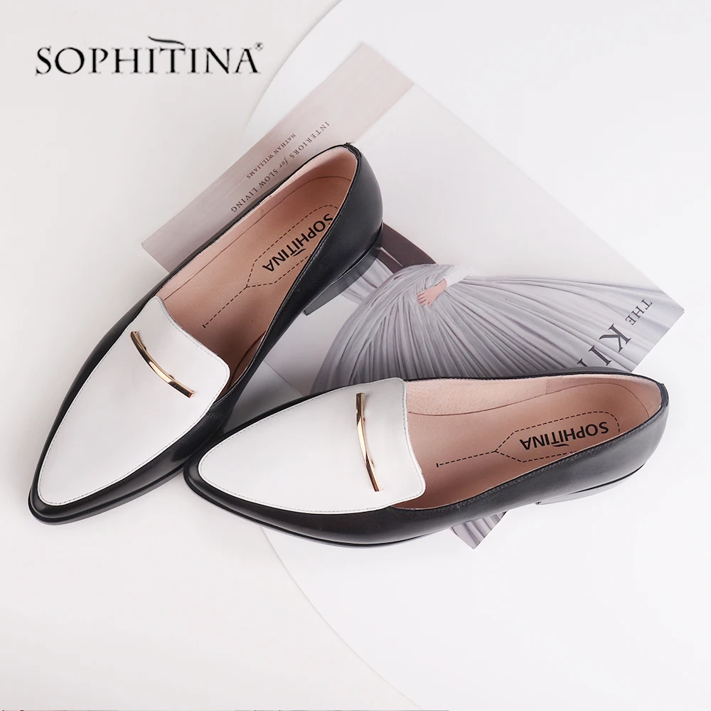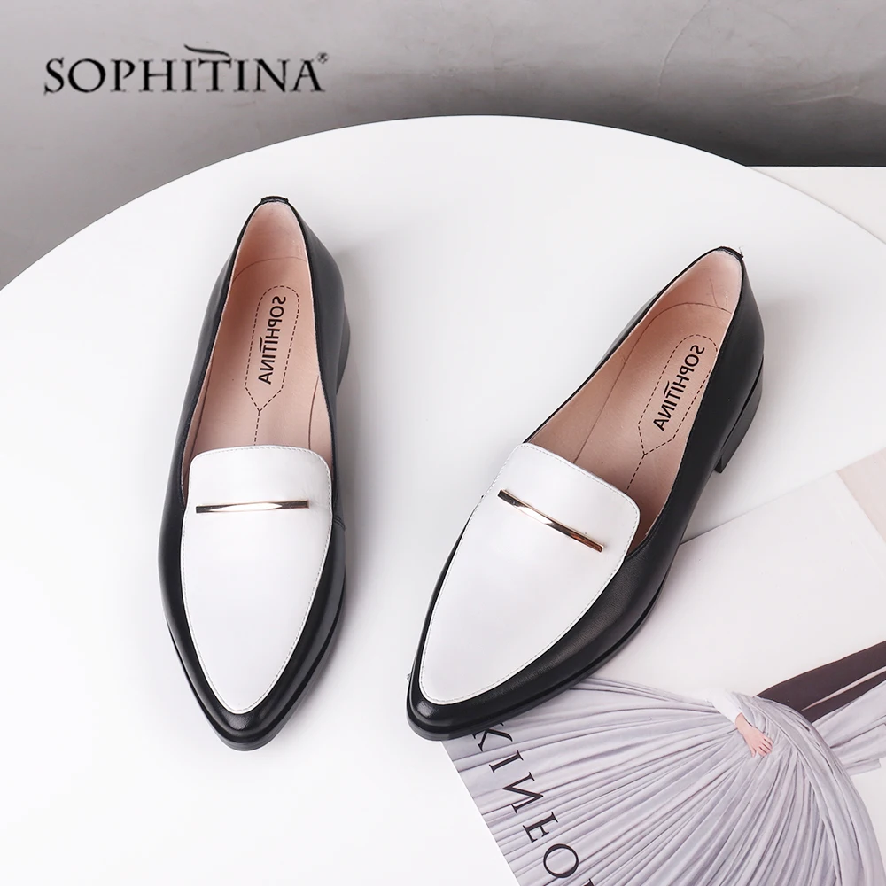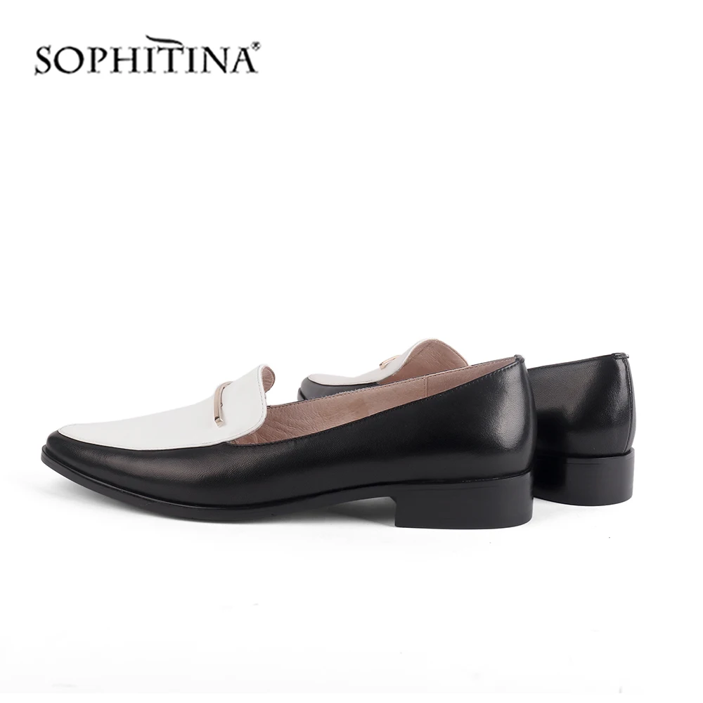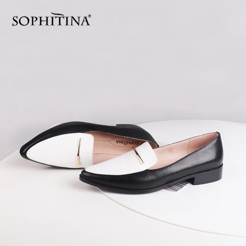 SOPHITINA High Quality Flats Mixed Colors Genuine Leather Casual Pointed Toe Fashion Loafers Shoes Low Heels Casual Shoes C460
