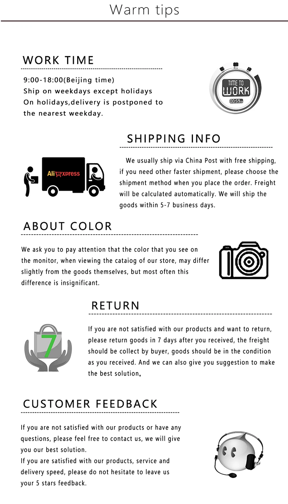 • If you do not want the product you’ve received you may request a refund but you must return the item at your expense and the item must be unused.
