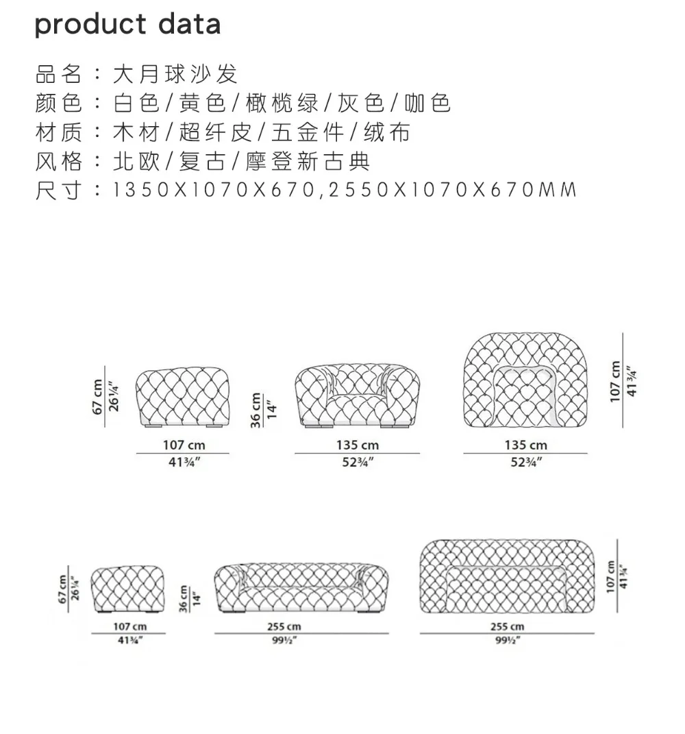 Spain Design 255cm Sofa with Armrest