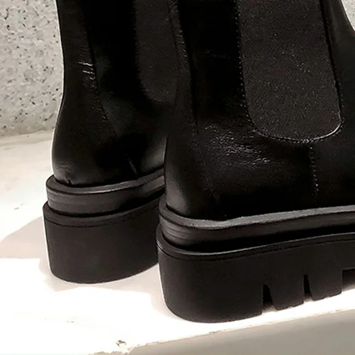 Split leather Mid-Calf Boots Autumn Winter Women Fashion Square Heels Ladies Shoes G240 Soft Leather Black White Round Toe Platform Boots