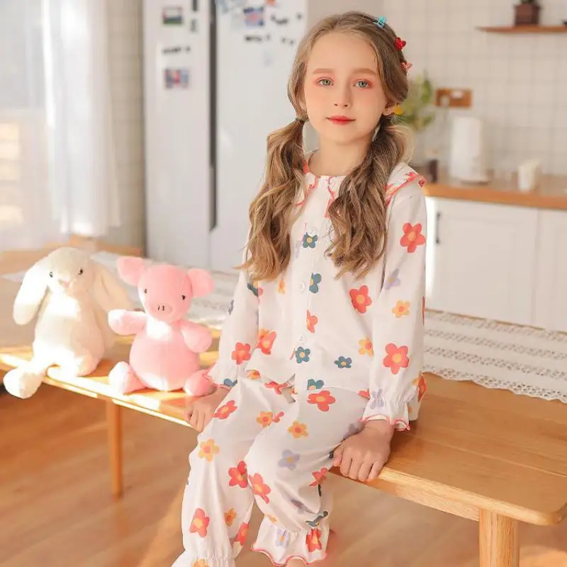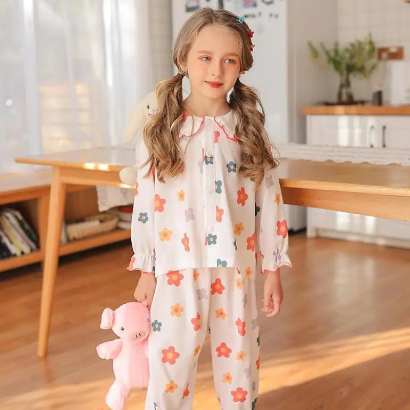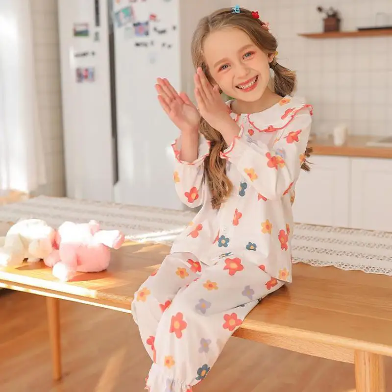 Spring And Autum Pajamas Suit For Children Long Sleeve Lapel Cardigan Girls Princess Lovely Clothing Kids Pajamas Set Sleepwear