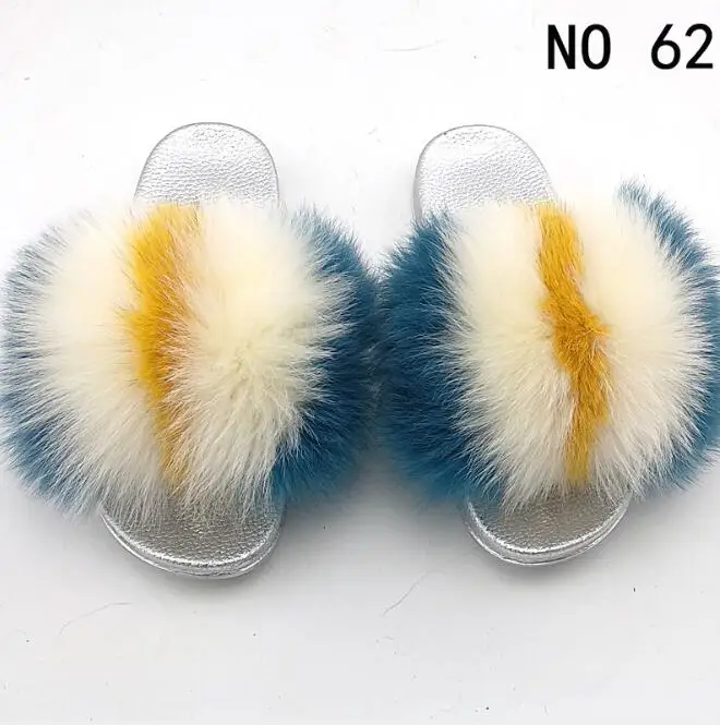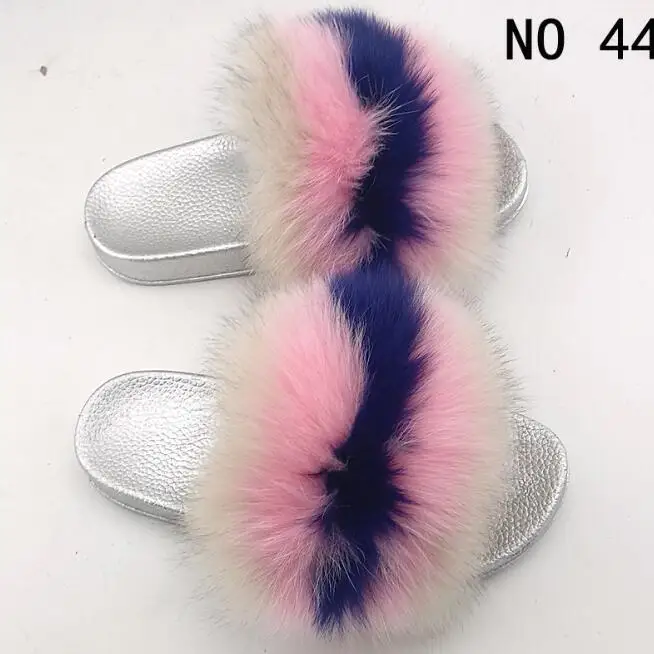 Spring and Autumn flip flops fur hair color matching slippers women’s home fashion non-slip contrast color wear fur flip flop