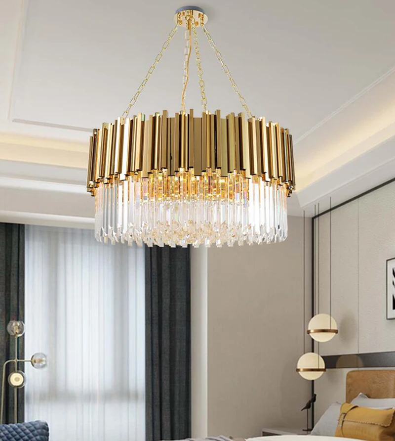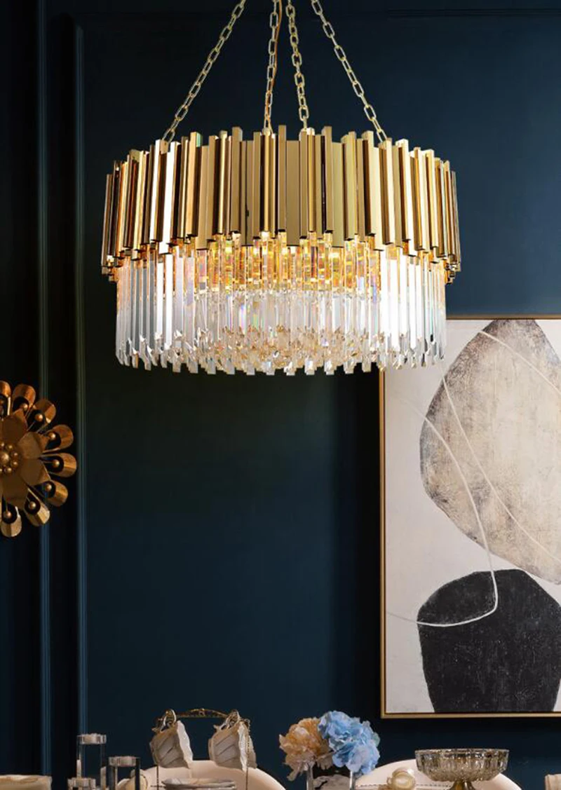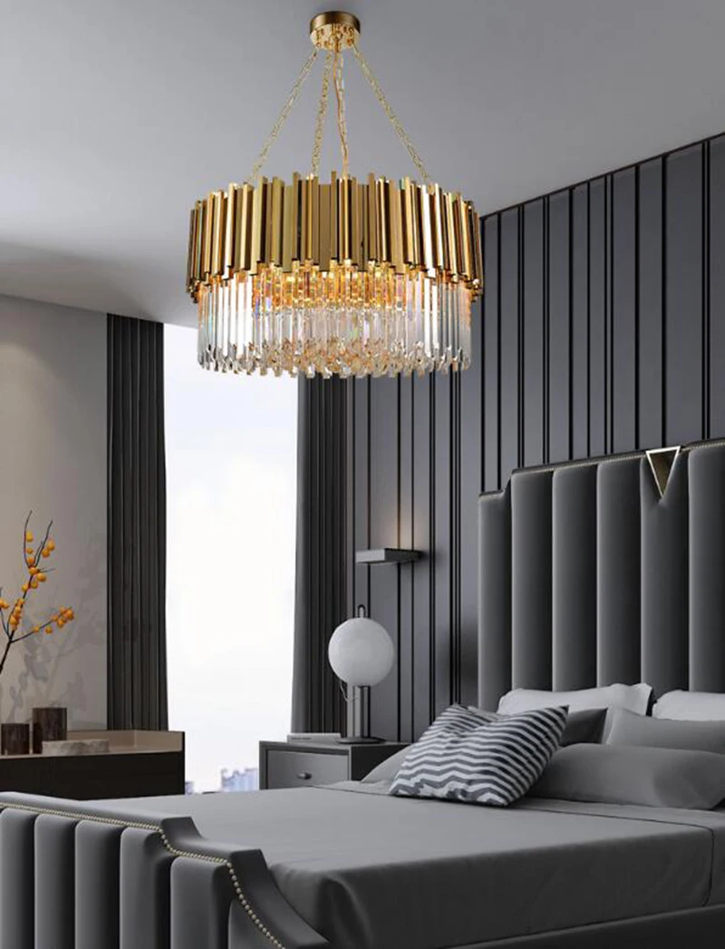 Stainless steel and New Lighting Chandelier Modern Polished Round Living Room Dining Room Crystal Lamp Luxury Crystal Chandelier