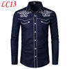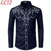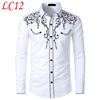 Stylish Western Cowboy Shirt Men Brand Design Embroidery Slim Fit Casual Long Sleeve Shirts Mens Wedding Party Shirt for Male