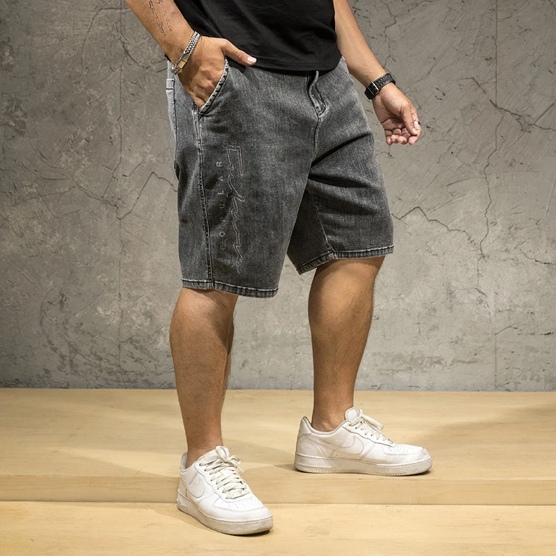 Summer Mens Large Size Elastic Denim Shorts Oversized Knee Length Baggy Jeans for Men Loose Fit Shorts Men Plus Size 36 42 44 46