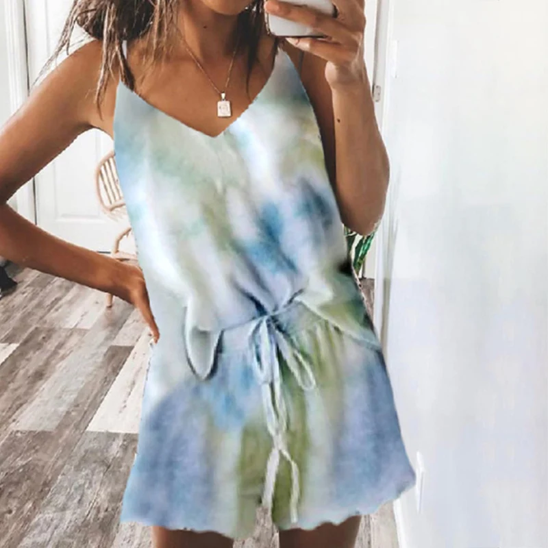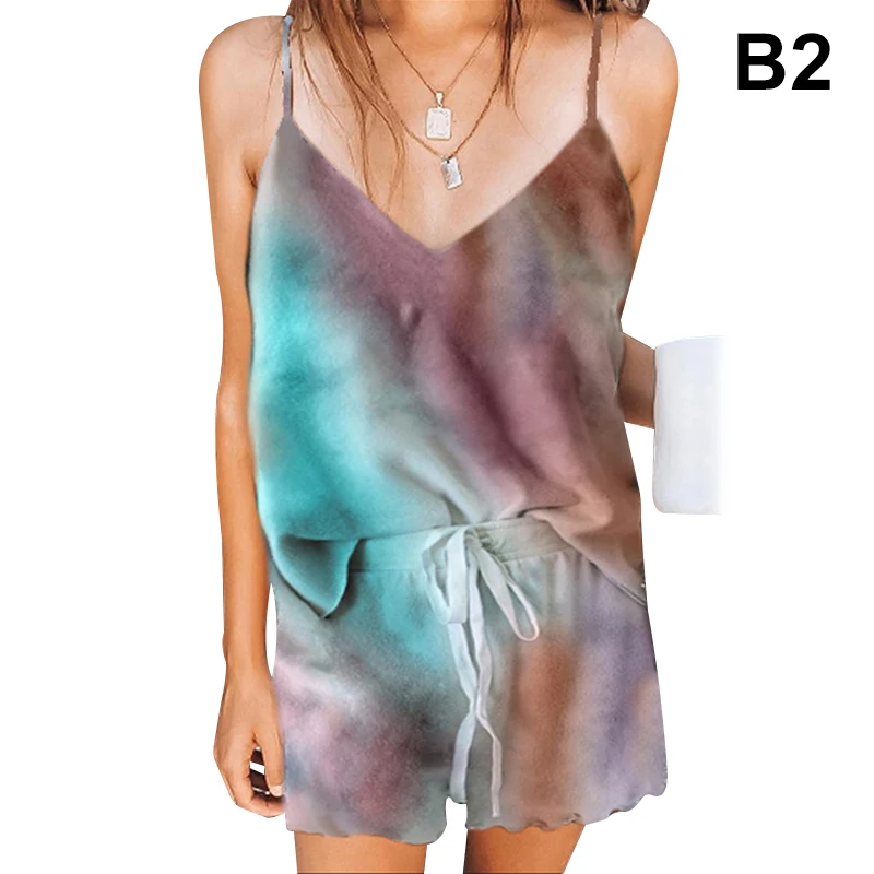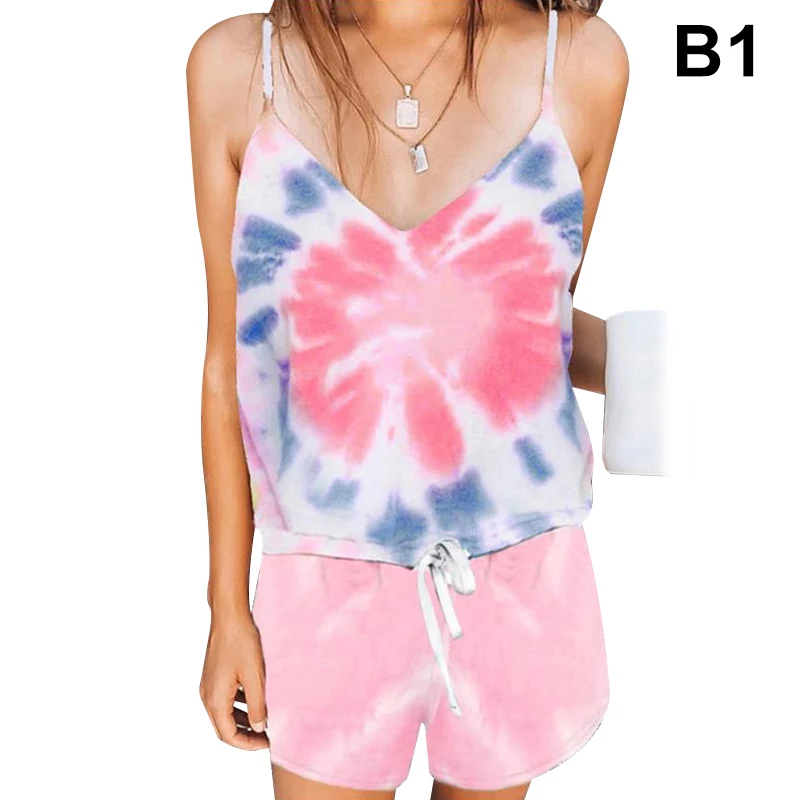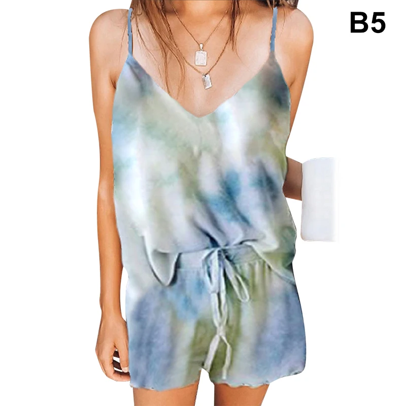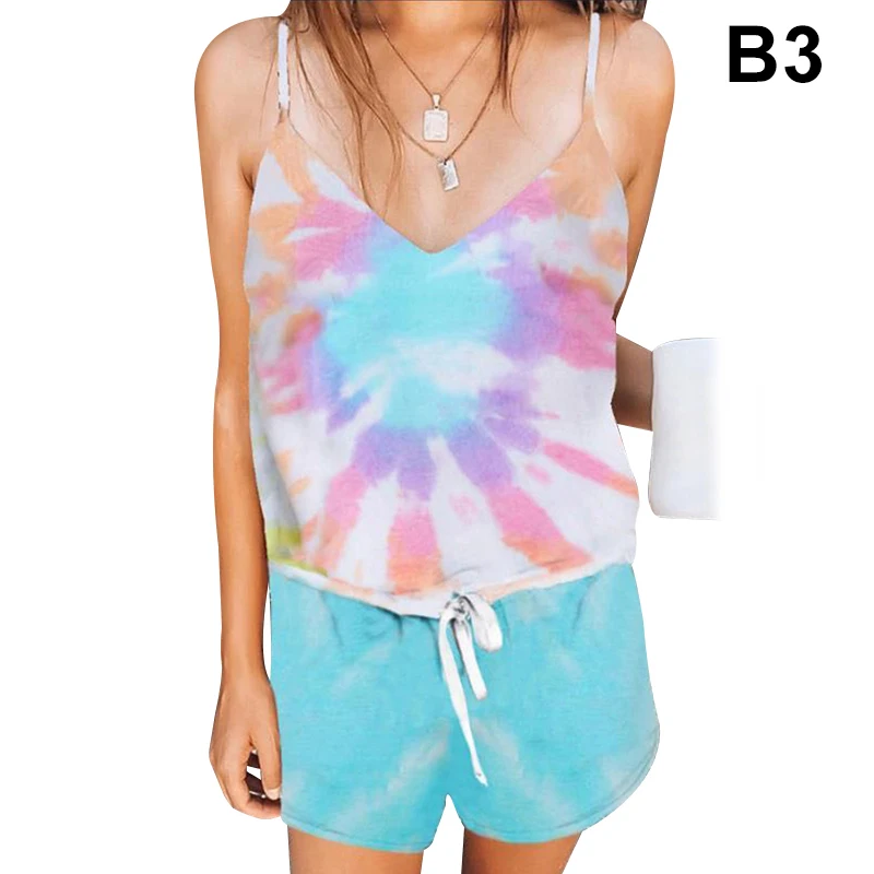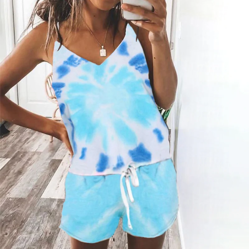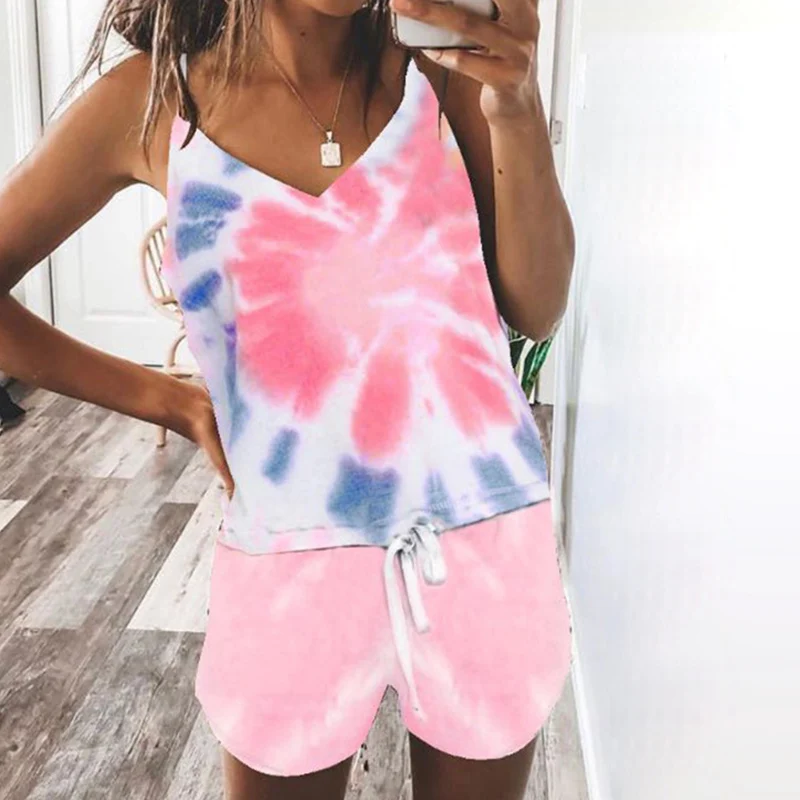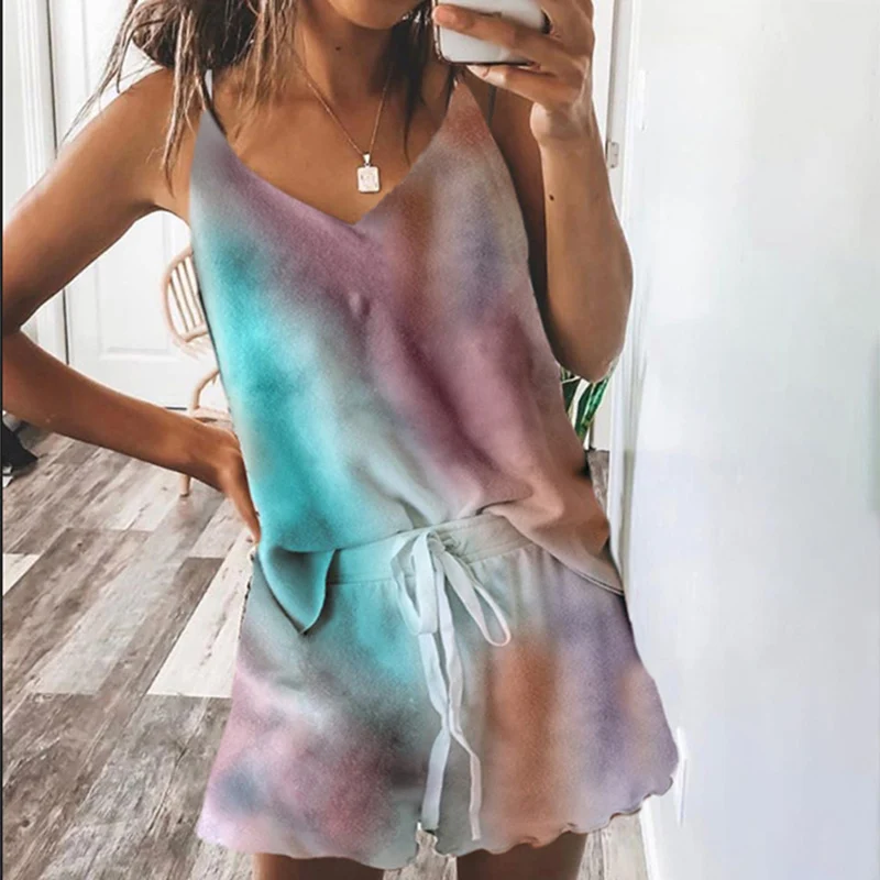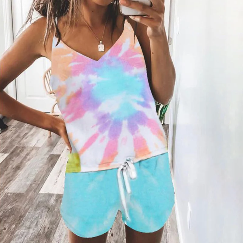 1. V neck camisole give you cool and breathable feelings. Elastic waist shorts, comfortable to wear.