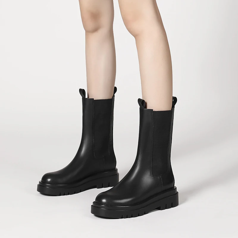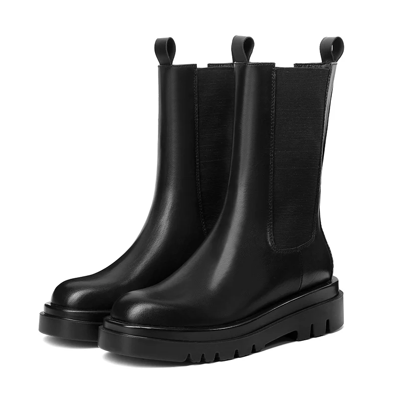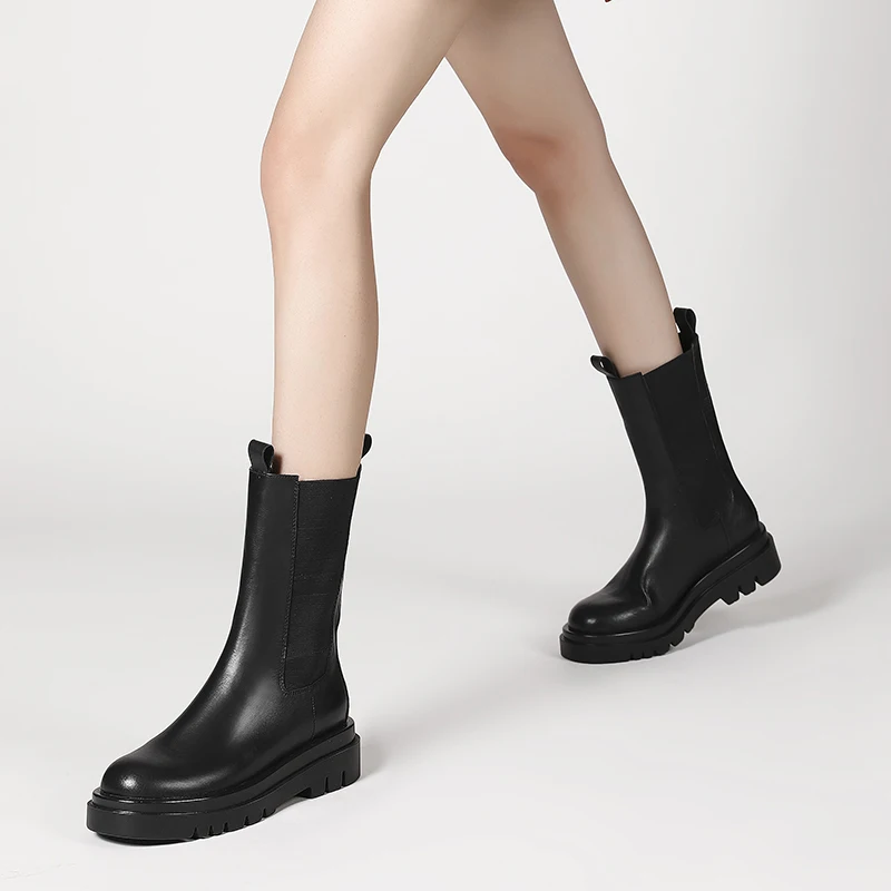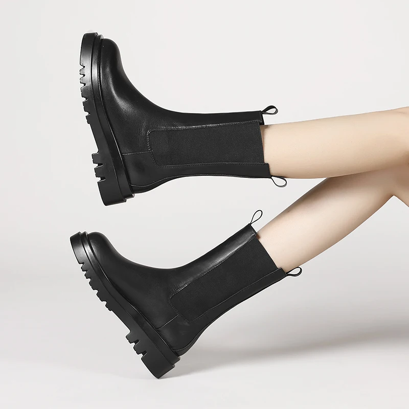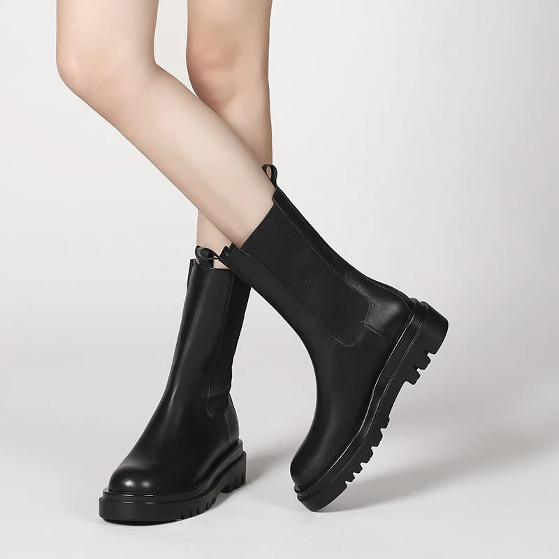 TAOFFEN New Woman Half Short Boots Flat Heel Real Leather Women Winter Shoes Fashion Cool Woman Daily Footwear Size 34-39