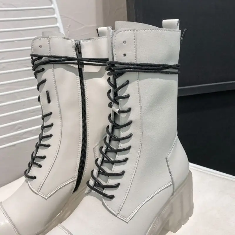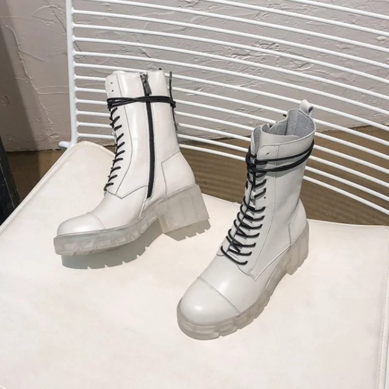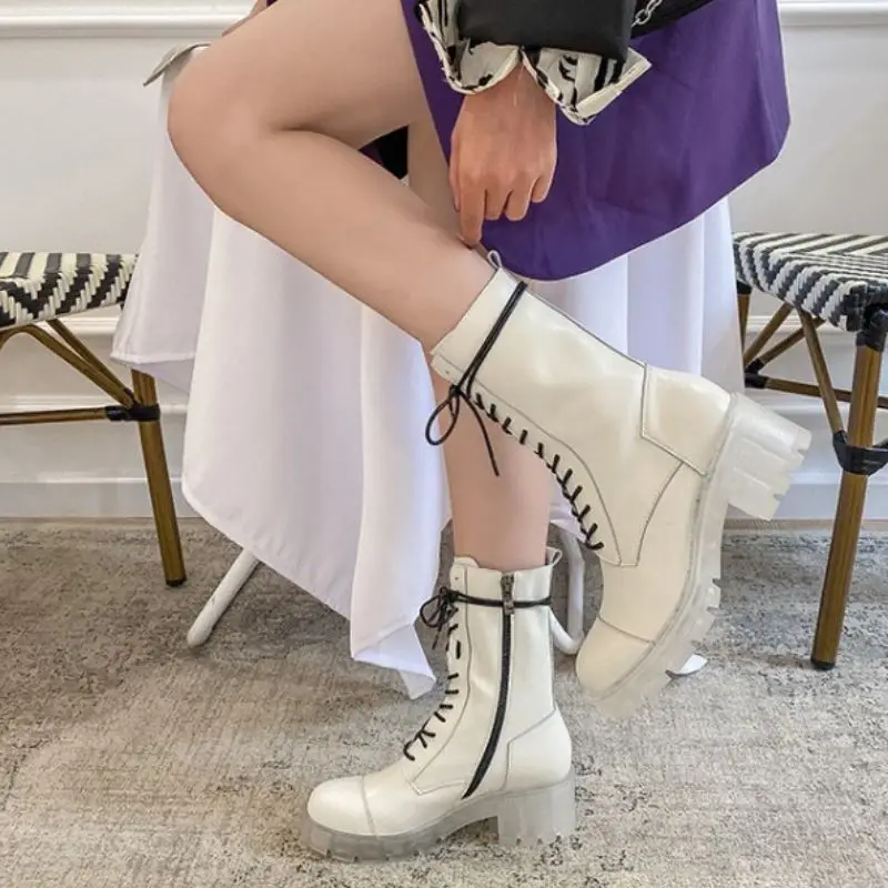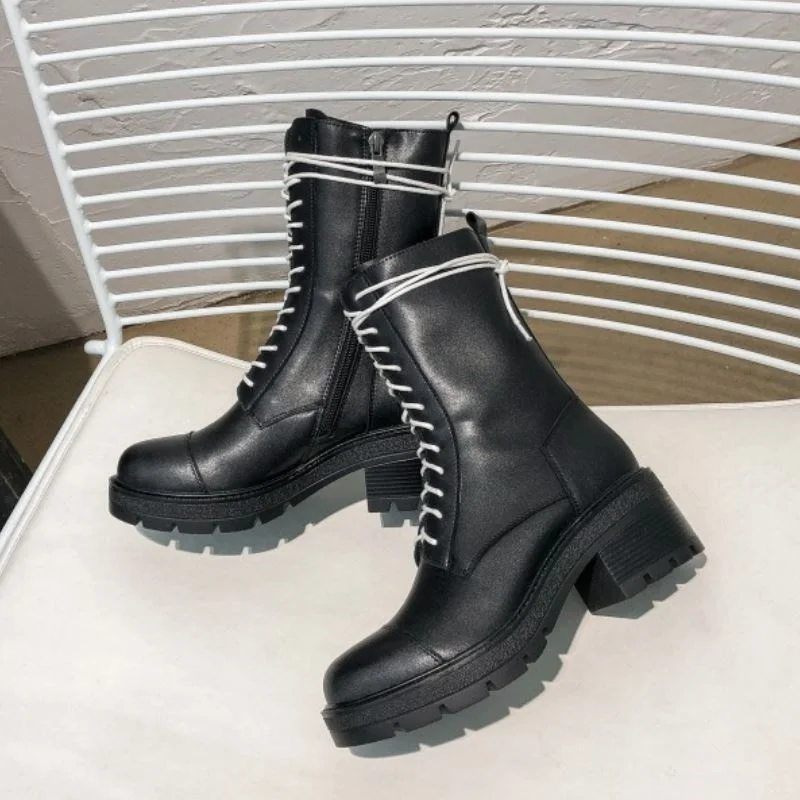 TAOFFEN Women Short Boots Genuine Leather Cross Strap Fashion Thick Heel Winter Shoes Woman Office Lady Footwear Size 34-39