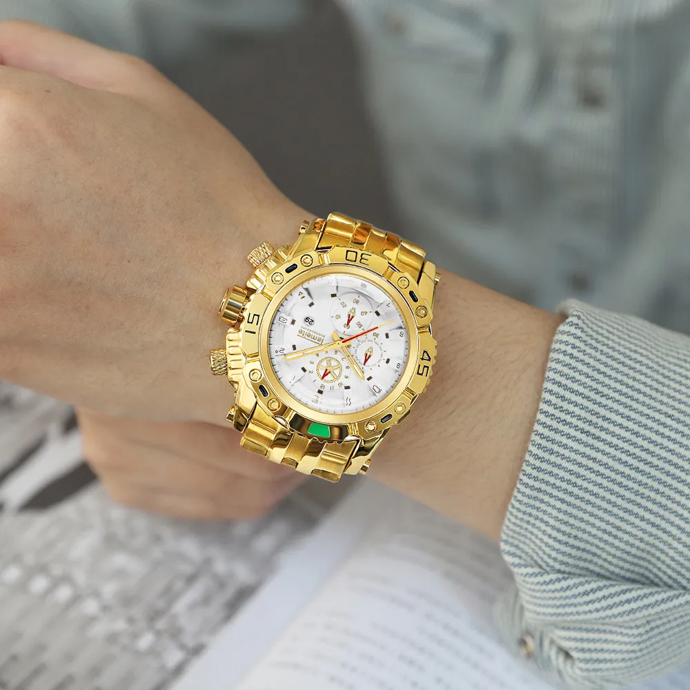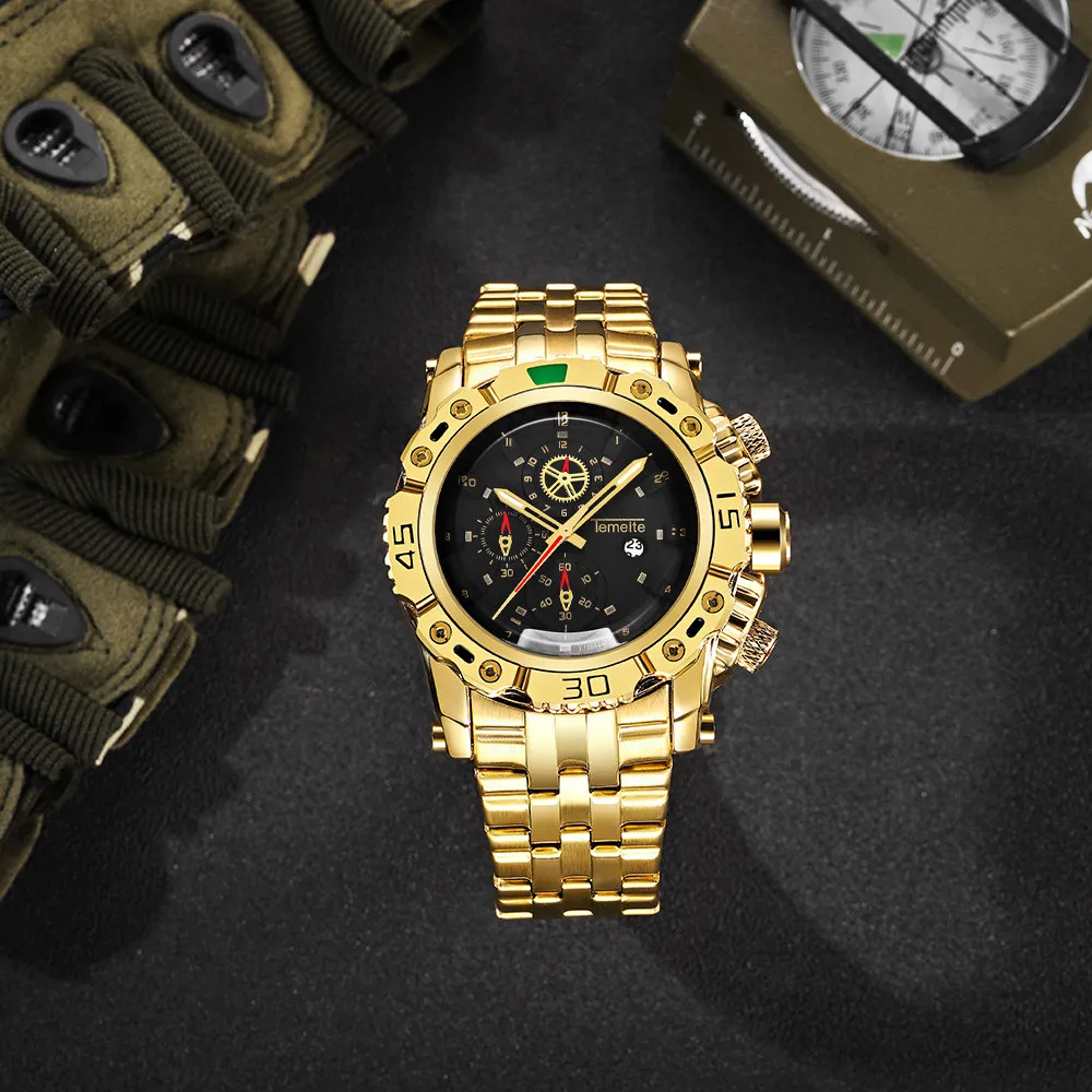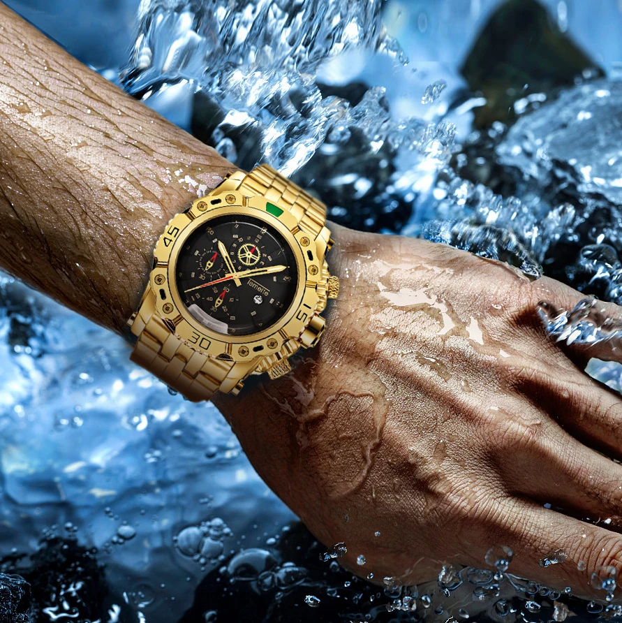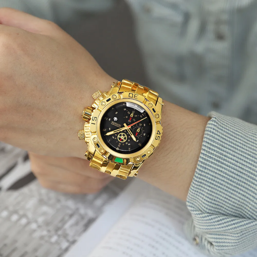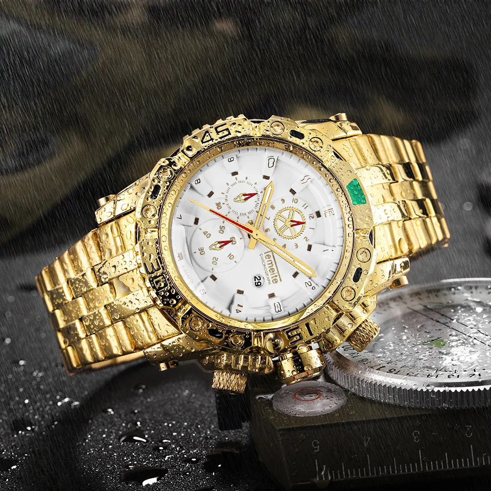 TEMEITE Creative Golden Men Quartz Wristwatches 3D Dial Design Full Steel Calendar Waterproof Big Watches Top Brand Luxury Clock