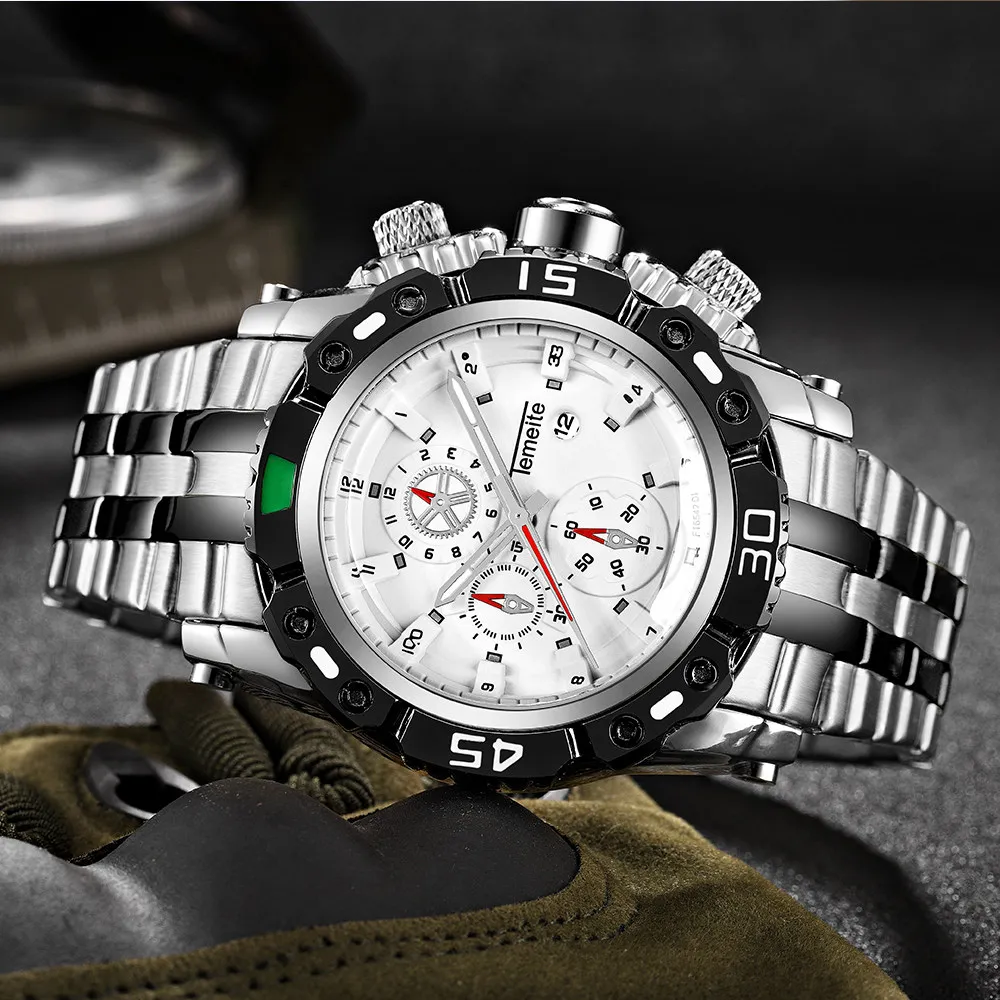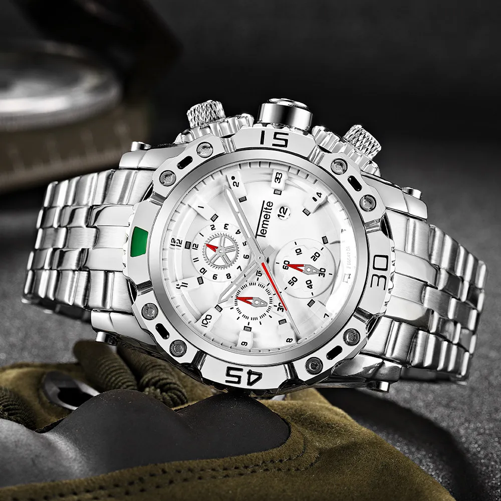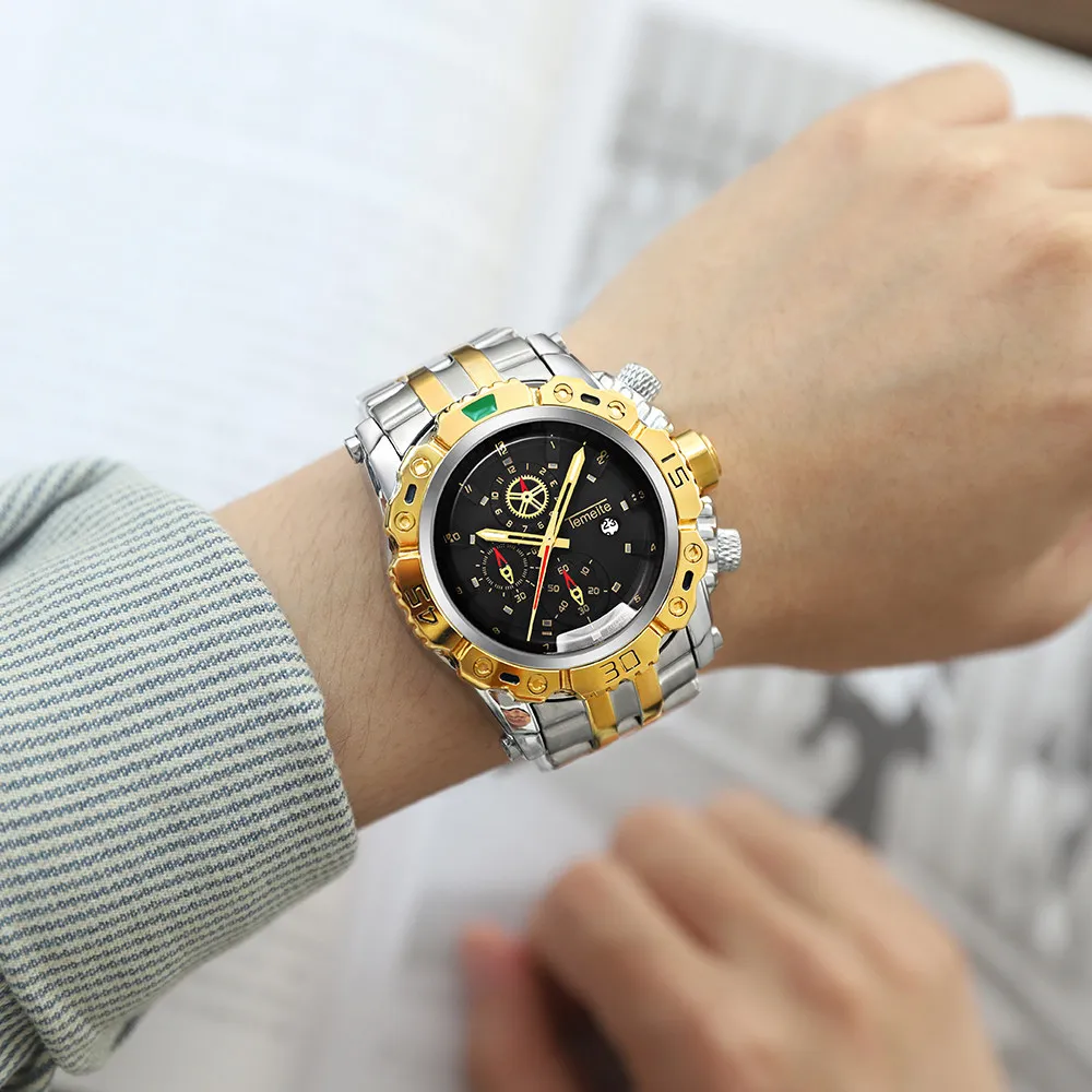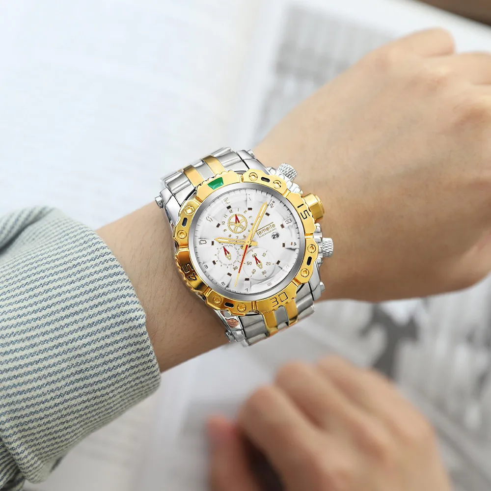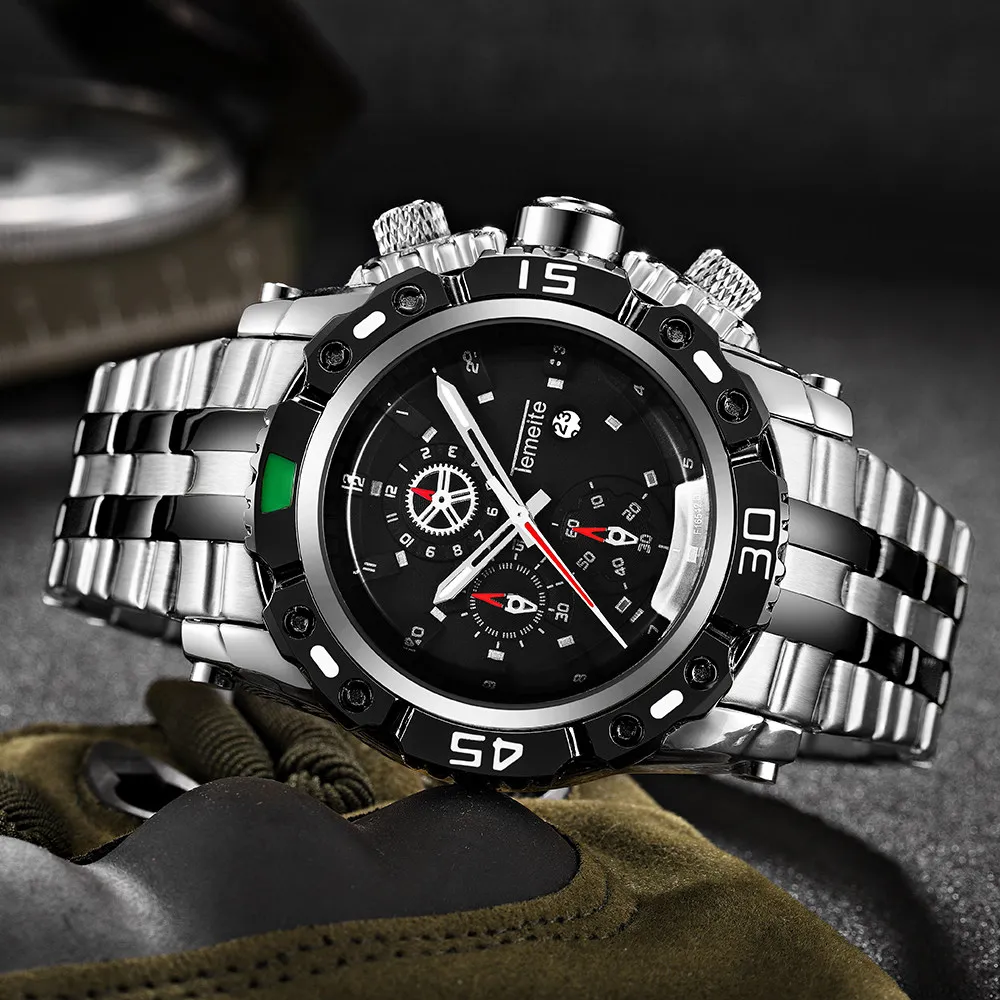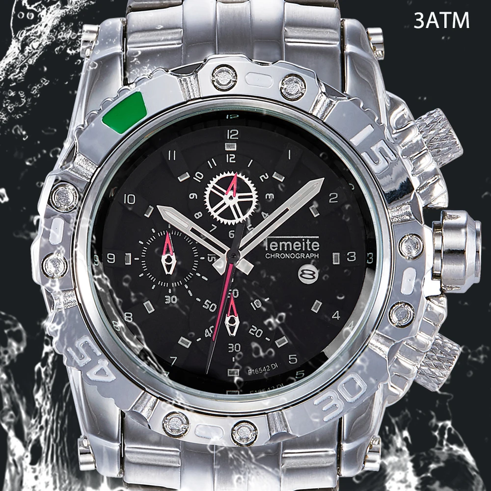 TEMEITE Creative Golden Men Quartz Wristwatches 3D Dial Design Full Steel Calendar Waterproof Big Watches Top Brand Luxury Clock