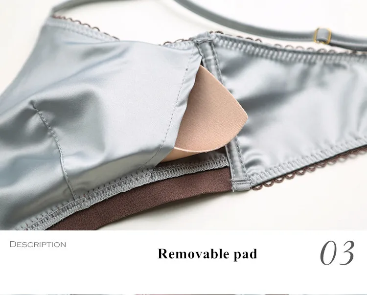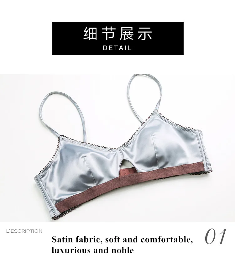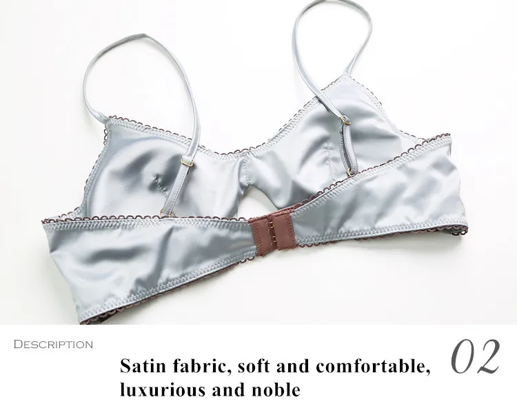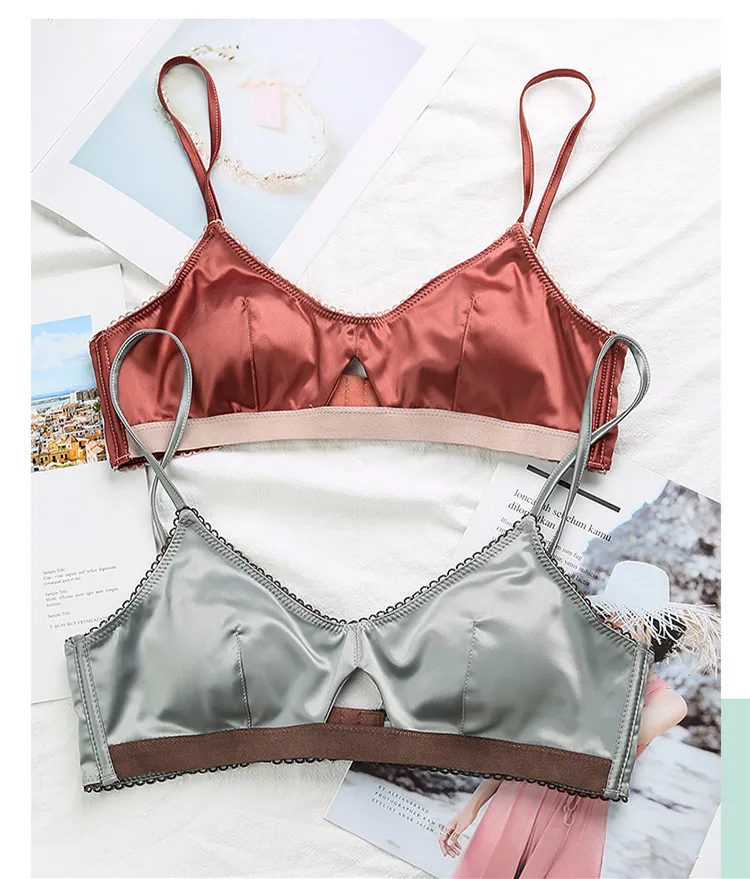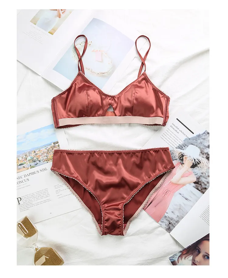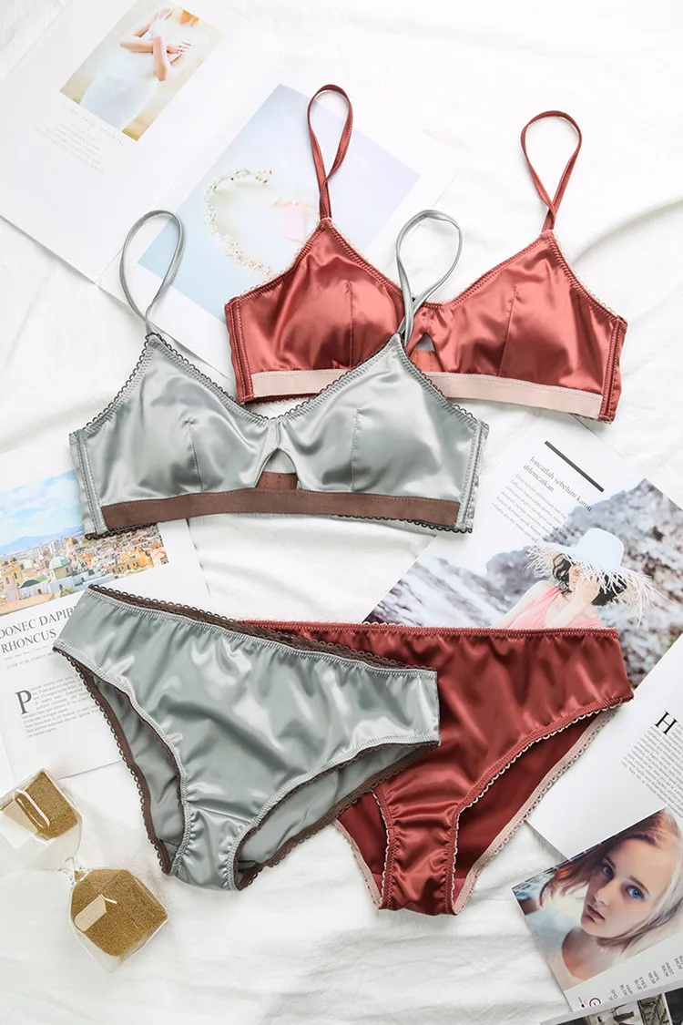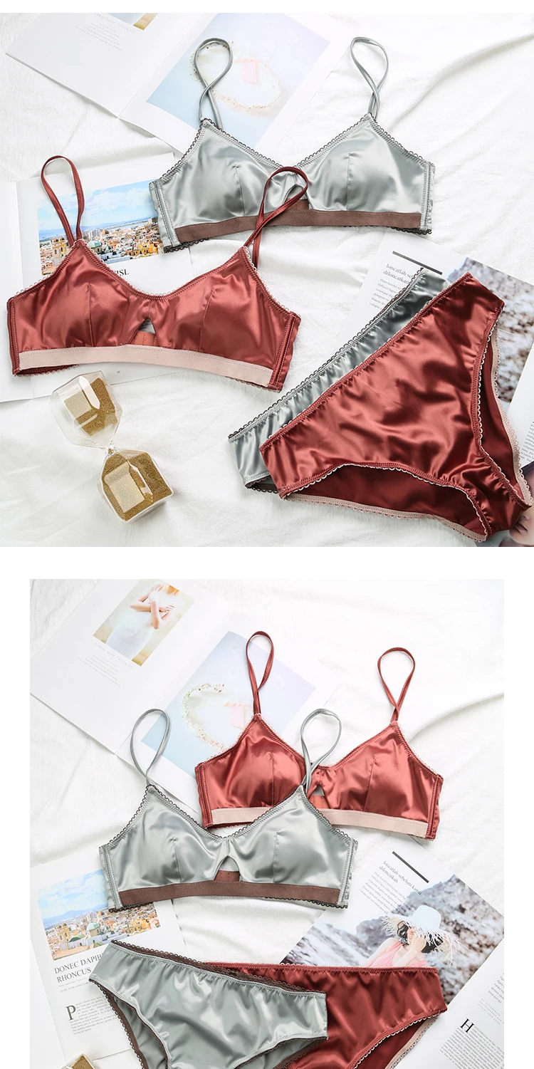 TERMEZY New Women Underwear Wire Free satin bra thin 3/4 cups Bra and Panty Set Hollow Lingerie Women Brassiere Bralette