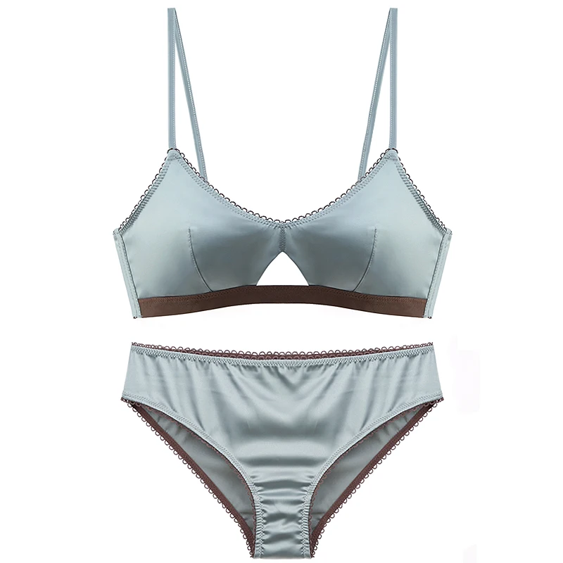 TERMEZY New Women Underwear Wire Free satin bra thin 3/4 cups Bra and Panty Set Hollow Lingerie Women Brassiere Bralette