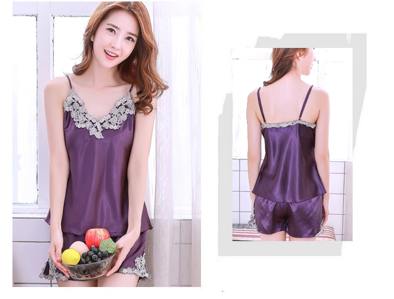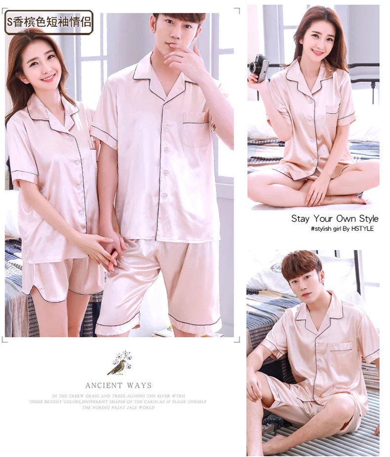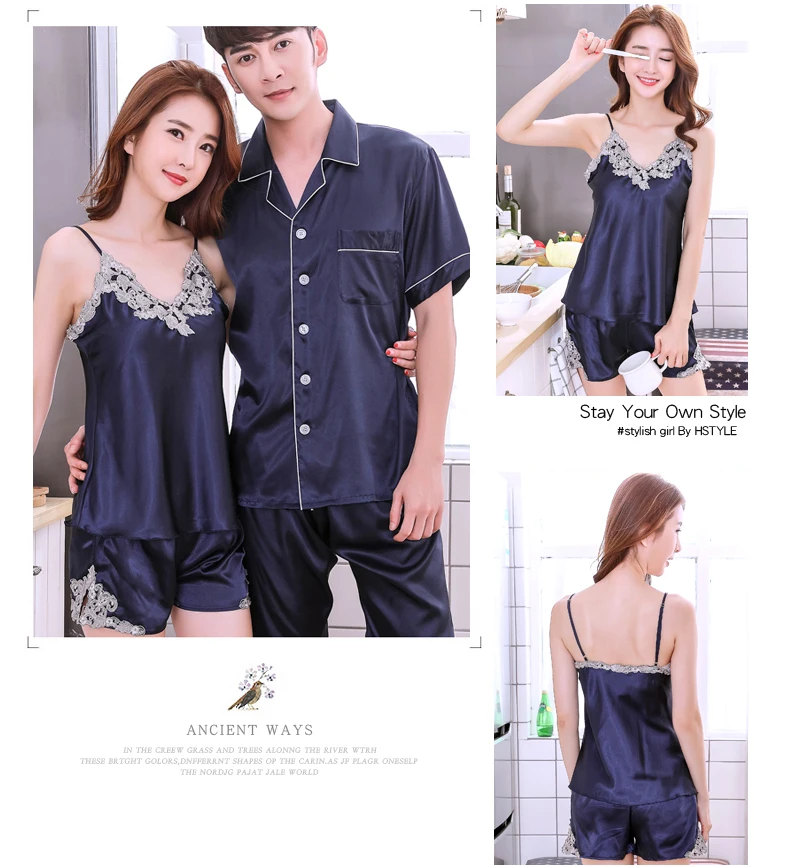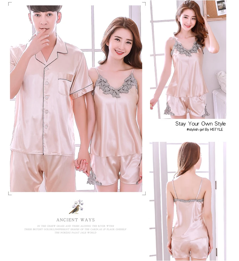 Thoshine Brand China Satin Silk Pajamas Sets Sleeveless Spaghetti Strap Couple Sleepwear Family Homewear Women & Men Lover Cami