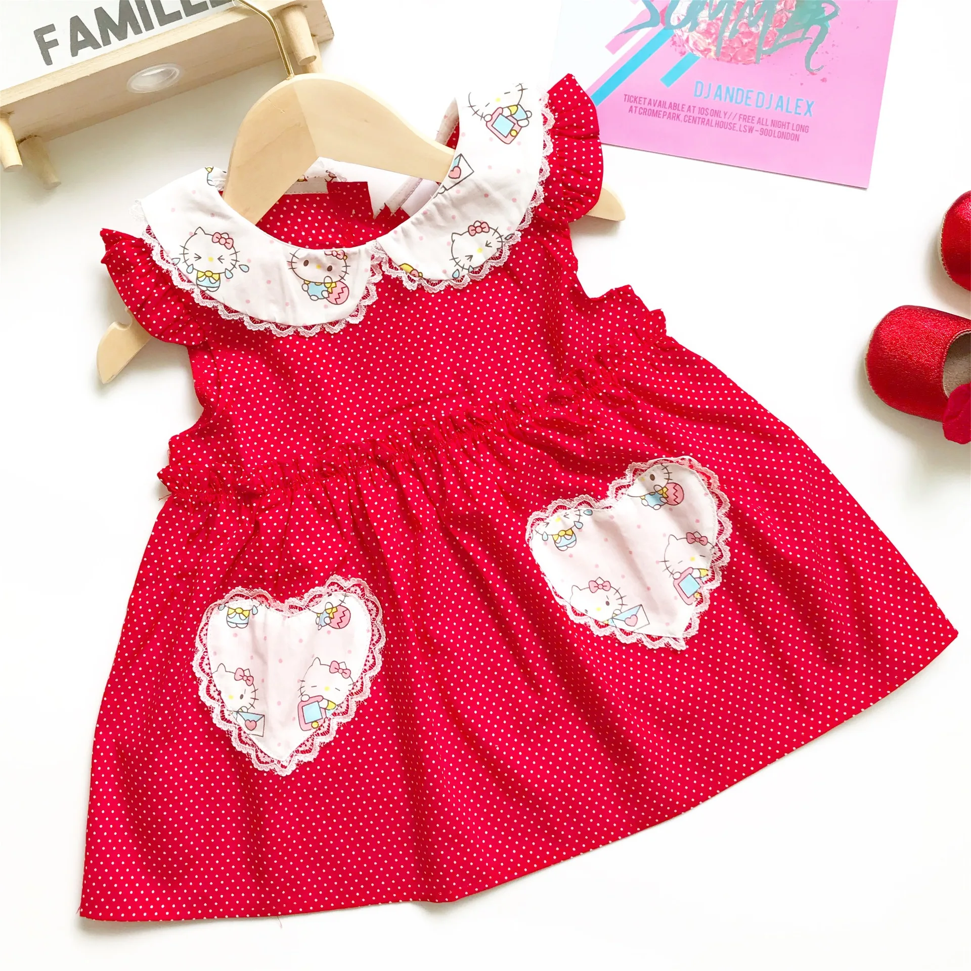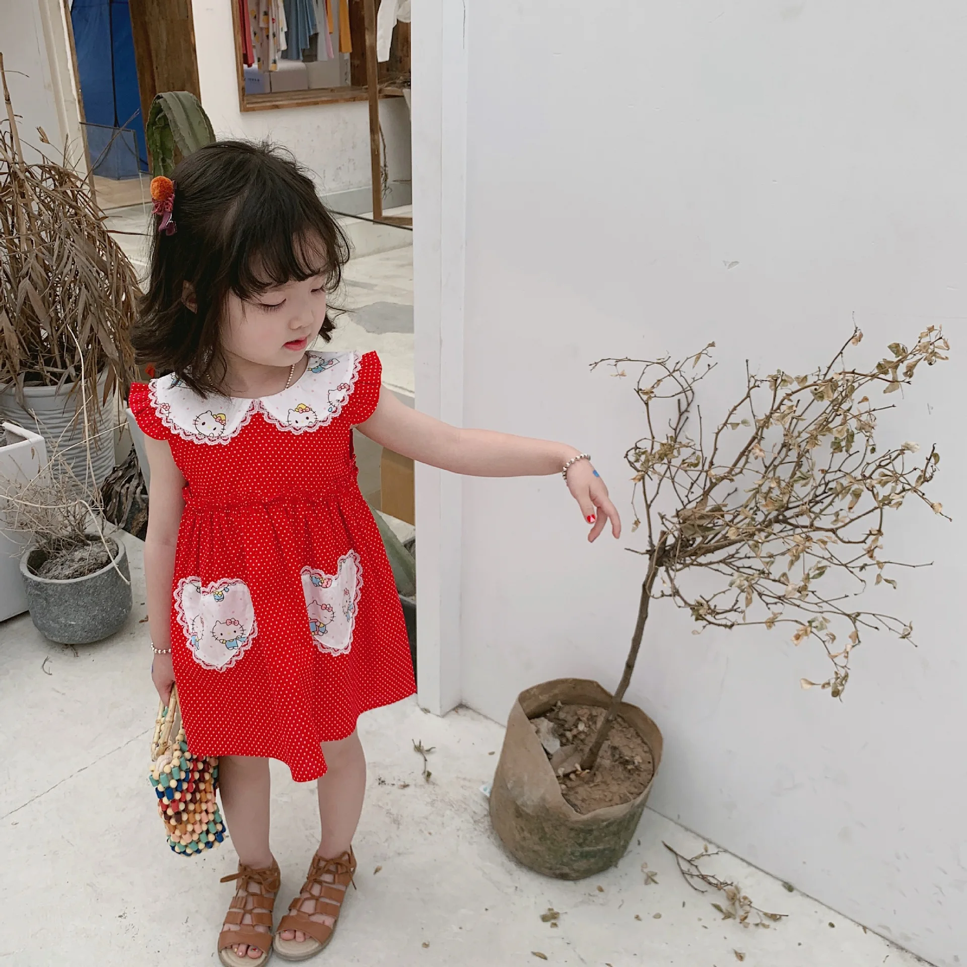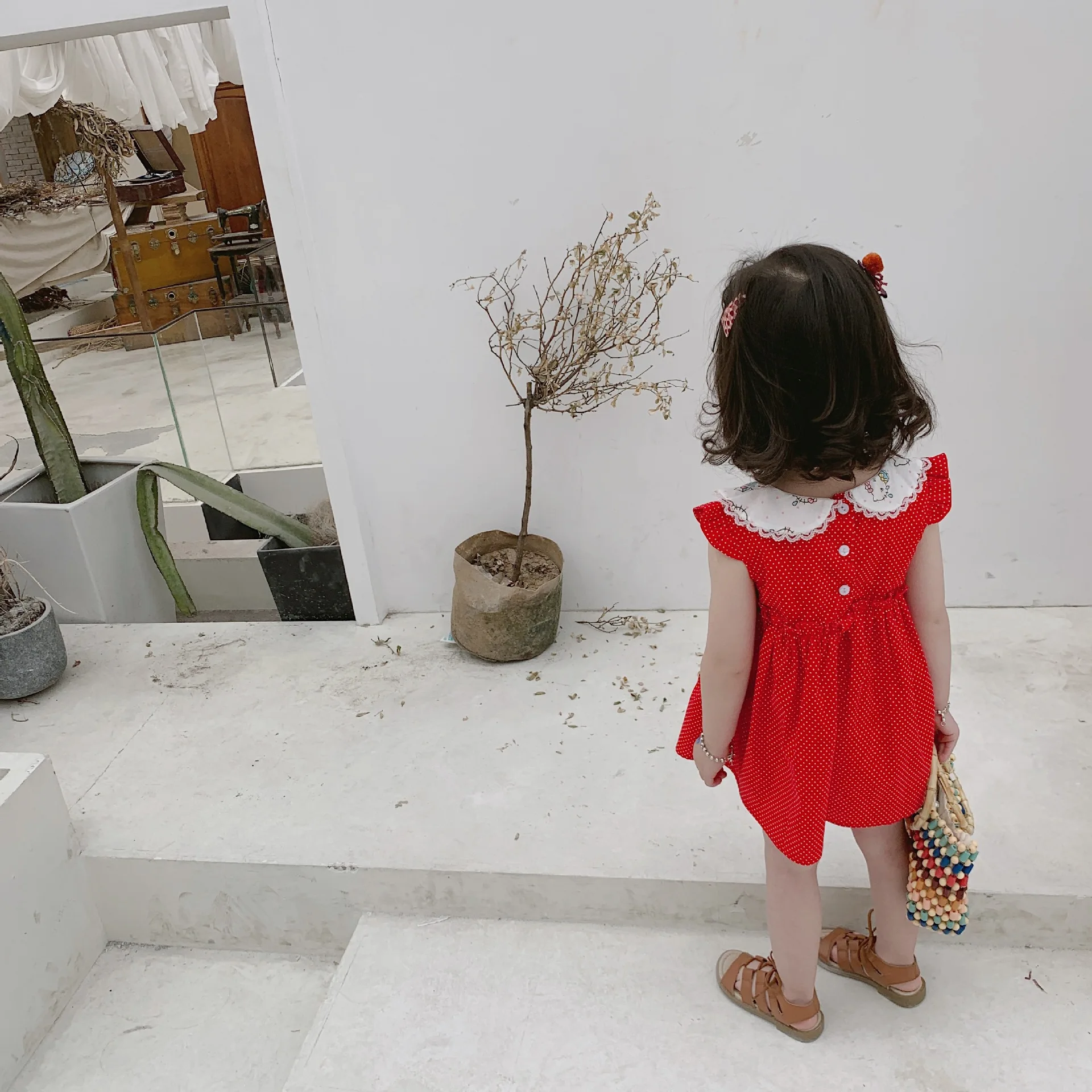 Tonytaobaby Summer New Baby Girl Red Polka Dot Fly Sleeve Lace Dress Lovely Cotton Dress