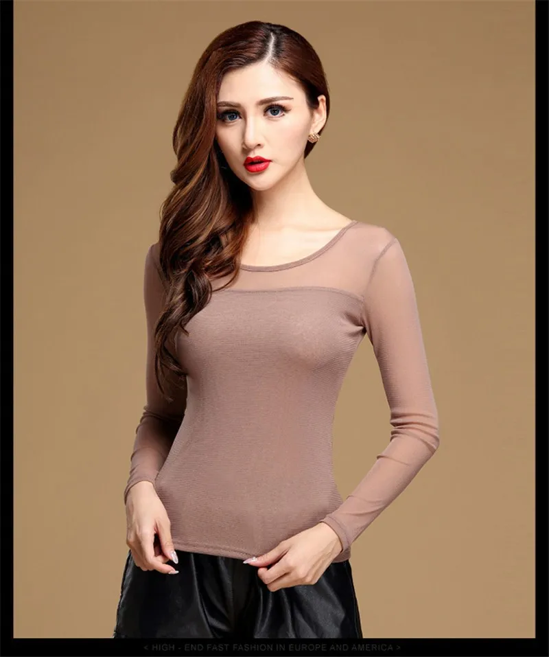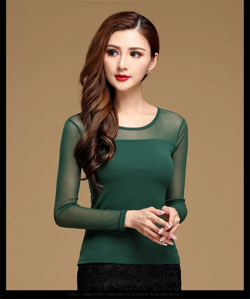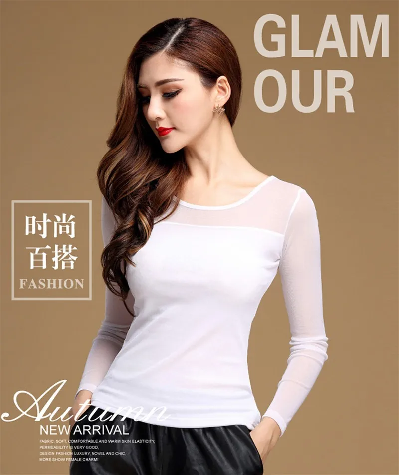 Tops Womens Blouse Shirt Black White Sexy Long Casual Long Sleeve Lace Blusas Under Shirts Elastic Tops and Blouses Women New