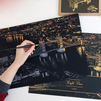 World Famous City NIght View Scraping Painting Creative City Scratch Night View Sketchpad Drawing Toys For Kid Learning Toy Gift