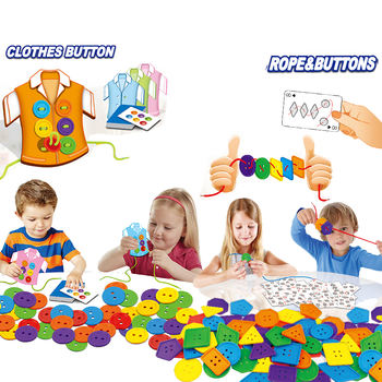 Kids Fine Motor Skills Toy Sewing on Buttons,Rope Clothes Buttons Lacing Board Toys,Sewing Play Kit Educational Toy for Children