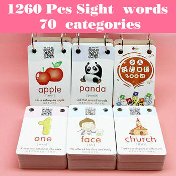 1260 Words Early Learning Picture Card Chinese English Flashcards Word Card Kids Games Educational Toys for Children Montessori