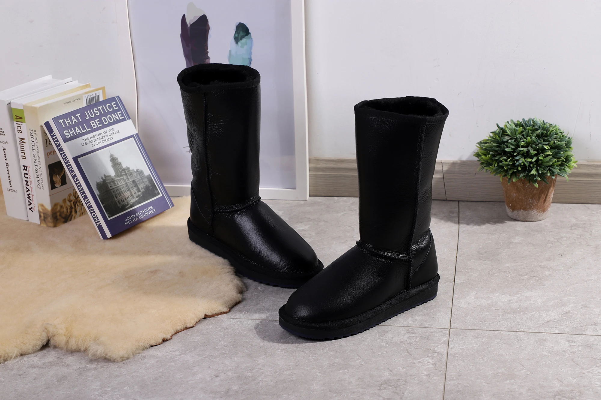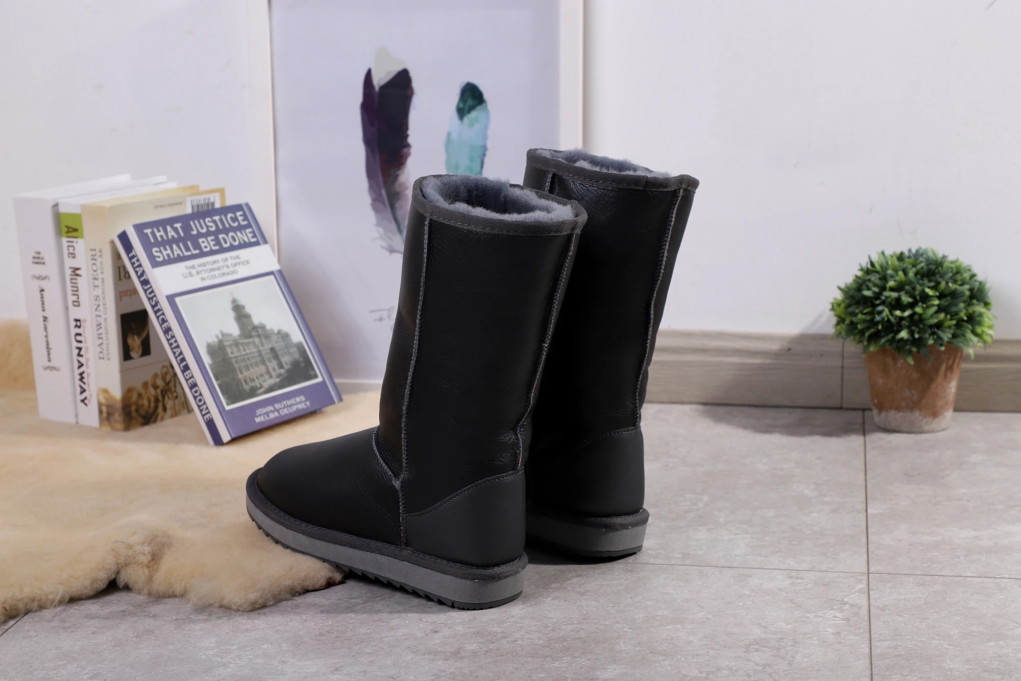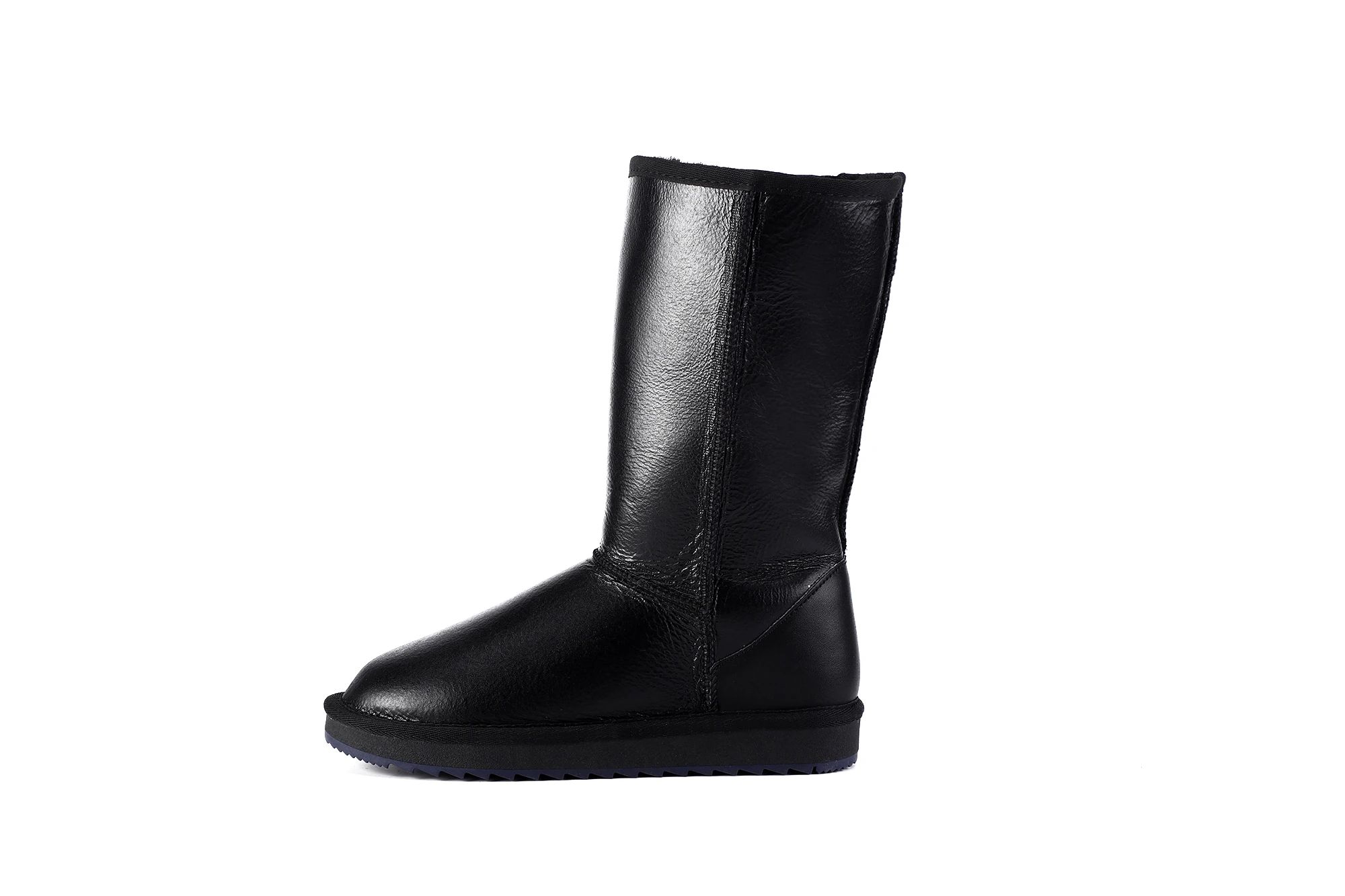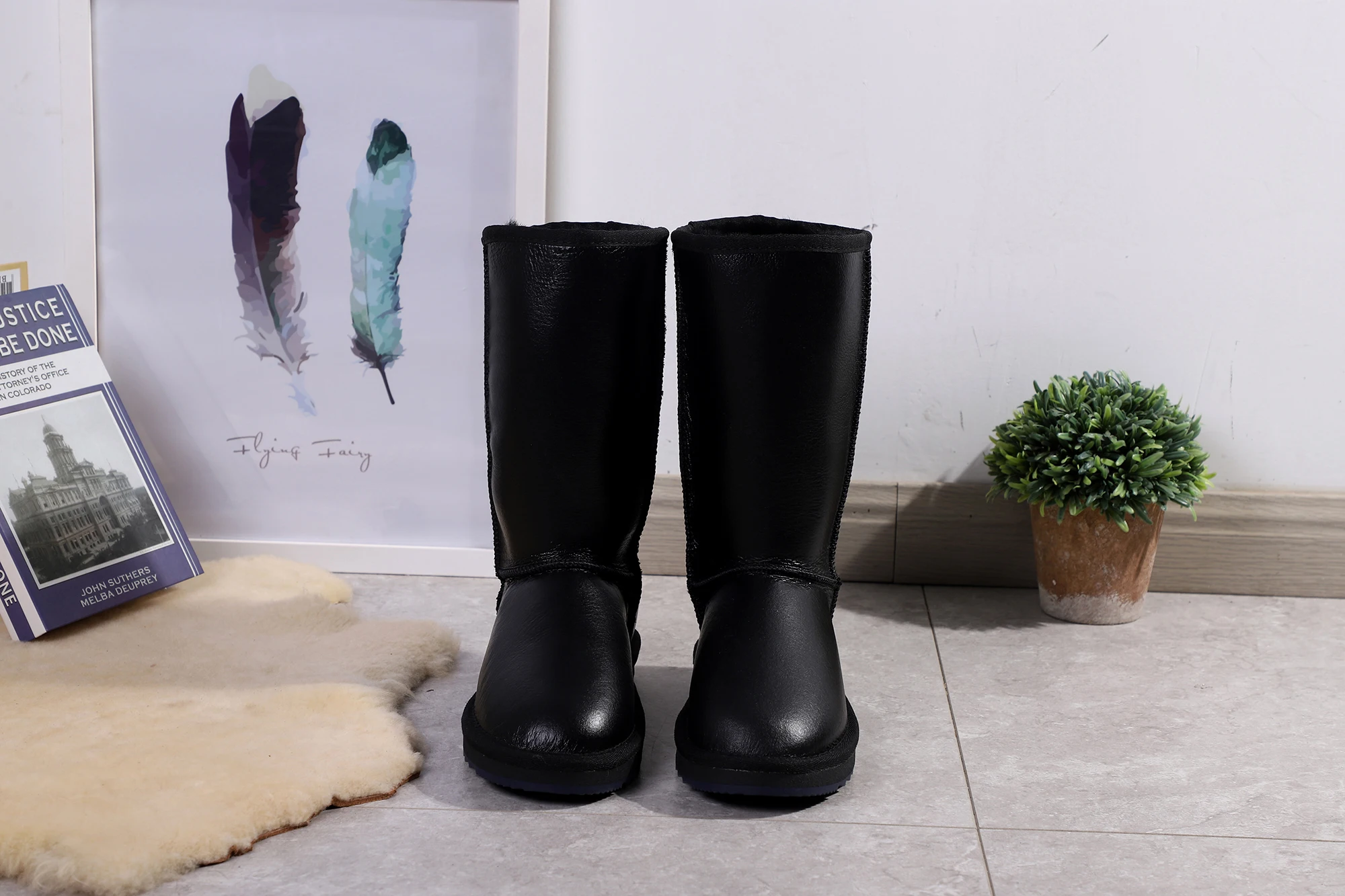 TPCR 2020 Fashion Knee High Sheepskin Suede Leather Wool Fur Shearling Lined Winter for Women Snow Boots waterproof black Shoes