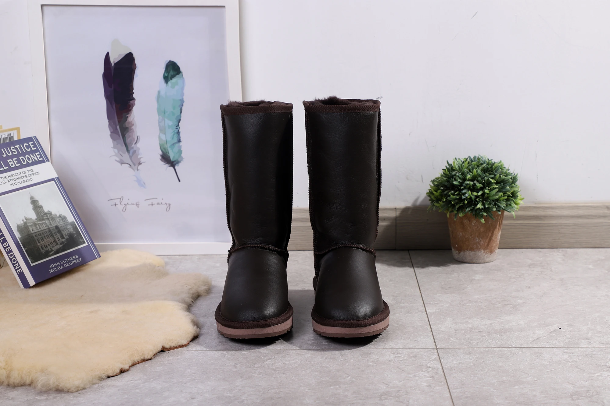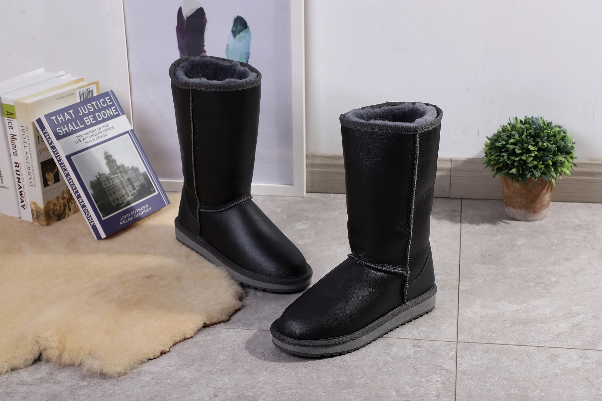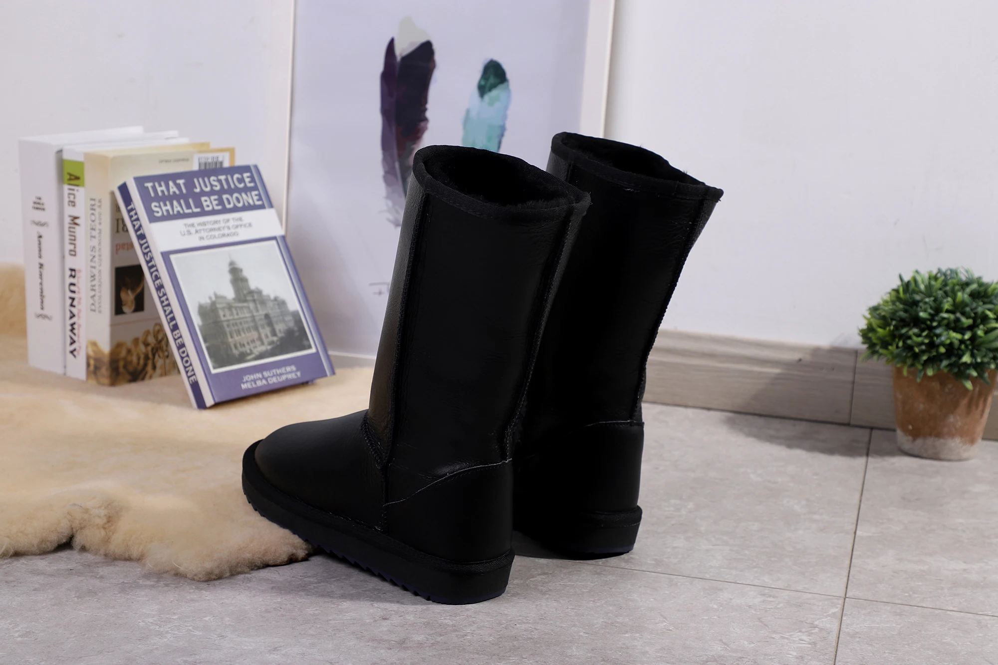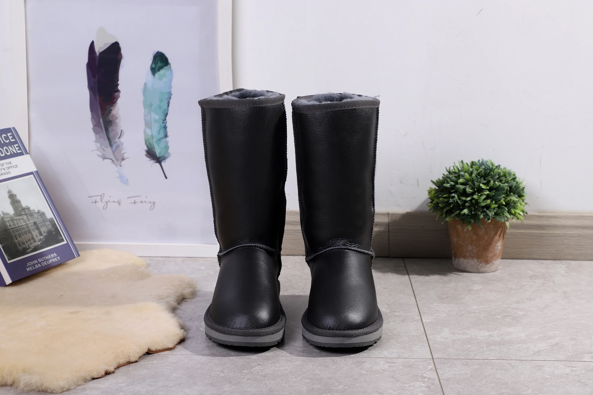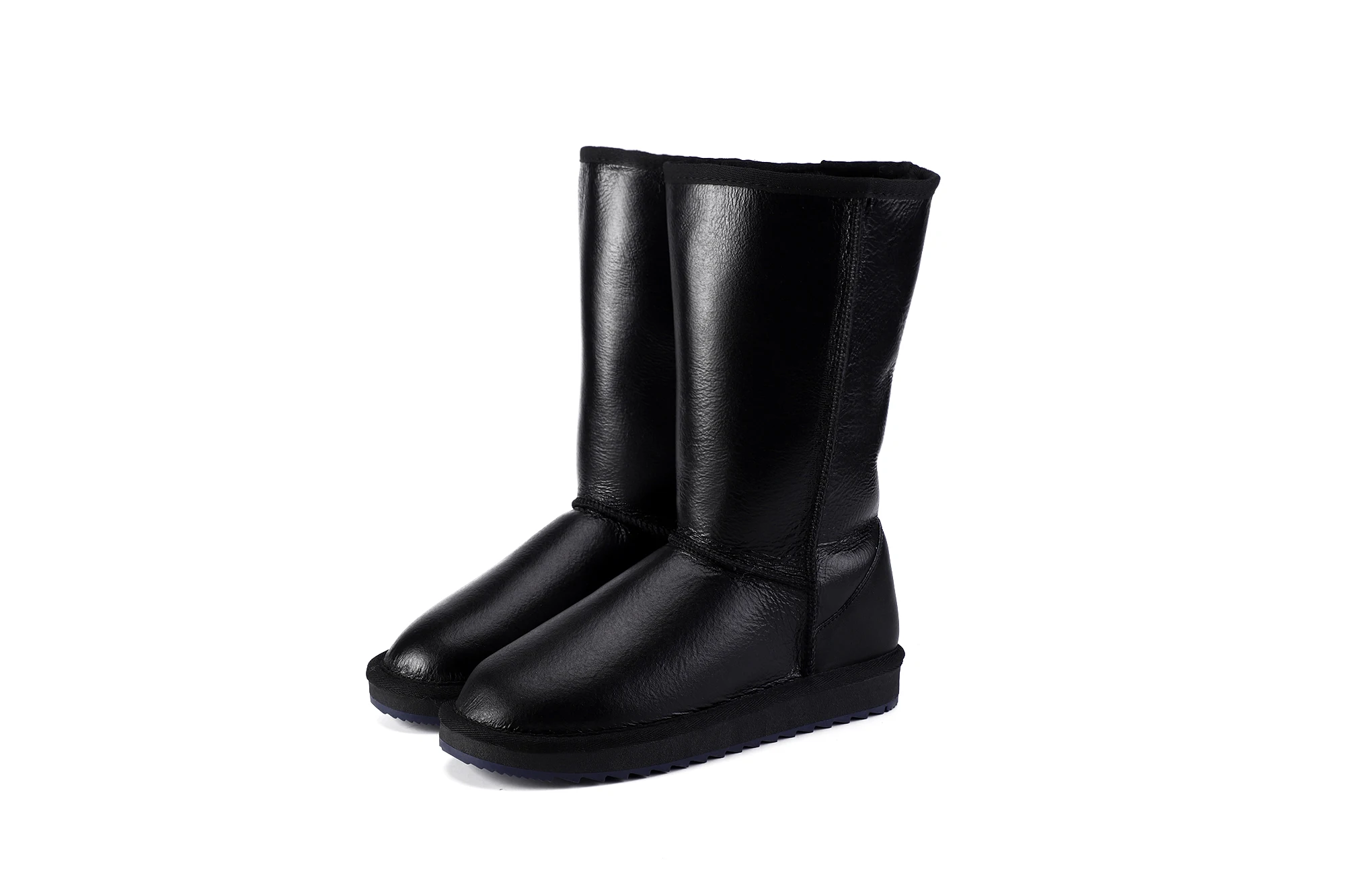 TPCR 2020 Fashion Knee High Sheepskin Suede Leather Wool Fur Shearling Lined Winter for Women Snow Boots waterproof black Shoes