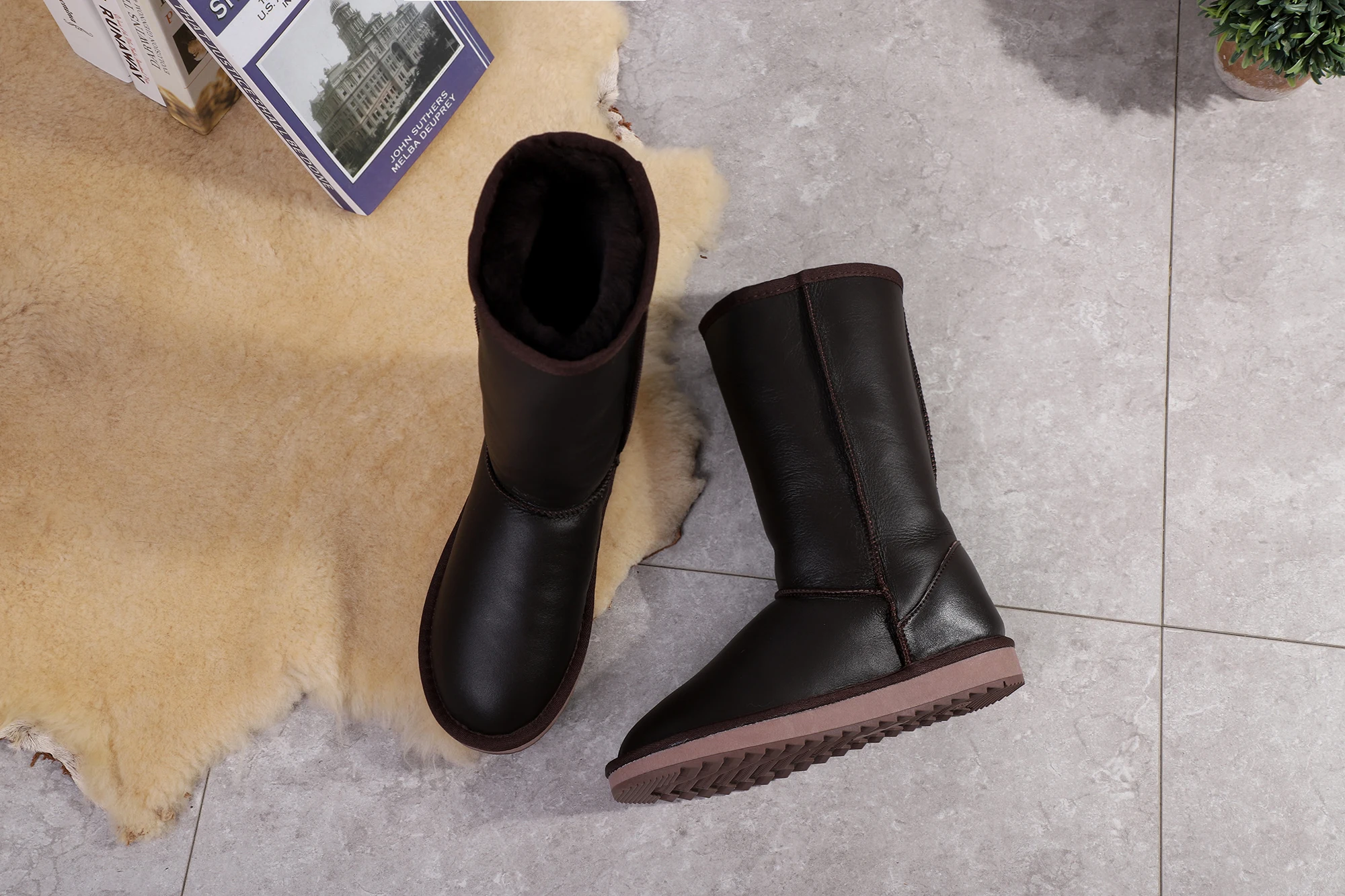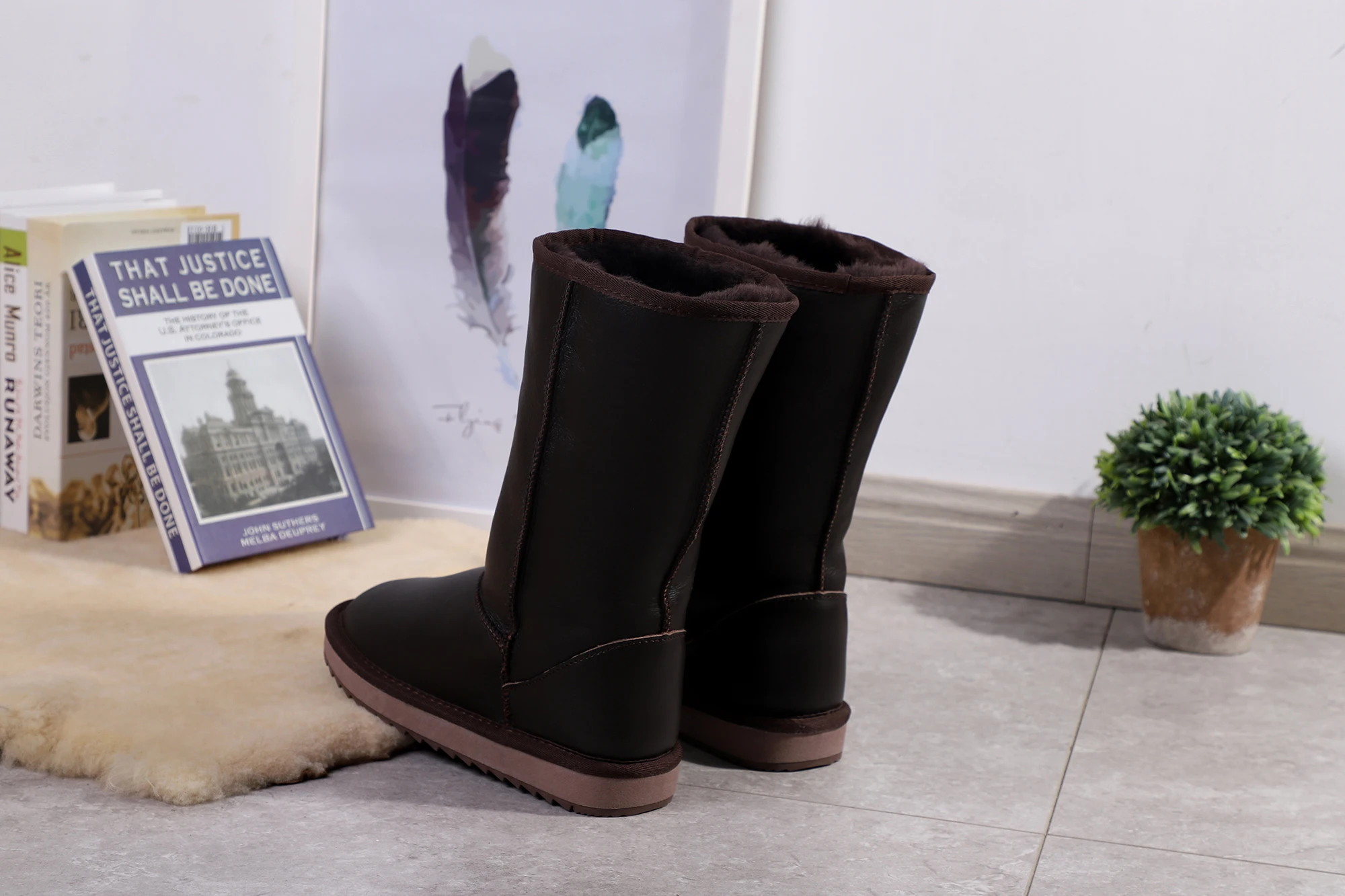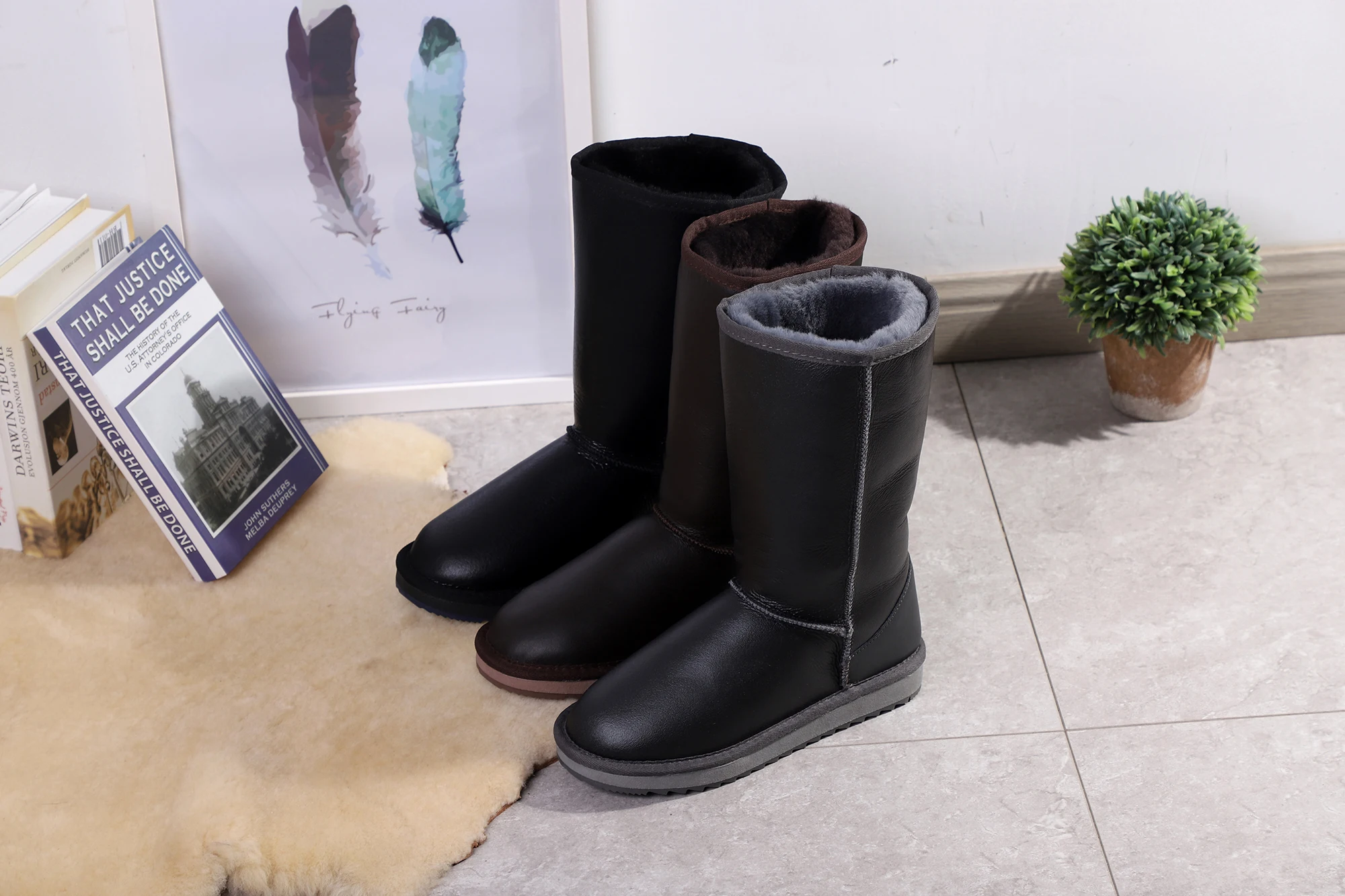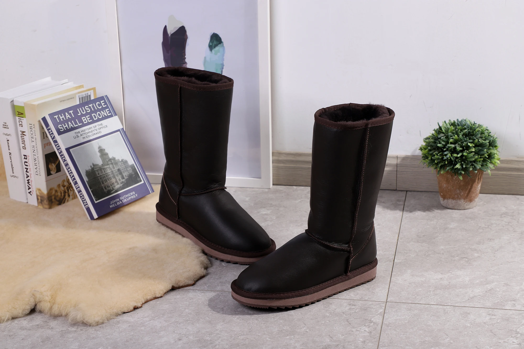 TPCR 2020 Fashion Knee High Sheepskin Suede Leather Wool Fur Shearling Lined Winter for Women Snow Boots waterproof black Shoes