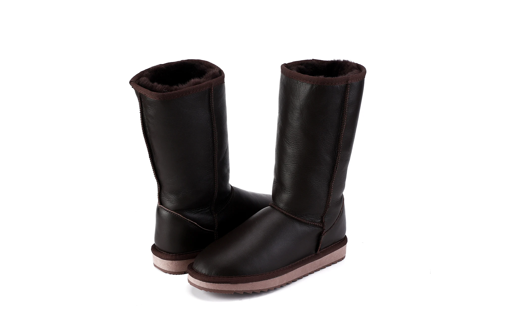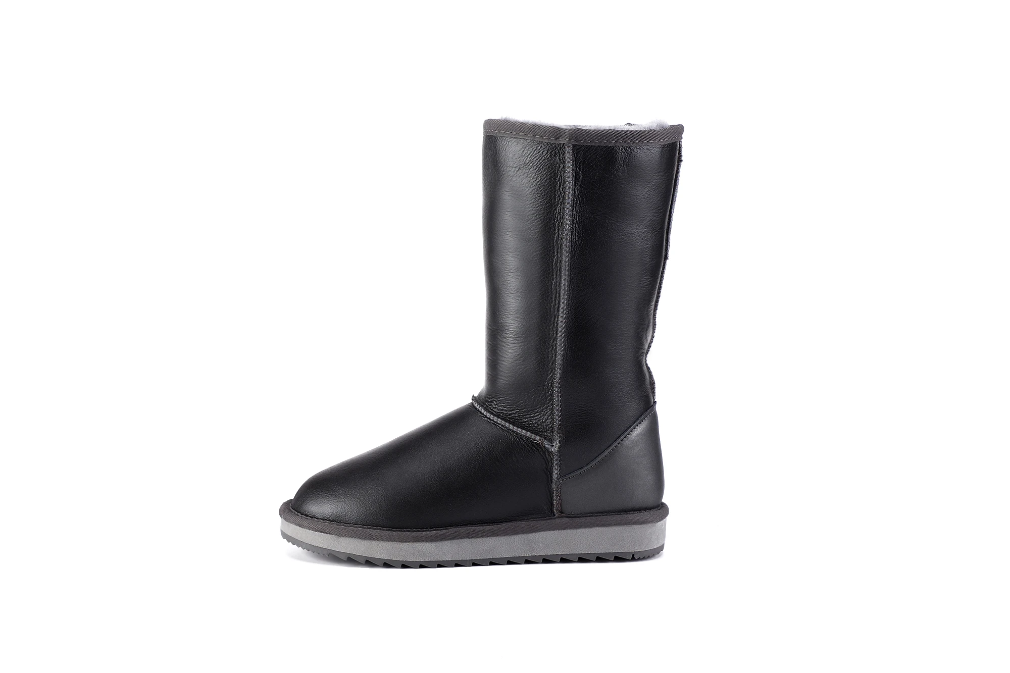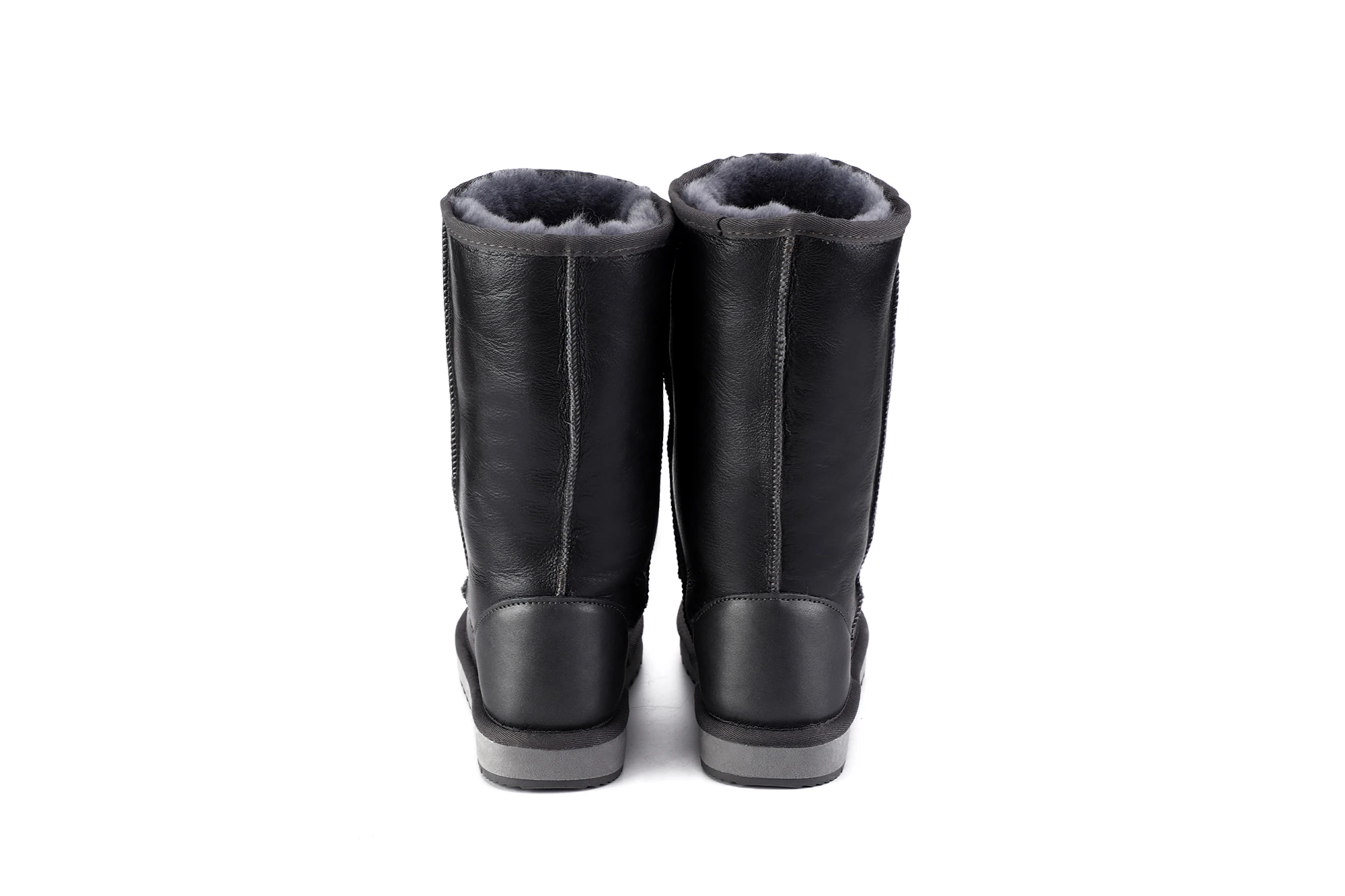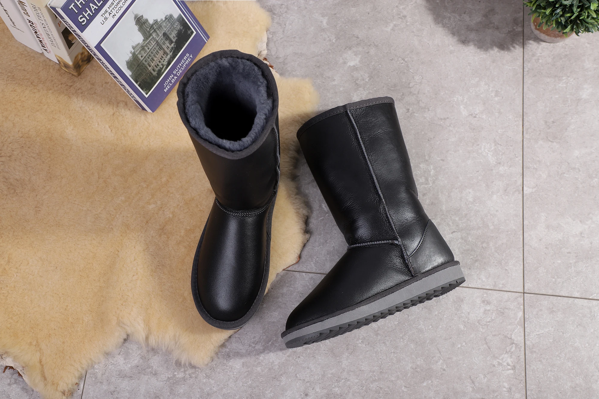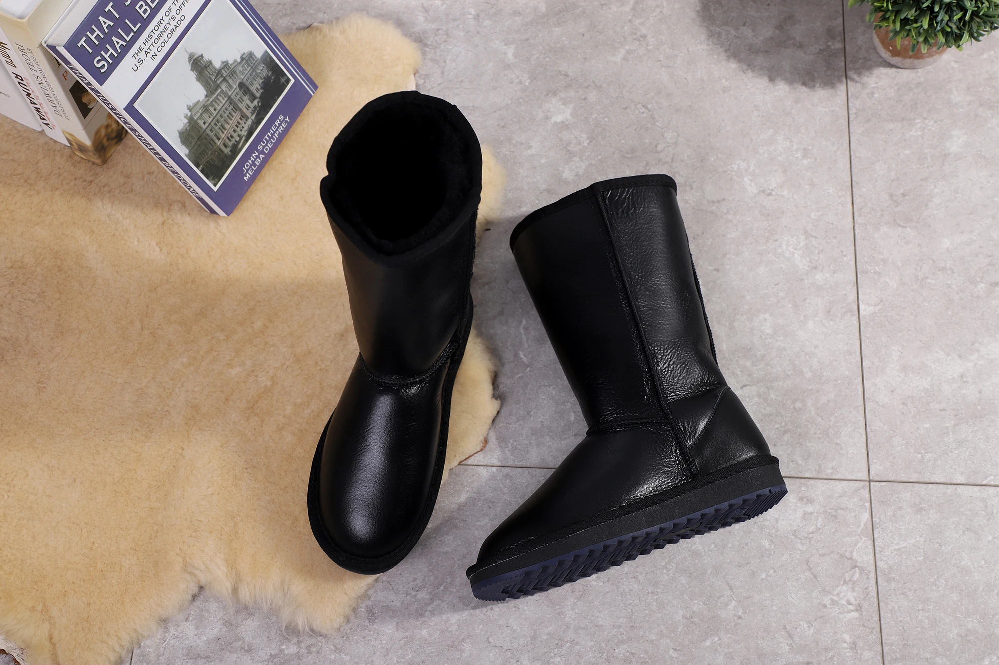 TPCR 2020 Fashion Knee High Sheepskin Suede Leather Wool Fur Shearling Lined Winter for Women Snow Boots waterproof black Shoes