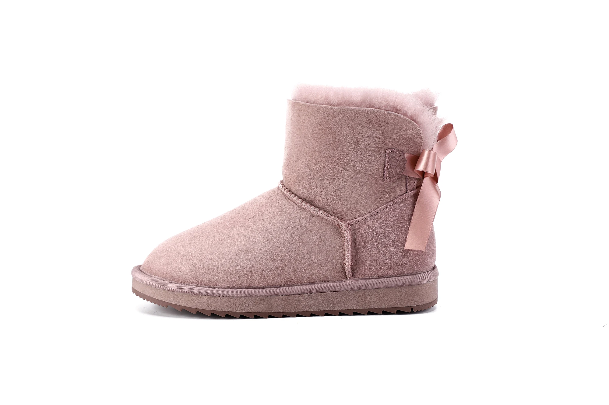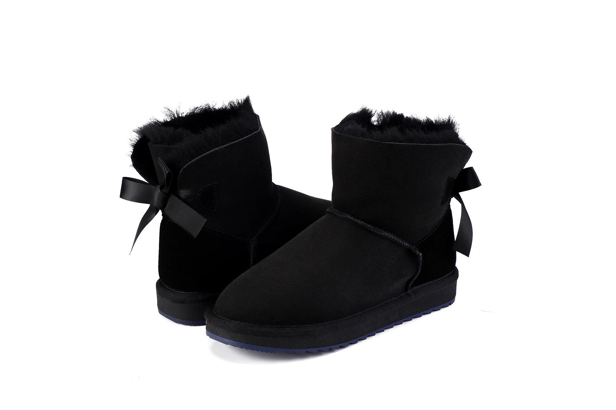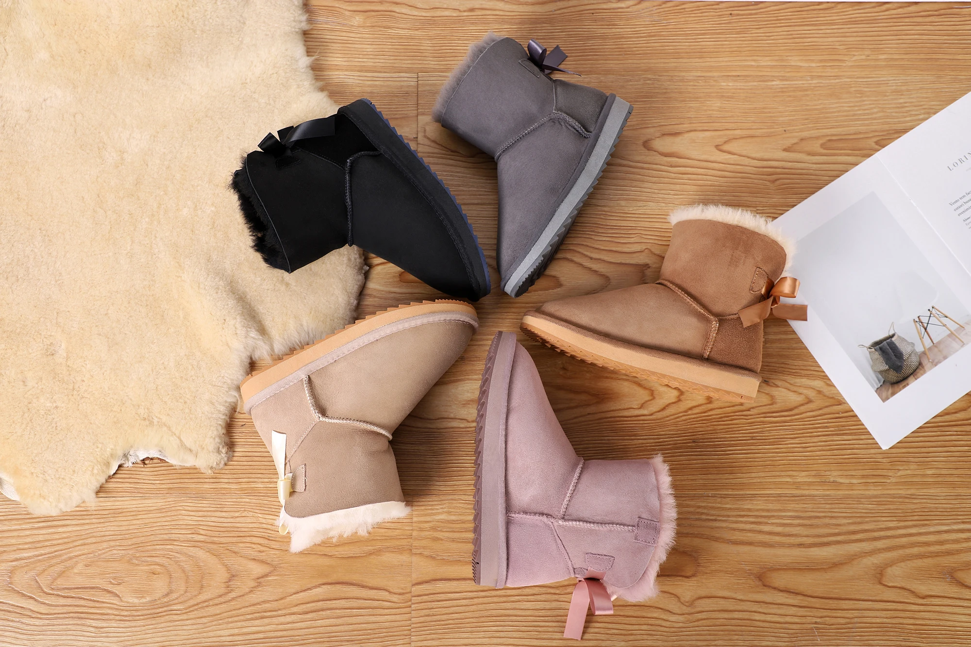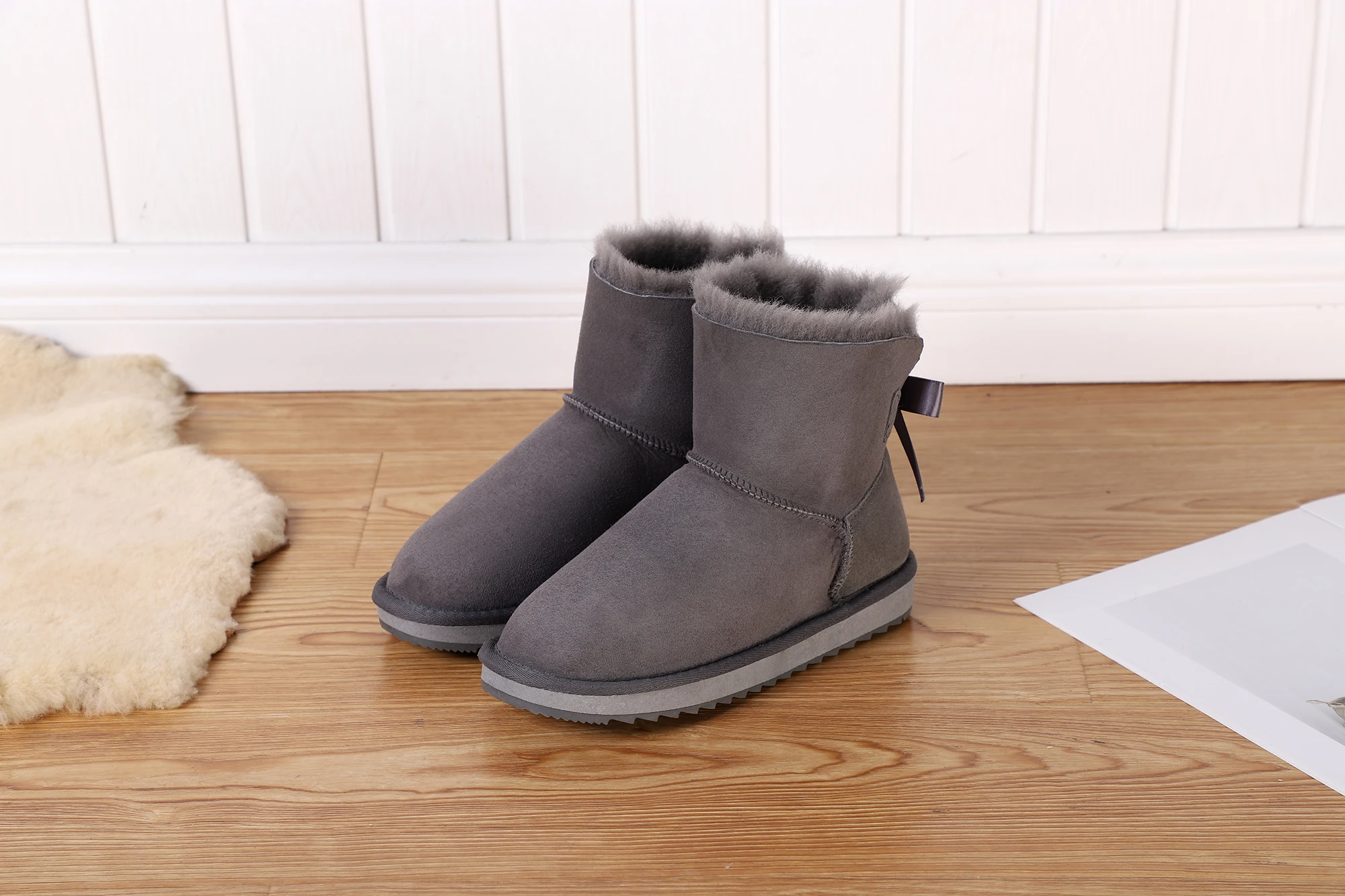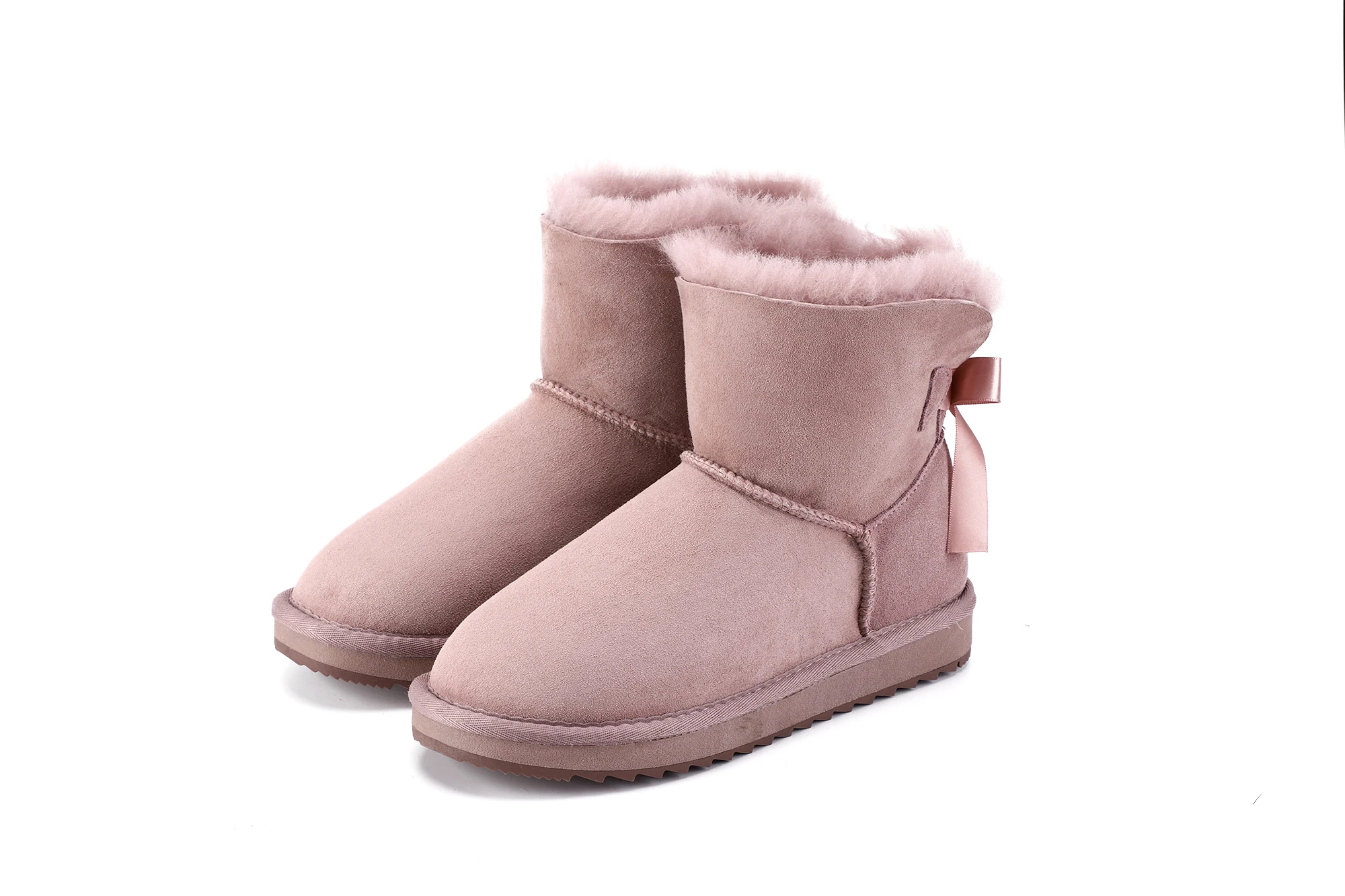 TPCR Sheepskin Leather Wool Fur Lined Women Short Ankle Winter Suede Snow Boots with Bowknots Mink Fur Tassels dusk Warm Shoes