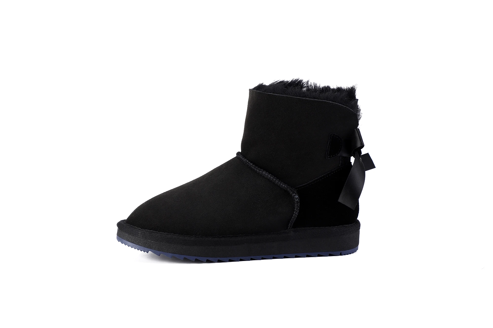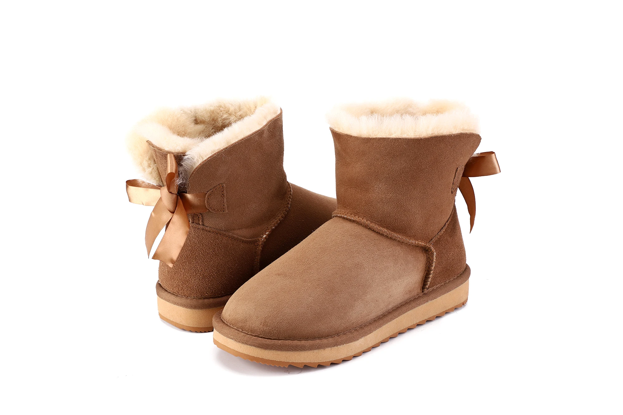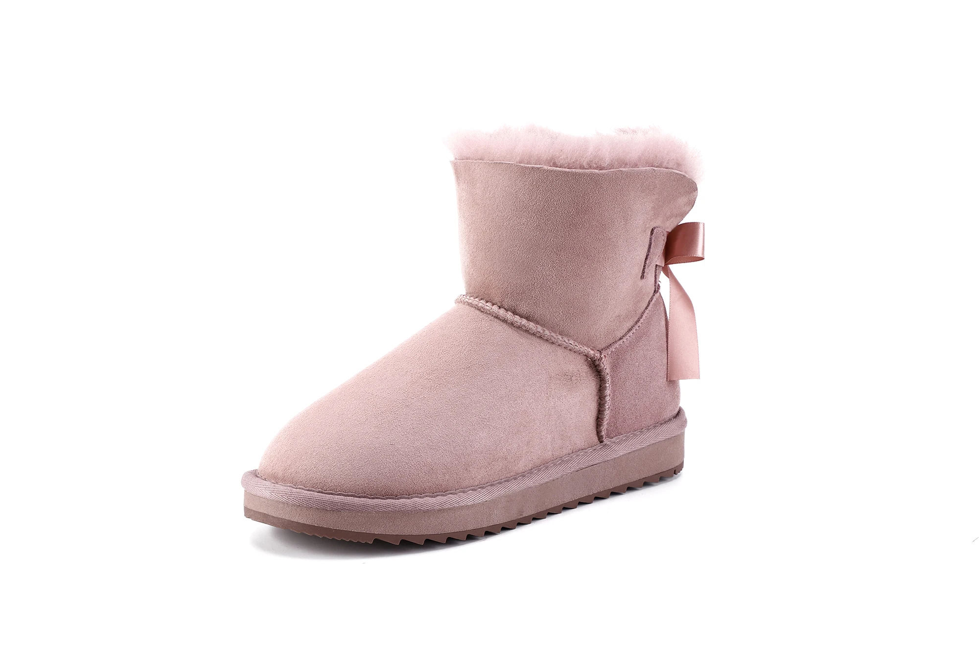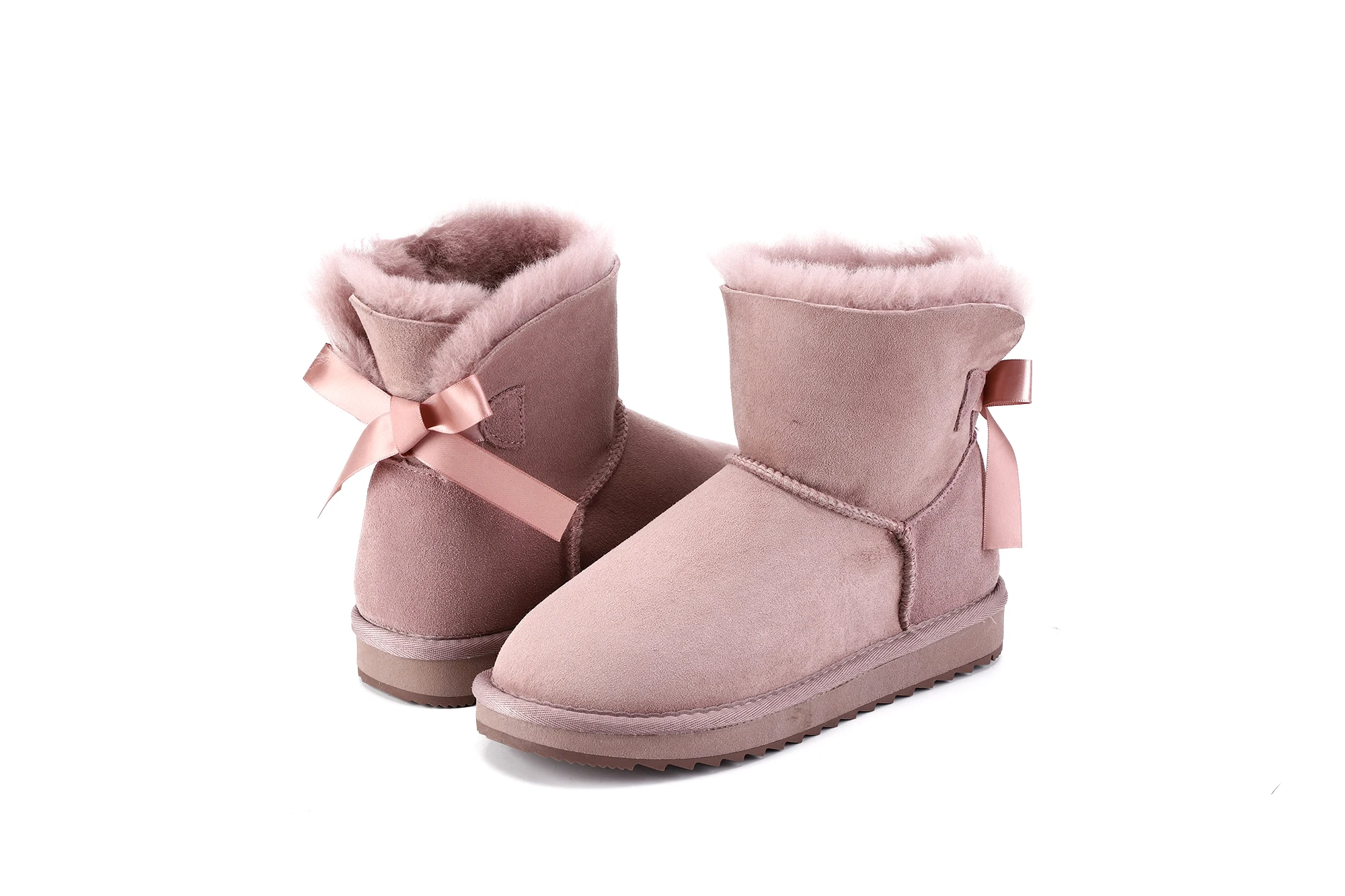 TPCR Sheepskin Leather Wool Fur Lined Women Short Ankle Winter Suede Snow Boots with Bowknots Mink Fur Tassels dusk Warm Shoes