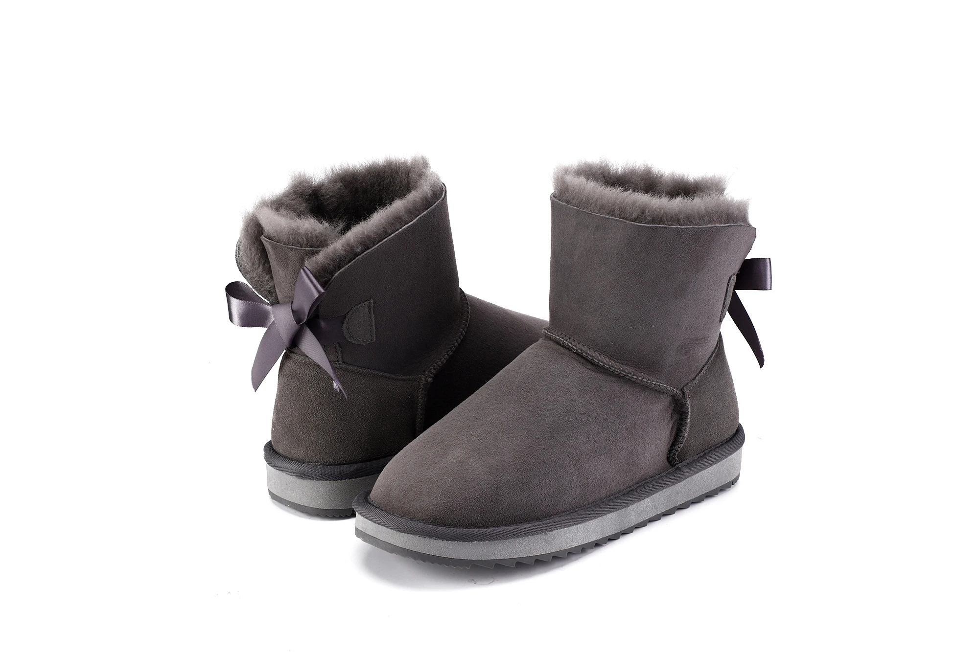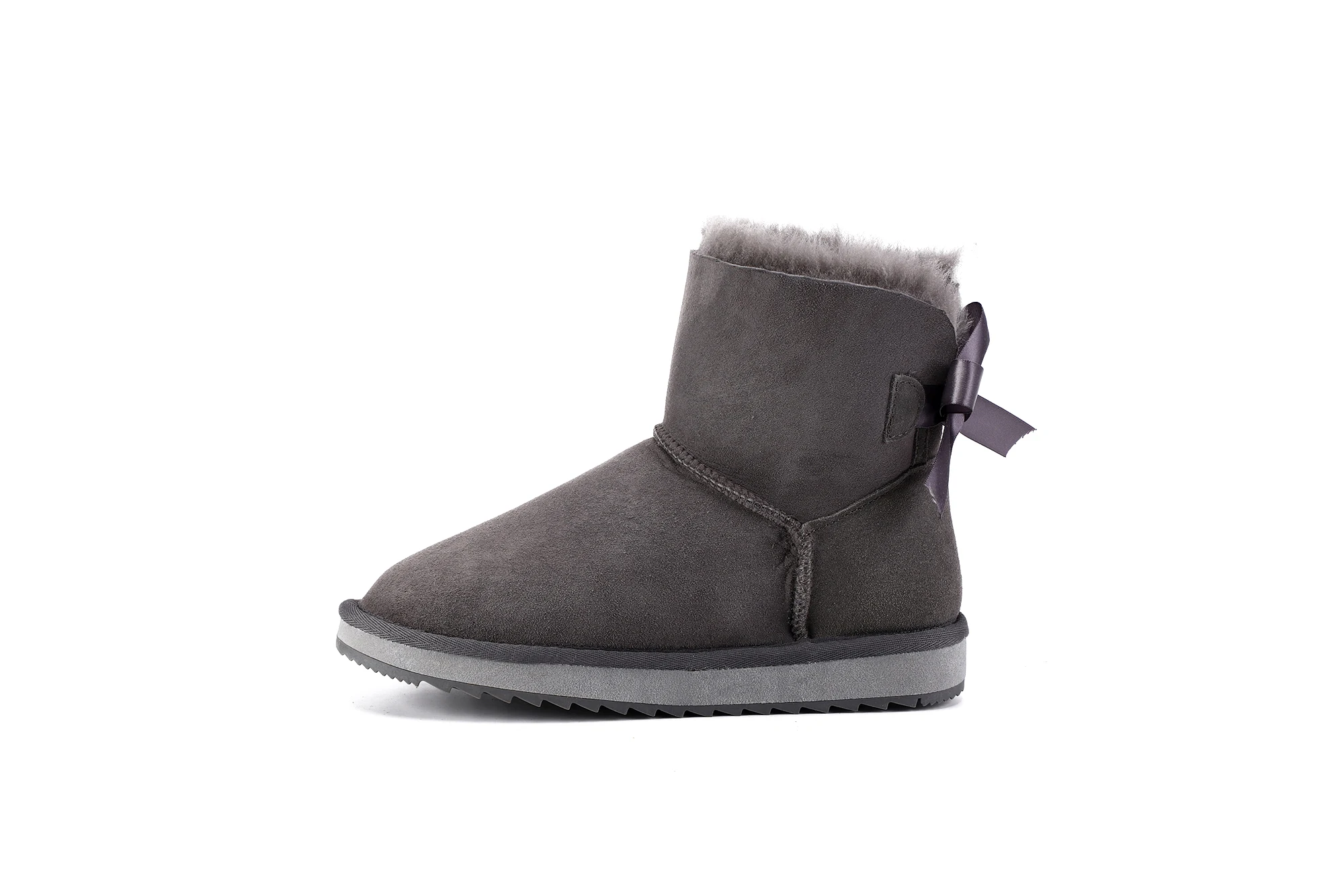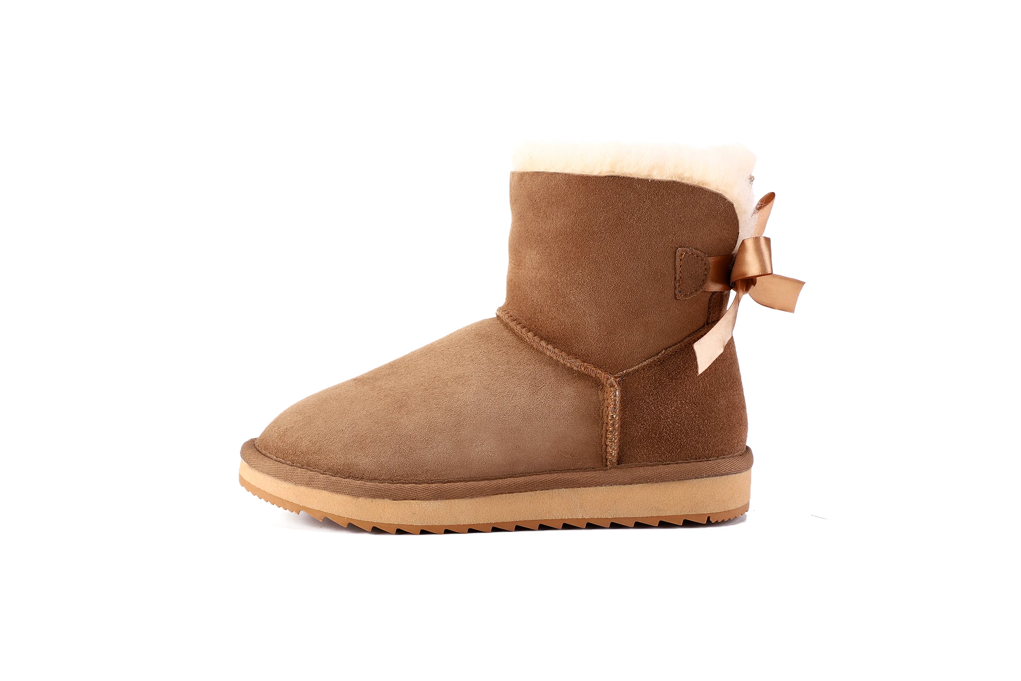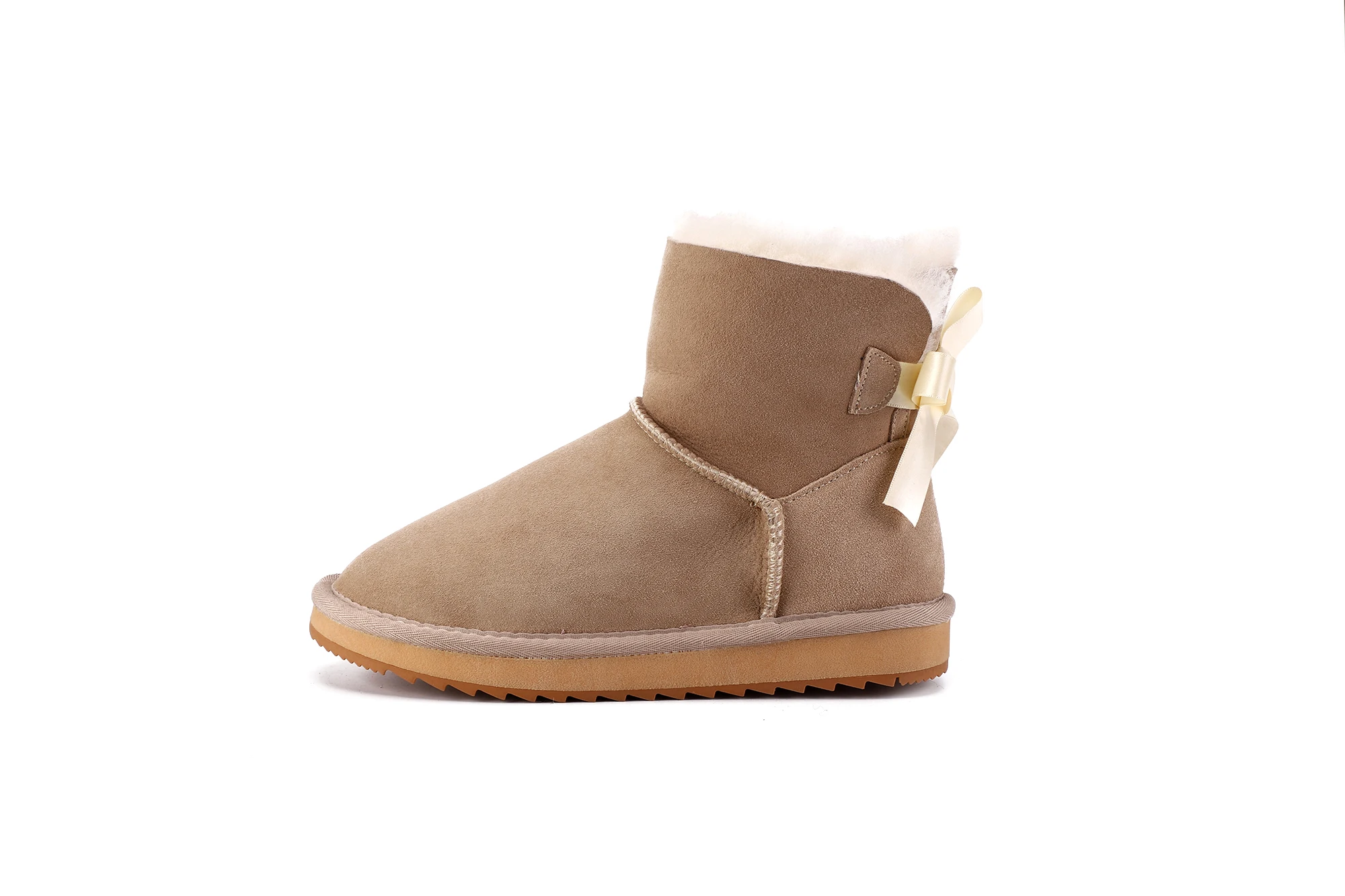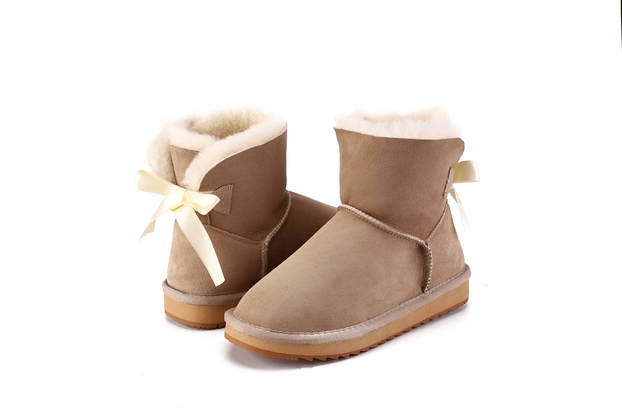 TPCR Sheepskin Leather Wool Fur Lined Women Short Ankle Winter Suede Snow Boots with Bowknots Mink Fur Tassels dusk Warm Shoes