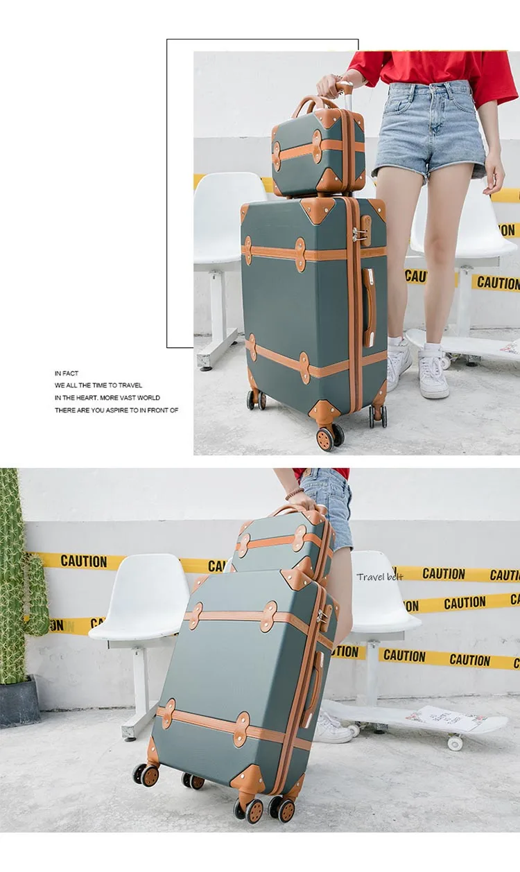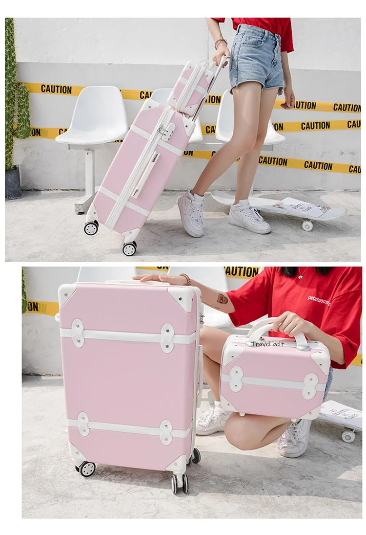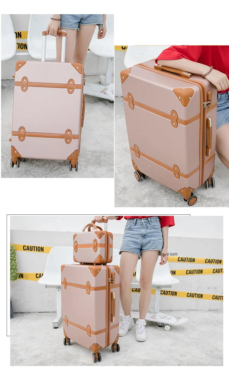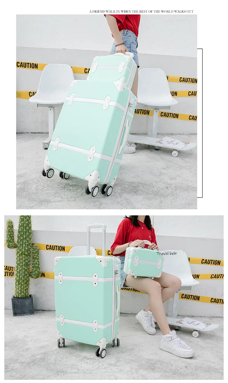 Travel Belt Korean Retro Women Rolling Luggage Sets Spinner ABS Students Travel Bags 20 inch Cabin password Suitcase Wheels