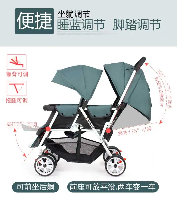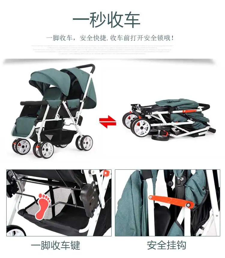 Twin push baby backseat pushcart baby pairs light 6-12 months can sit or lie down