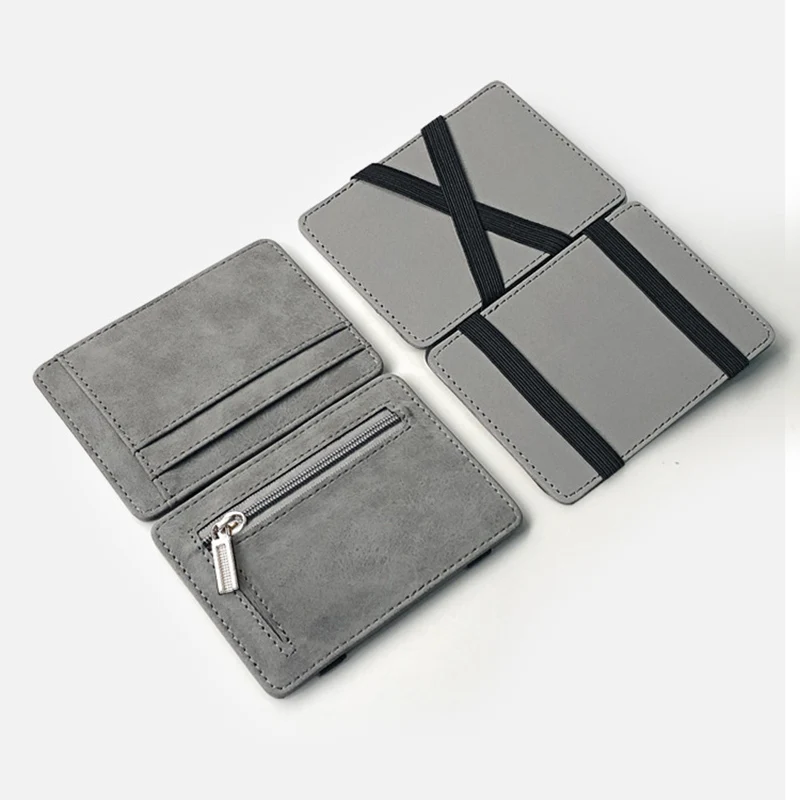 Ultra Thin Men Wallet Small PU Leather Mini Size Magic Band Solid Color Card Holder Zipper Coin Purse Credit Bank Card Case