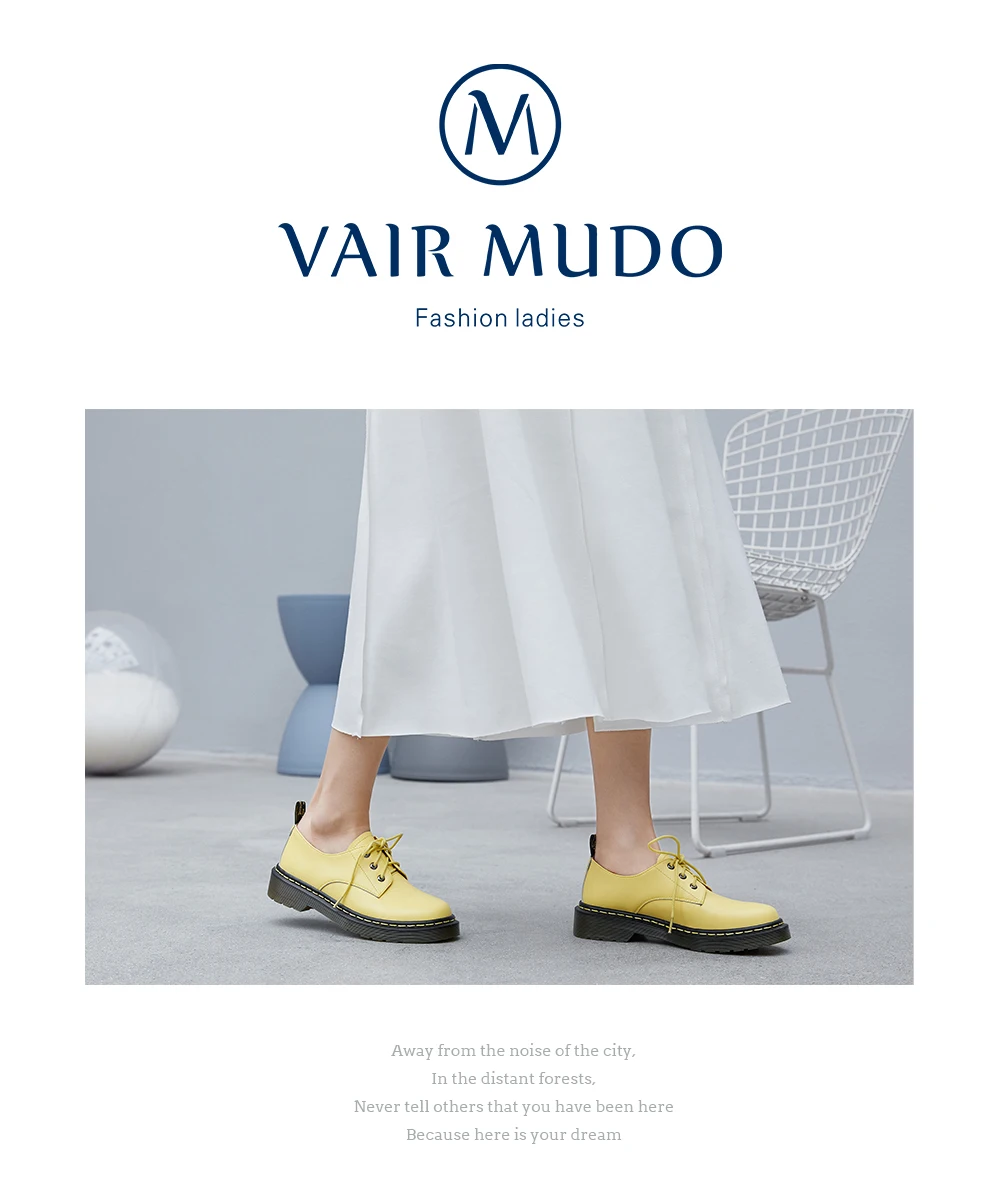 VAIR MUDO High-quality Genuine Leather Sweet Career Woman Shoes Low Heel Elegant Lace-up Four Seasons Office Shoes Women D14L