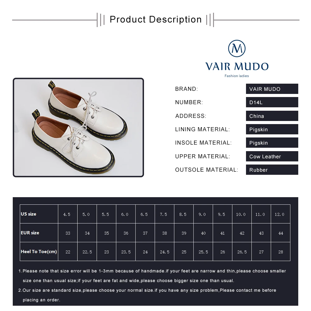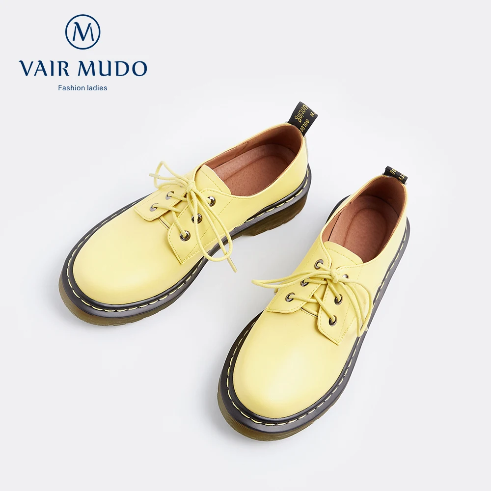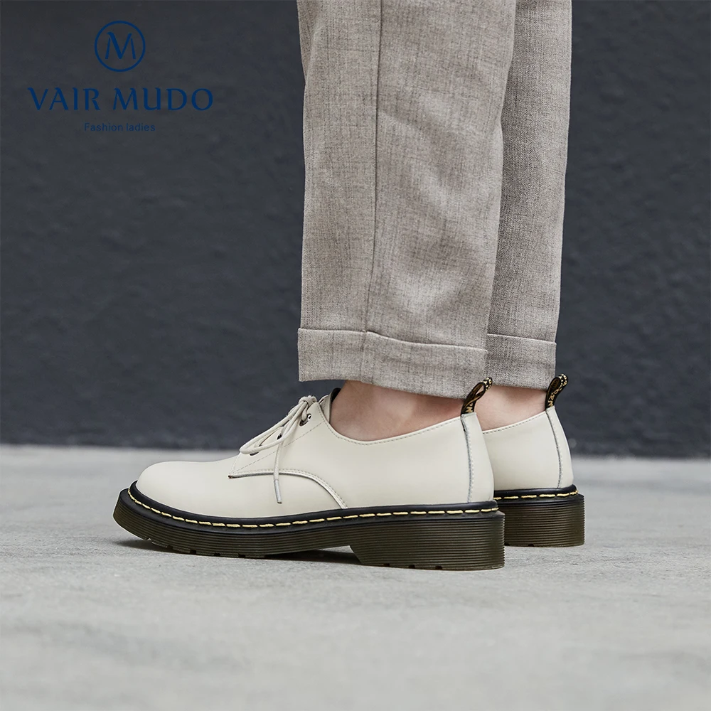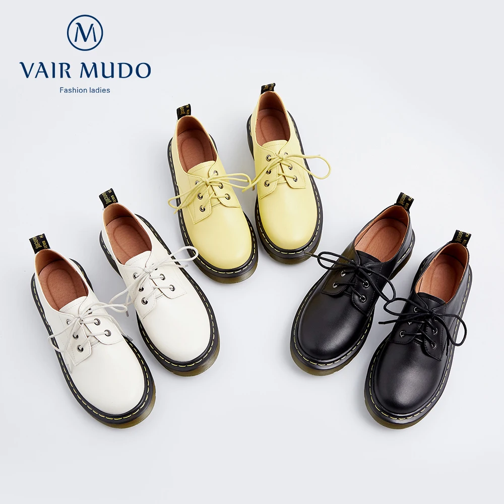 VAIR MUDO High-quality Genuine Leather Sweet Career Woman Shoes Low Heel Elegant Lace-up Four Seasons Office Shoes Women D14L