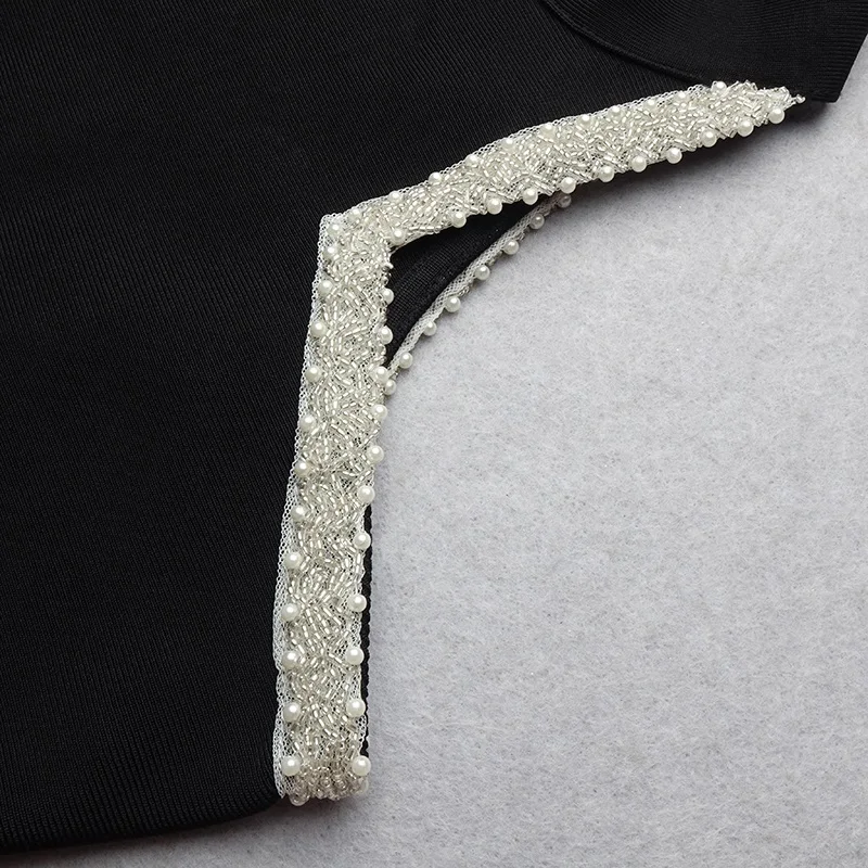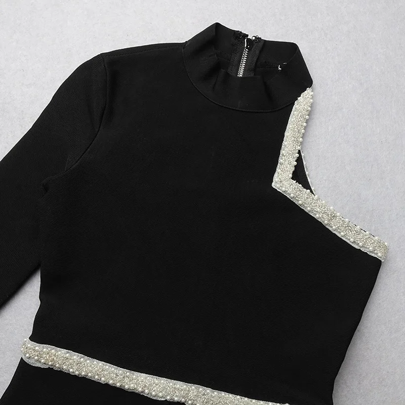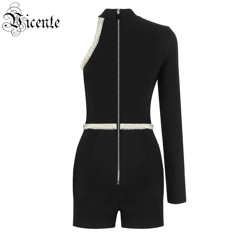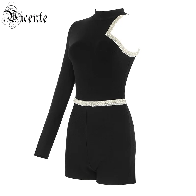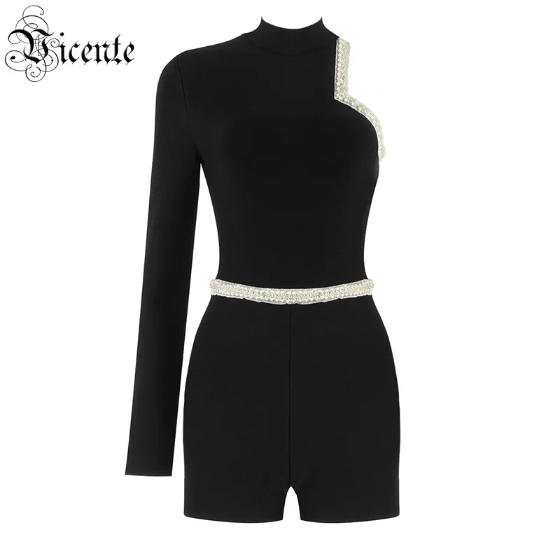 One Shoulder Long Sleeves Beads Embellished Celebrity Party Bandage Playsuit