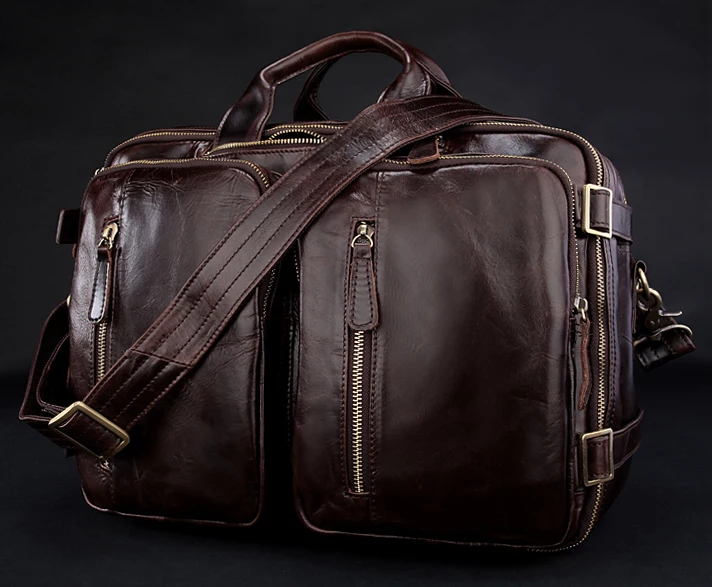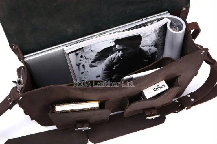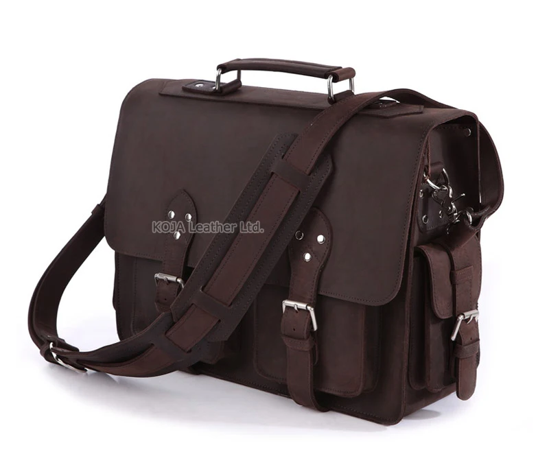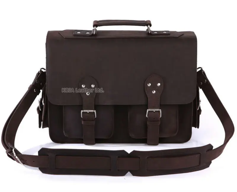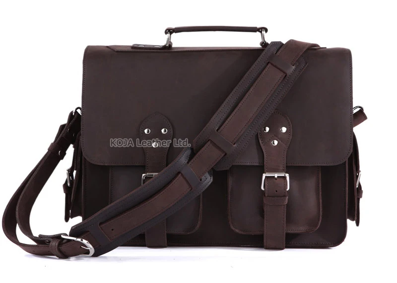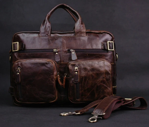 ****Vintage Crazy horse leather men travel bag Messenger Bag Big 15″Laptop Briefcase (can fit 12~16″inch laptop)