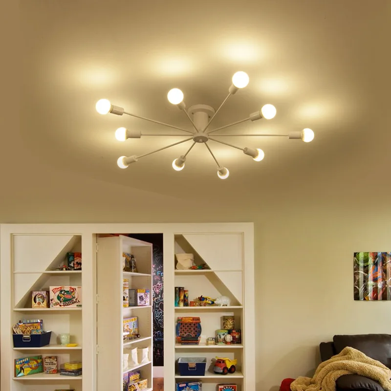 Body Material: Iron Power Source: AC Voltage: 90-260V Base Type: E27 DIMMABLE: fully dimmable when used with a dimmable bulb and compatible dimmer switch Is Bulbs Included: No Installation : Semi Flush Mount size: 6 sockets (diameter 78cm/31inch, height 15cm/6inch); 8 sockets (diameter 95cm/37inch, height 15cm/6inch); 10 sockets (diameter 120cm47inch, height 15cm/6inch);