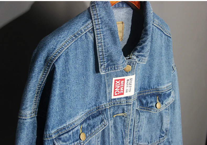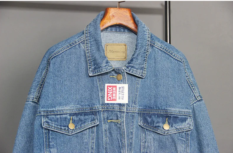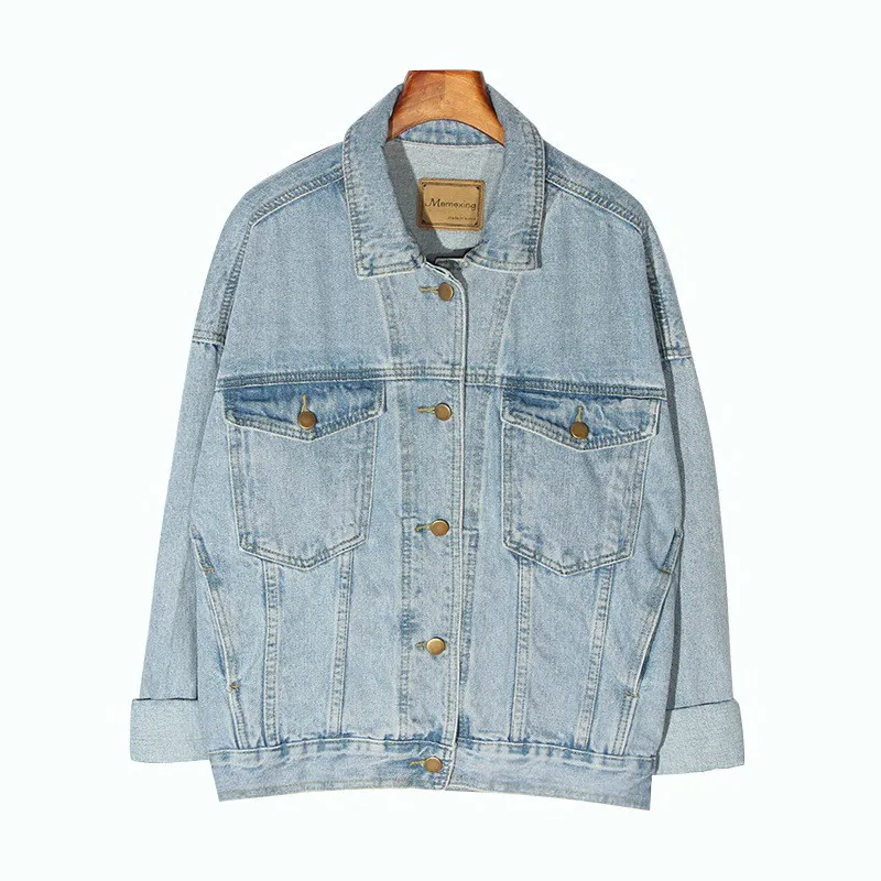 Vintage Women Jacket 2020 Autumn Winter Oversize Denim Jackets Washed Blue Jeans Coat Turn-down Collar Outwear Bomber Jacket