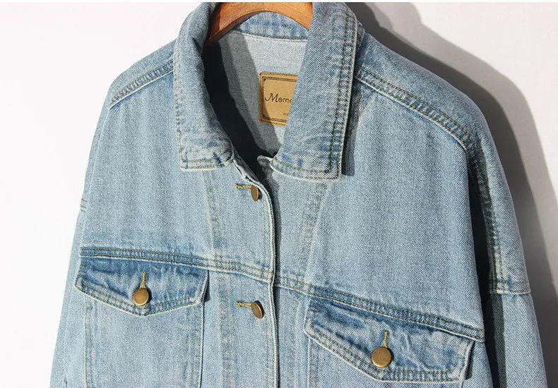 Vintage Women Jacket 2020 Autumn Winter Oversize Denim Jackets Washed Blue Jeans Coat Turn-down Collar Outwear Bomber Jacket
