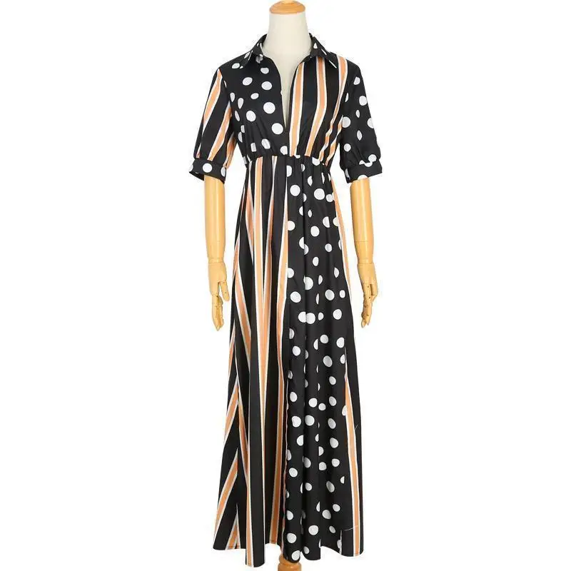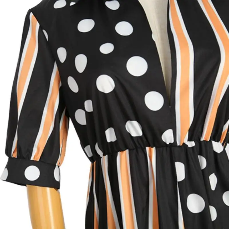 VITIANA Summer Half Sleeve Dot Striped High Street Loose Party Dresses