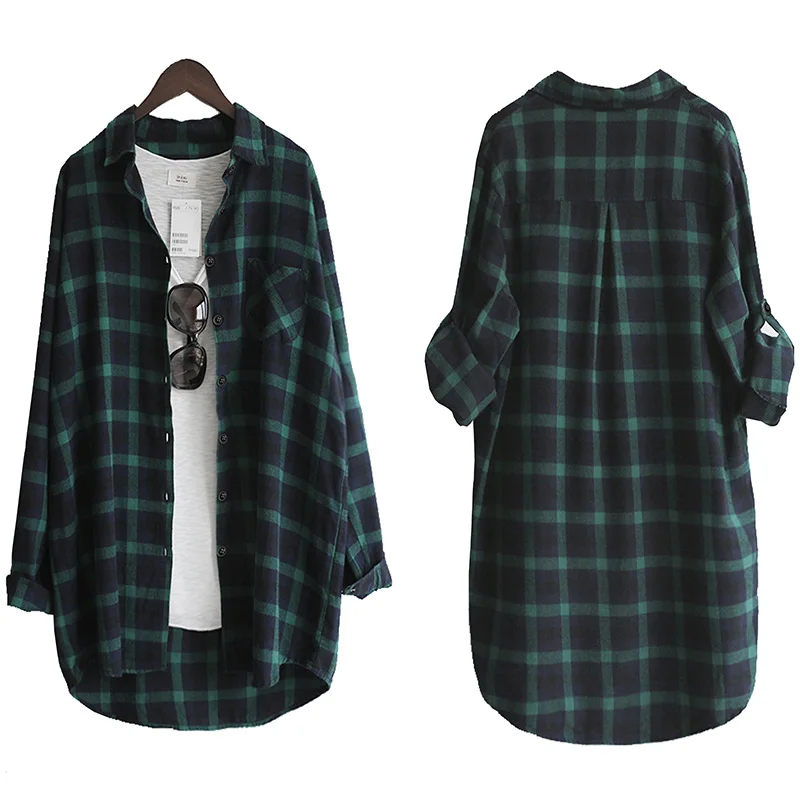 VogorSean Cotton Women Blouse Shirt Plaid 2020 Loose Casual Plaid Long sleeve Large size Tops Womens Blouses red/green