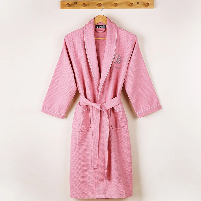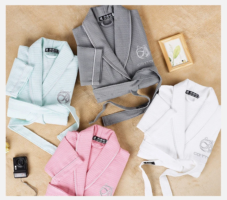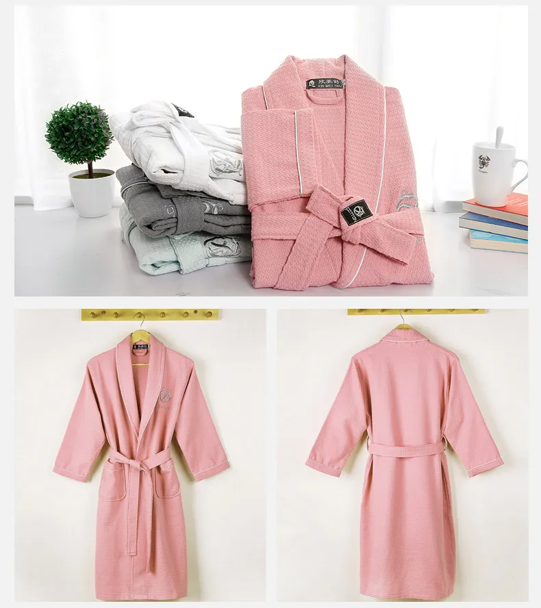 Waffle Cotton Bathrobe Men Summmer Long-sleeve Mens Robe Sweat Evaporate Couples Kimono Bath Robes Hotel SPA Robes Dressing Gown
