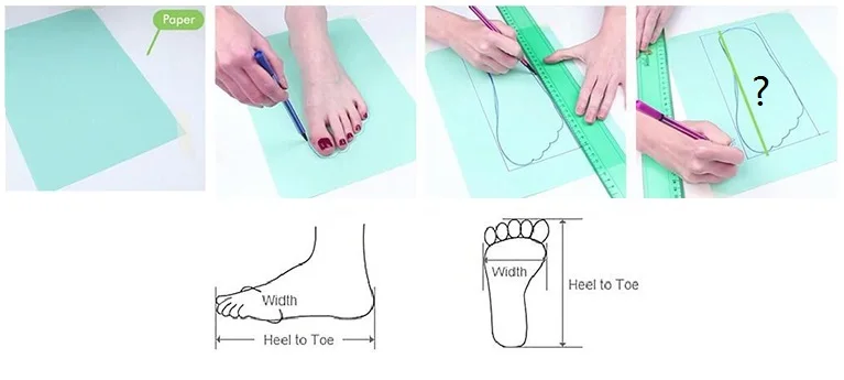 Please measure your feet length carefully ,with the method of the picture below: