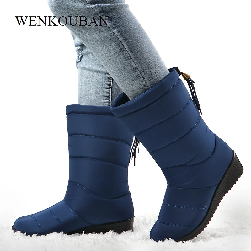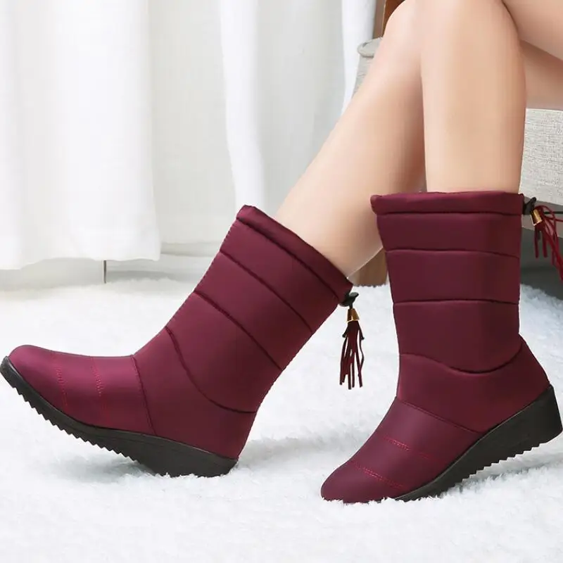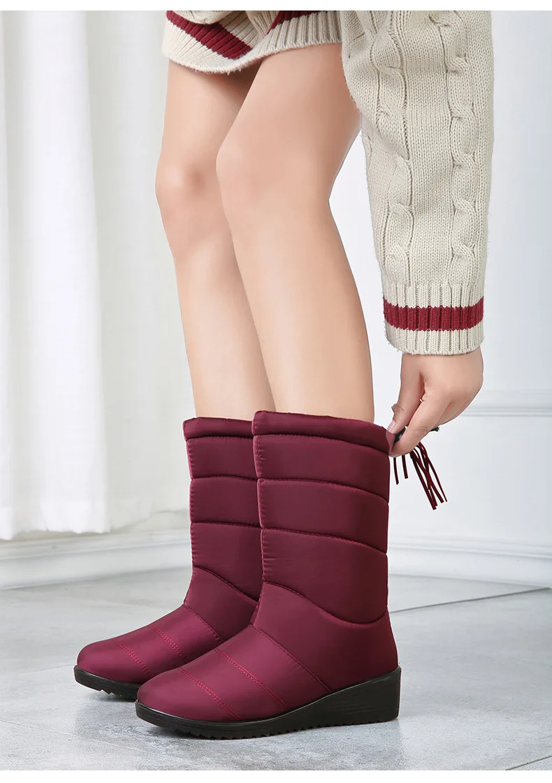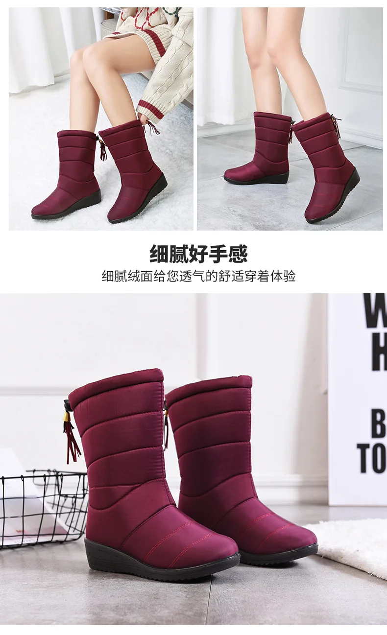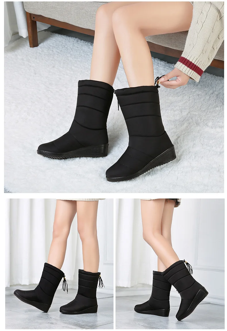 Waterproof Winter Boots Female Shoes Mid-Calf Down Boots Women Warm Ladies Snow Bootie Wedge Rubber Plush Botas Mujer 2019