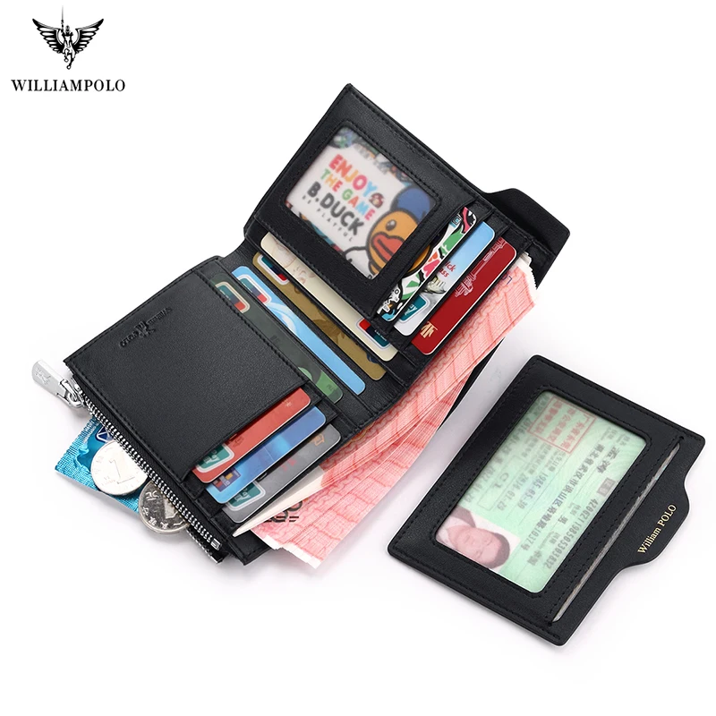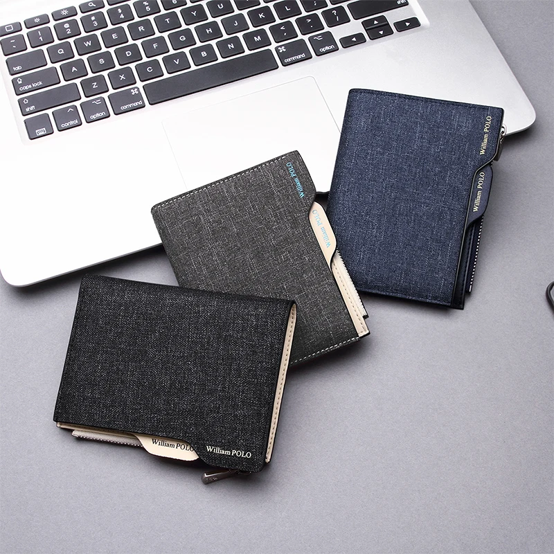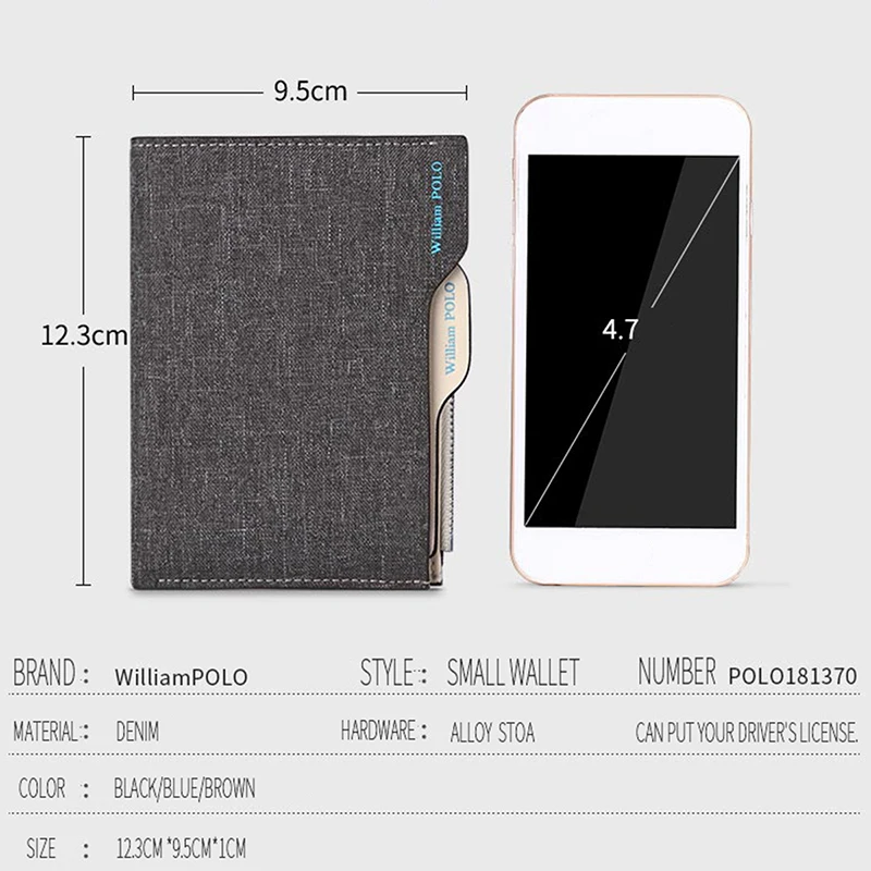 WILLIAMPOLO Small wallet Men Denim purse credit card Holder coin purse Leisure Driver License Zipper wallet