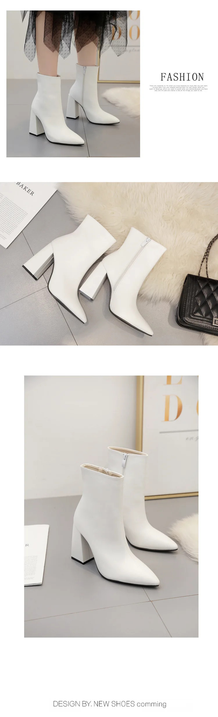 Winter 2020 new solid color fashion wild square root pointed large size women’s boots
