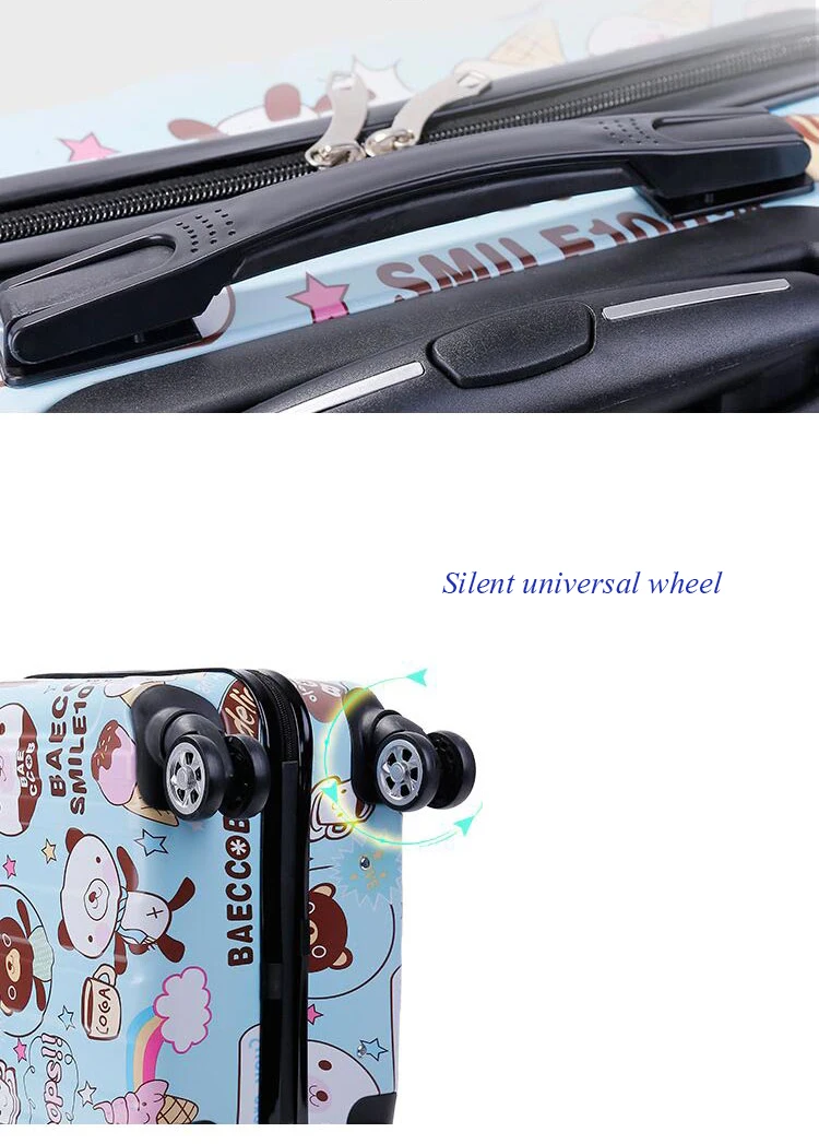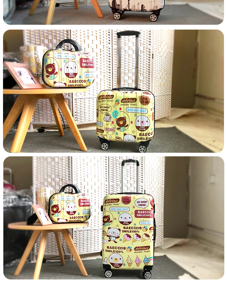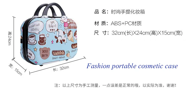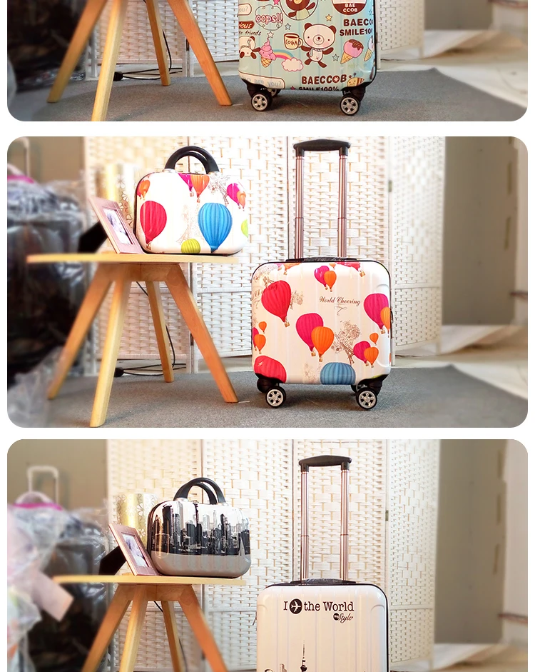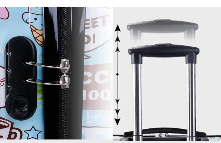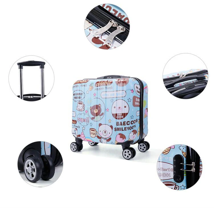 Material : ABS+PC Super mute universal wheel wheel: 360 degrees Rod: aluminium alloy rod Handle: TPR green comfortable handle Built-in: polyester Size:18″